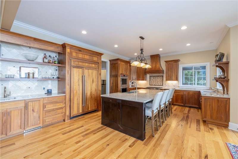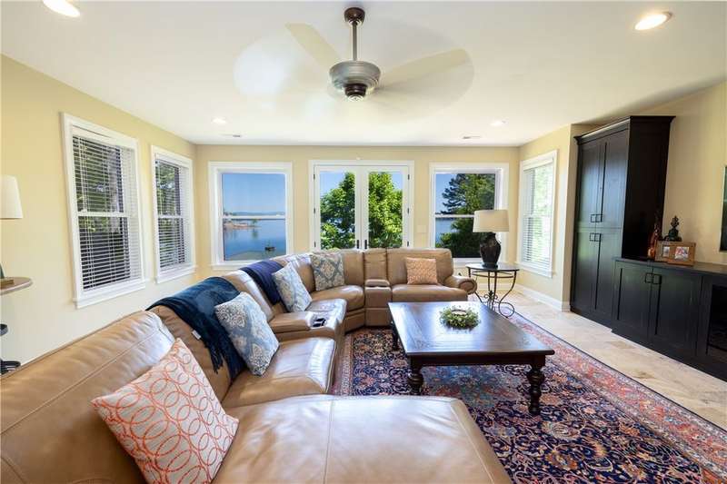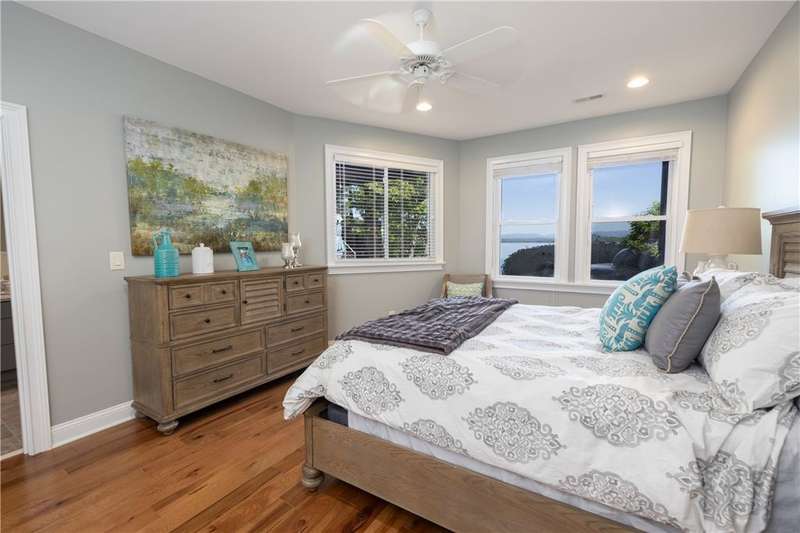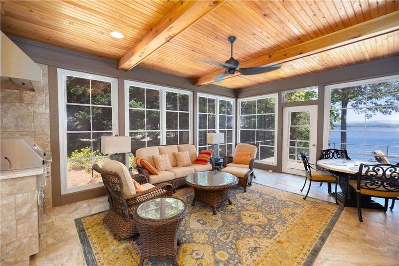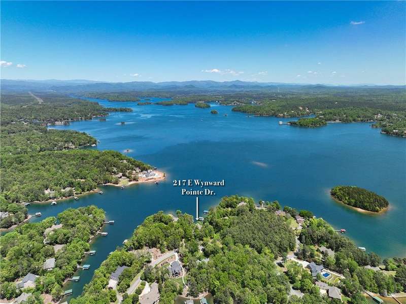 217 E. Wynward Pt.: This beautifully renovated home showcases the view that put Lake Keowee on the map! The 3+ mile water view up the north channel is framed by the iconic layered Blue Ridge Mountains as a backdrop. The current owners completely renovated this home with the help of respected builder Rob Coogan of RJ Coogan Fine Homes in 2017/2018. As you pull into the flat motor court, you're sure to notice the blue water and blue mountains straight through the front door and back windows. The main level is bright and spacious, with great living and entertaining space inside and outside. The kitchen is well appointed with custom walnut cabinetry, a Wolf 6-burner gas cooktop, double wall ovens, microwave, and built in coffee/espresso machine, as well as a SubZero refrigerator, wine fridge and an ice maker. Both the formal and informal dining areas have great views and can accommodate a crowd. The 4-season EZ Breeze screened porch also features a built-in gas grill with exhaust, so you can do your grilling in the shade and enjoy the view or while watching the mounted TV. The primary suite is located on the main level with sweeping views, a private balcony, a beautifully renovated bathroom with a spa tub, walk-in shower, bidet, and large walk-in closet. There's a private office as well on the main level, so you can work from home and spend more time at Lake Keowee! Guests have great bedroom options, including a large guest suite above the 3+ garage and 3 lower level, lakeside bedrooms. Speaking of the lower level, the luxury continues with a large recreation/family room overlooking the lake, a beautiful wine cellar, and an exercise/fitness room. The mechanical/storage space is large and provides easy access to HVAC, central vac, water heaters, and a secondary washer and dryer. The slope to the lake is gentle and leads to a newly installed Kroeger Marine Signature Dock with hip and half roof, Zuri decking, hydraulic Swimeze steps and boat lift, stow-and-go kayak storage, and a matching dock box. The dock sits in deep water and is protected from the main channel boat traffic, which is a rarity for a home with this kind of open water view. This is a home and view that is more impressive in person and sure to please the buyer wanting the best in what Lake Keowee has to offer. In addition, the home is being sold furnished (with the exception of a few personal items and art), so you can start enjoying life at the lake immediately!