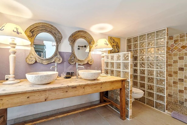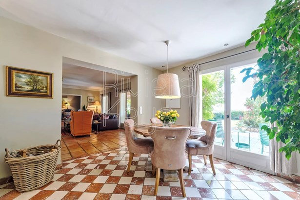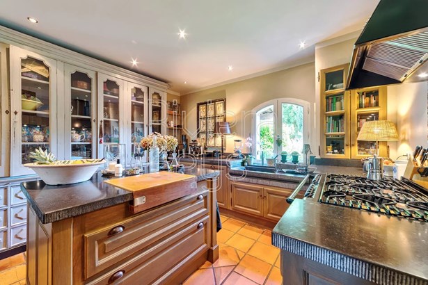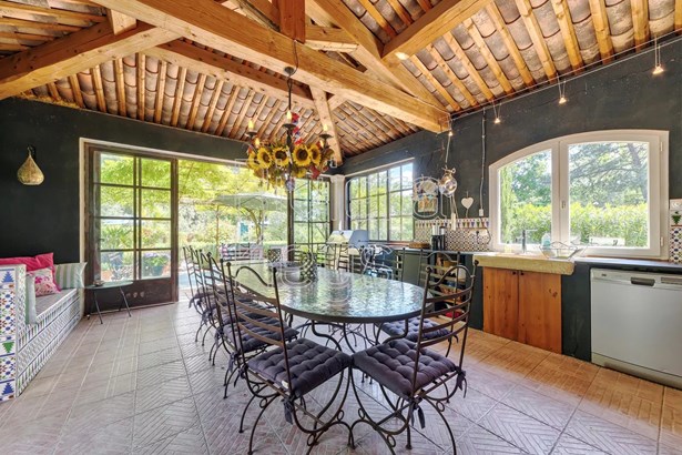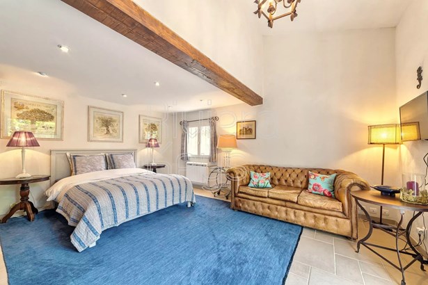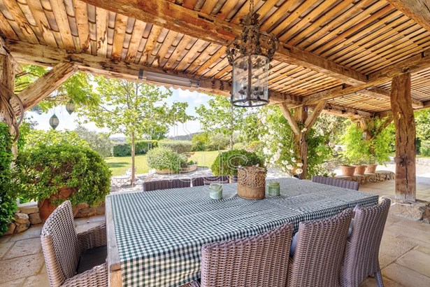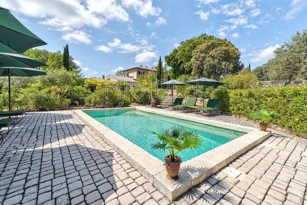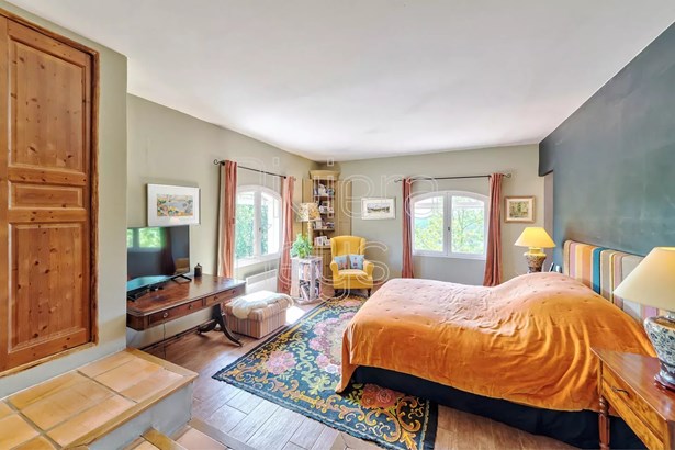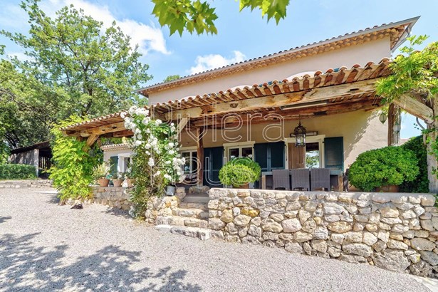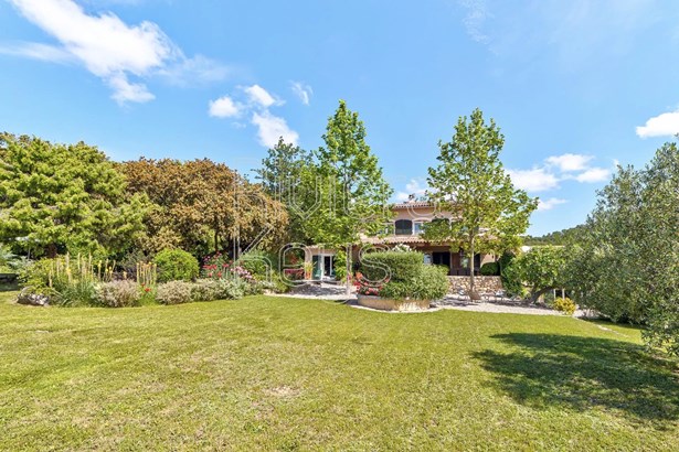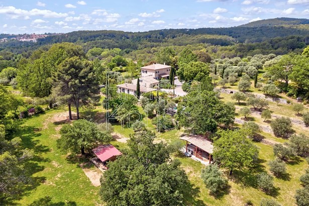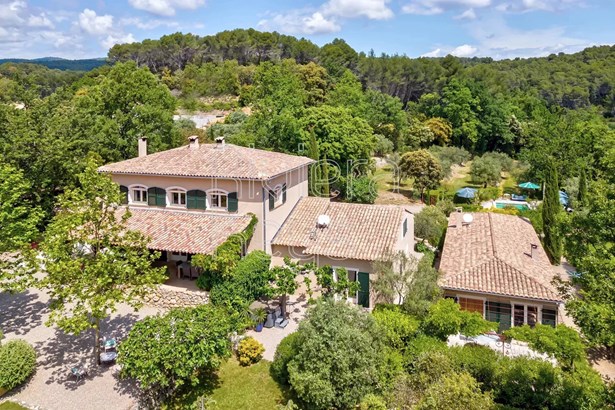 This magnificent 6 bedroom property, located minutes from picturesque Flayosc, offers serene countryside living on 3.21 Acres of land. The elegant house, built in 2000, features high ceilings and interior design of high standards throughout the property. The ground floor includes an inviting entrance, a cozy dining room with adjacent kitchen and 2 spacious living rooms with fireplaces. Upstairs there is a master suite with a dressing room and luxurious bathroom, plus 2 additional bedrooms with a shared shower room.An independent apartment with 2 bedrooms and a bathroom opens up to a patio with Jacuzzi. Connected to the summer kitchen is a guest house with one bedroom that opens up to the garden. The garage/ box offers potential for an additional bedroom.In the garden you enjoy a large terrace with panoramic views of Flayosc, a beautifully landscaped pool area with a pool house and a fully equipped summer kitchen, a fireplace and a large dining table. Meadows are perfect for horses with stables and paddock already on site. There is also a large kennel for dogs. An olive grove with stone-walled terraces completes this enchanting setting, offering endless potential for a small vineyard or other pursuits. The charming village of Flayosc offers everything you need for daily life all year around, and the area has attracted international inhabitants for many years.