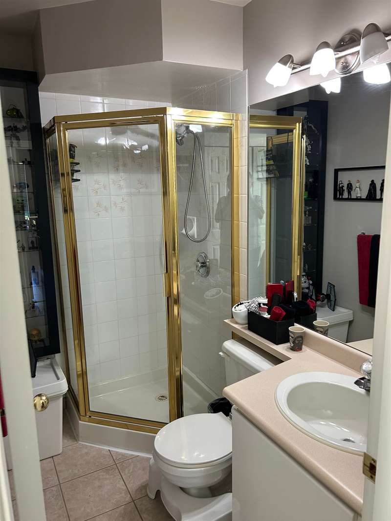 A gorgeous 2 bed 2 bath condo in Crestview Court. Excellent floor plan with with a large master bedroom. Top floor facing West over the private courtyard. Numerous features including: crown moldings; 2 skylights that open, making it nice and bright and creates a nice air flow in the summer; lots of storage; gas and hot water included in your strata fee; HY TEC WATER TREATMENT SYSTEM for the whole building! 1 parking and 1 storage unit included; Excellent location: across the street from Forsythe Elementary and park; walking distance to Gateway Skytrain Station and Central City Mall
