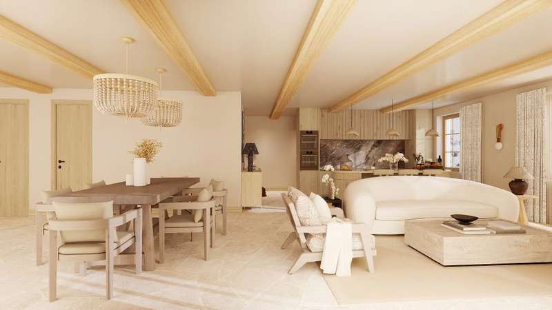 Nestled in a privileged alpine setting, close to the Rouge and resort center, this exclusive property captivates with its breathtaking panorama and peaceful, private atmosphere. Comprising a three-bedroom, two-bathroom main apartment, complemented by an independent studio, it offers a total surface area of around 136 m². This configuration, ideal for families and guests, is also suitable for foreign buyers, as the two lots can be combined. The living spaces, bathed in natural light, open onto a vast balcony running along the length of the living room, offering breathtaking views of the surrounding mountains. The renovation project, imagined by interior designer Birta Ólafsdóttir (IDC), combines contemporary refinement with a warm mountain spirit. Additional features include - Two parking spaces (one inside and one outside) - Private entrance - Ski locker This rare Verbier property represents a unique opportunity for a discerning clientele looking for an elegant, discreet place to live, imbued with Alpine authenticity.