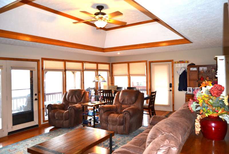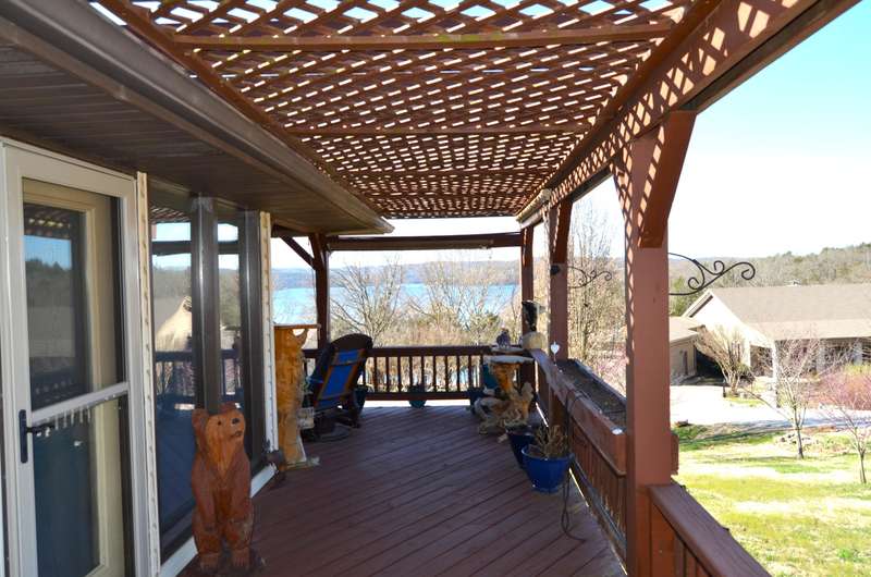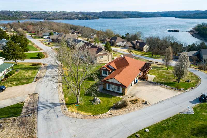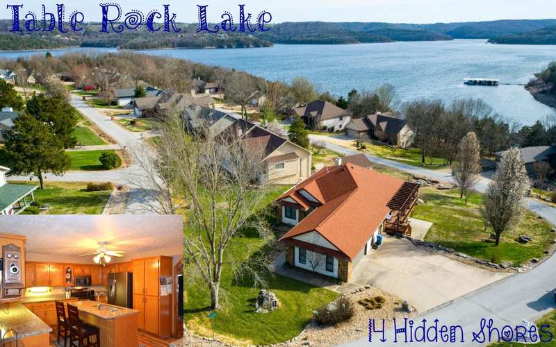 Located in the picturesque neighborhood of Hidden Shores on a private peninsula surrounded by Table Rock Lake, this exquisite home offers breathtaking year-round Water views. The expansive wrap-around deck is perfect for soaking in the scenery. Inside, you'll find a huge kitchen with custom oak cabinets, pull-out drawers, granite countertops, double sinks and stainless steel appliances. Large windows throughout the home maximize natural light and frame the picturesque water views.The cozy gas log fireplace adds warmth to the living space, while the recently updated master bath offers a spa-like retreat. The fourth bedroom has been converted into a spacious walk-in closet, providing ample storage. An oversized two-car garage & a heated & cooled bonus room on the lower level add even more functionality. Plus, the full concrete crawl space offers excellent storage or workshop potential. AC recently serviced & new water heater installed. 3 Year Home Warranty INCLUDED! Don't miss this rare opportunity to own a home in Hidden Shoreswhere luxury meets lake living!