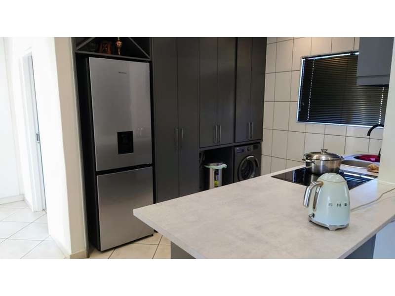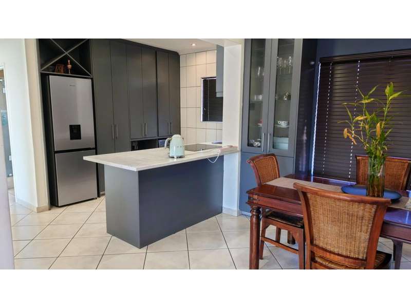 Discover a bright and inviting 2-bedroom first-floor unit in one of the most sought-after complexes around. Impeccably maintained and efficiently managed, with reasonable levies that make this property a true standout. From the moment you enter, you'll be welcomed by a spacious tiled open-plan lounge and dining area flowing seamlessly onto a generously sized covered patio. Positioned perfectly within the complex, this patio offers serene views and the potential to be enclosed for added versatility. The renovated kitchen adds style and practicality with modern grey cabinetry, crisp Caesarstone countertops, a convenient breakfast nook, and an extra cupboard ideal for a wine cellar or coffee station. Space for 2 appliances and a fridge. Both bedrooms are extra spacious, sun-filled, tiled and fitted with brand-new built-in cupboards. The home features two well sized and modern bathrooms: one with a bathtub for relaxing evenings, and the other with a shower for everyday ease. Additional features include: Fitted blinds. One covered carport. A stunning blue swimming pool. Clubhouse with braai facilities. Upgraded tennis court and basketball pitch. Pet-friendly environment. 24-hour security for peace of mind.