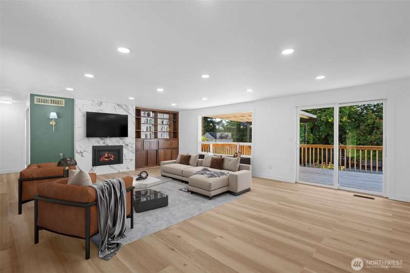 Fully renovated, this 7-bed, 2-bath, 2,050 sqft. home is move-in ready & packed with upgrades! Enjoy peace of mind with all-new quartz counters, vanities, showers, fixtures, LVP flooring, & SS appliances! Ideal for multi-generational living, this 1-story home features a cozy living room w/ a gas fireplace and picture window & kitchen w/ abundant cabinetry and a center island. The dining room opens to an expansive deck, spacious patio with fire pit, & a huge fully fenced backyard—perfect for outdoor entertaining. Additional highlights include A/C, tankless water heater, a large storage shed, & ample parking. ADA compliant features, Potential use for Adult family home. Located in the premier Lake Meridian community of Kent!