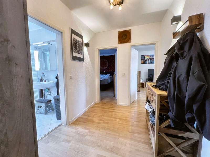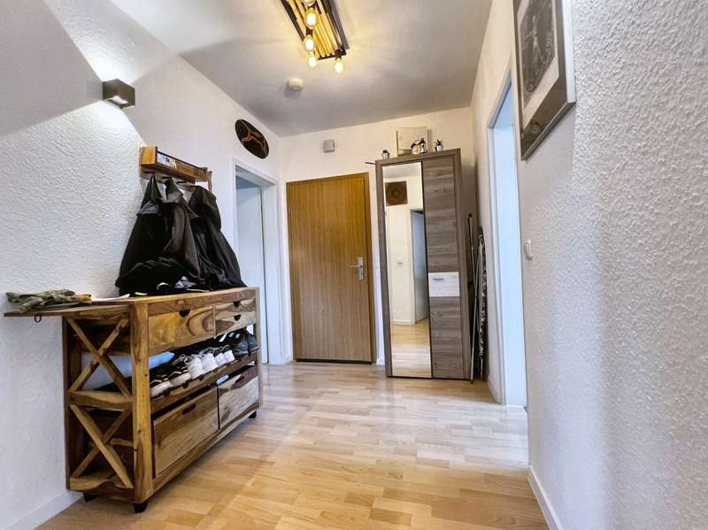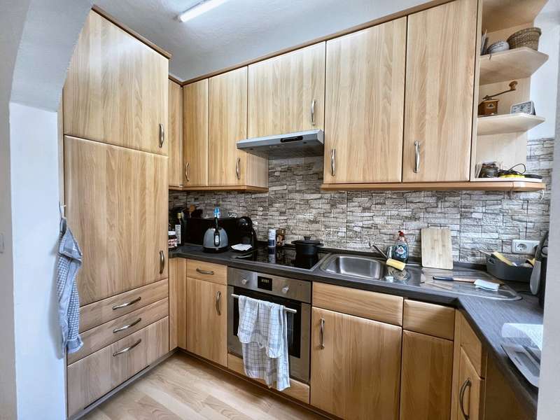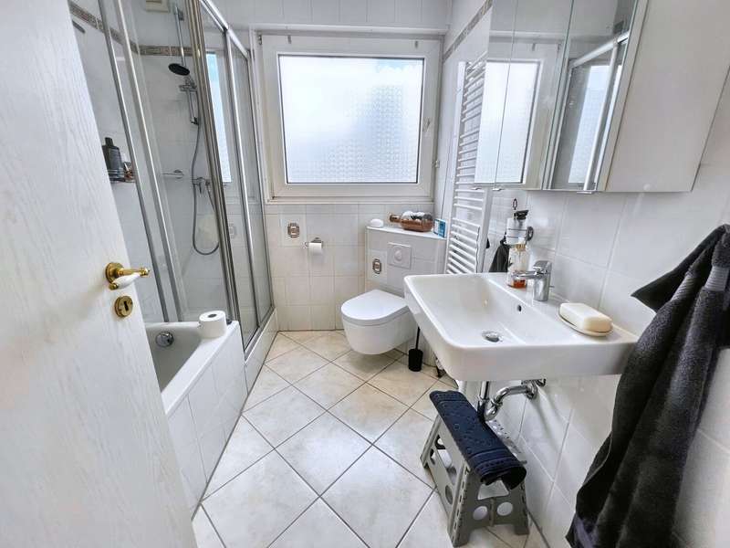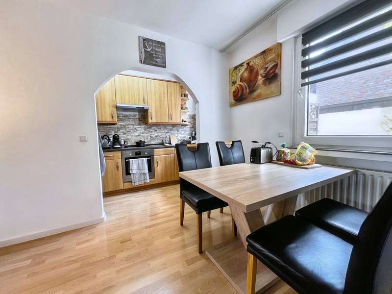 In Menden-Platte Heide we are selling a charming 2-room apartment on the first floor (left) of a well-kept 5-family house. The apartment is located on the first floor - however, completely barrier-free access is not possible (few stairs available). The apartment impresses with its clever room layout. Even the entrance area is generously proportioned, providing enough space for shoe cupboards and/or a wardrobe. The chic bathroom with a large daylight window is tiled in timeless white and is equipped with both a shower and a bathtub. The adjoining bedroom has enough space for a spacious closet. Manual shutters ensure darkening for a restful night's sleep. The cozy living room can be individually arranged. A door leads from here to the terrace - ideal for creating a cozy retreat! The dining room and kitchen share an open-plan design - the kitchen unit shown in the pictures is tenant-owned and therefore not included in the purchase price. A laundry room is available to all residents in the basement. A separate cellar room is included in the purchase price. The garage belonging to the apartment is priced at an additional €8,000. The apartment building has only recently been converted into condominiums, therefore no house money / reserve information is yet available. We are specifically looking for investors for this apartment. Rental income of €480.00 per month (cold) guarantees a return from day 1. Please contact us for your personal on-site appointment - we will be happy to help! Your team from VON POLL Immobilien Iserlohn & Lüdenscheid