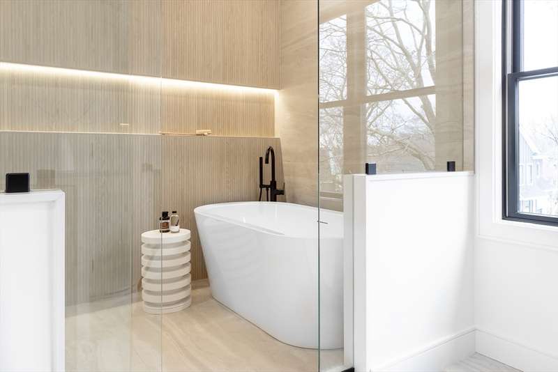 LAST UNIT LEFT! This new construction townhome over 4K square feet of thoughtfully designed space. Living like a single family home with windows on all 4 walls, it features a 1-car private garage and an oversized exclusive backyard. The open concept main level showcases stunning features including a chef's kitchen with high-end appliances, gorgeous cabinetry, a sophisticated Venetian plaster linear fireplace, and a generous mudroom. A flexible en-suite bedroom/office completes the first floor. The second level houses three en-suite bedrooms, including a primary retreat with its large walk-in closet and a gorgeous spa-inspired bathroom with soaking tub. A convenient laundry room with cabinetry, sink, and folding station. The fully finished third floor provides bonus space with endless possibilities, while the lower level offers endless possibilities plus a private bedroom with full bathroom ideal for guests. Located steps from Newtonville Village Center.