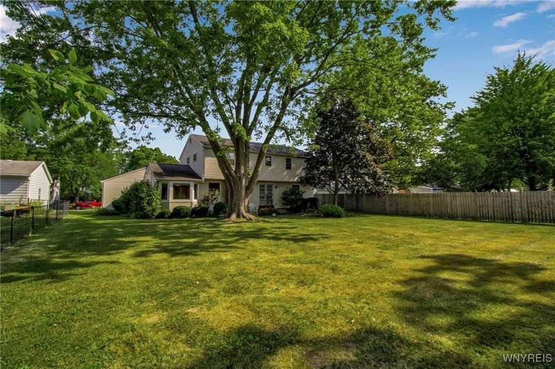 Beautiful Classic Colonial in the Williamsville School District!Filled with sunlight, this spectacular home has sensational space for entertaining and hosting the holidays.First floor showcases a formal living and dining area. An updated kitchen with loads of cabinets and counters, wonderful windows, and all appliances included. The fabulous family room with hardwood floors, a beamed ceiling, beautiful built-ins, brick fireplace is a wonderful room during the warm and winter months. All nice sized bedrooms on the 2nd floor and 2 full baths. The primary bedroom has its own bath.The park-like lot adds endless opportunities for summer celebrations.Large laundry room, lovely moldings, an all neutral decor, and a fabulous floor plan. Some photos have been virtually staged. I'd like to Welcome you to your home!