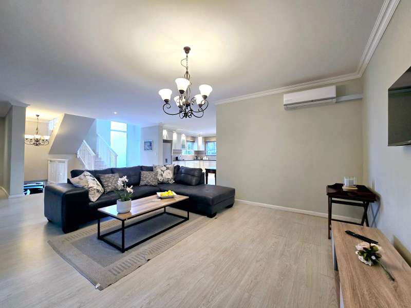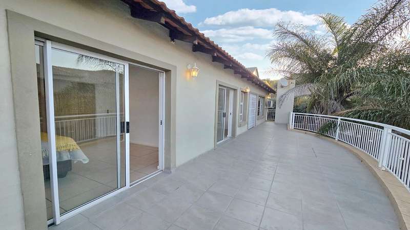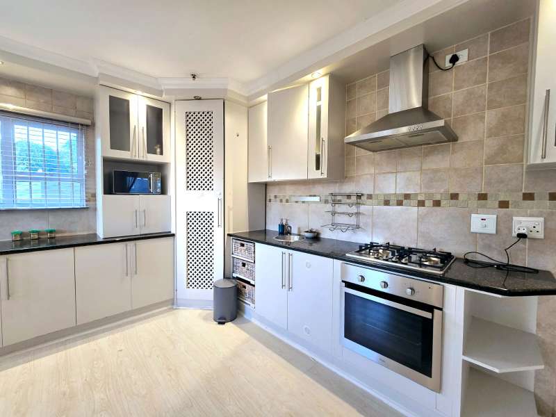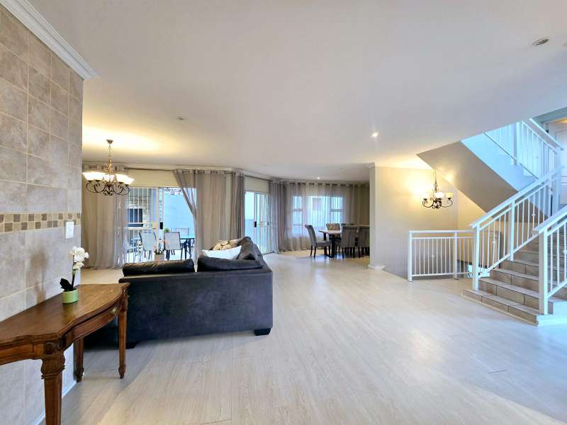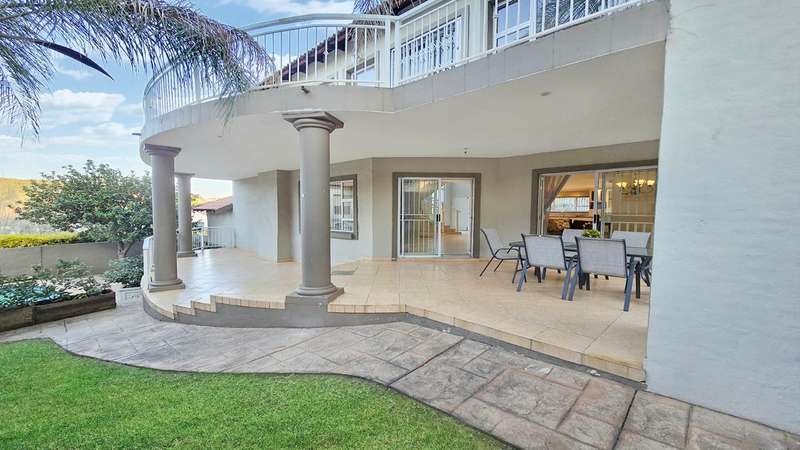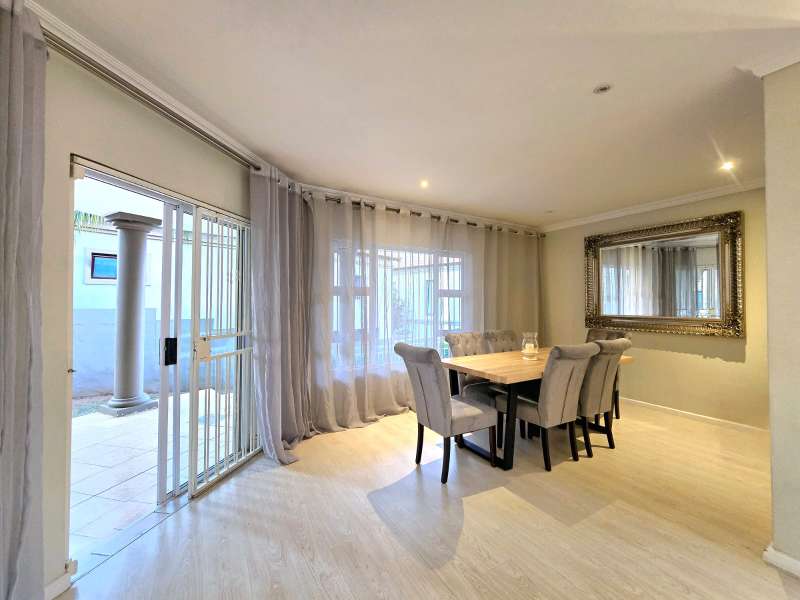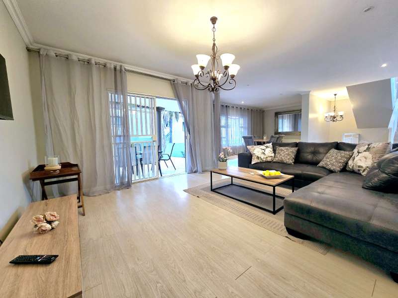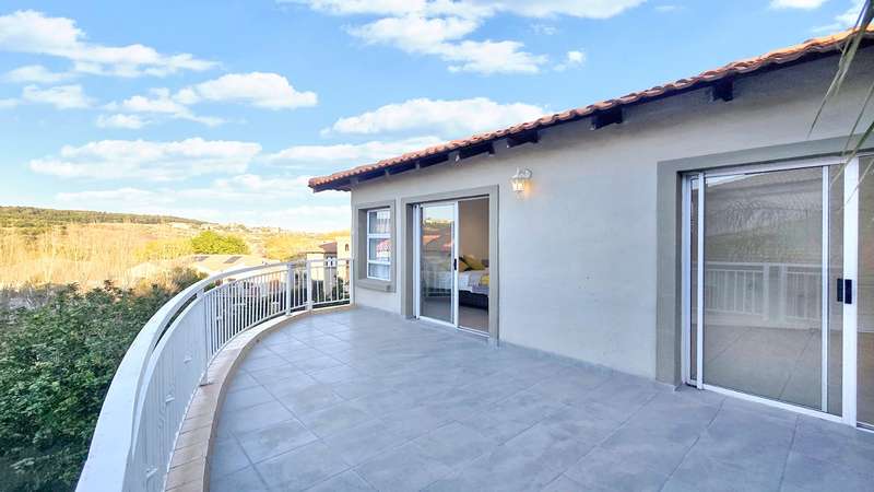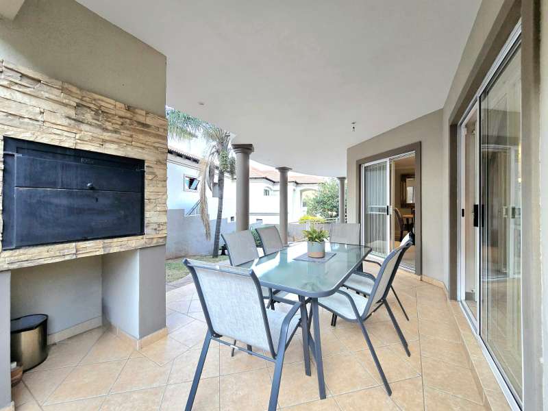 Discover elegant estate living in this spacious 3-bedroom, 2 full bathroom home perfectly situated in the sought-after The Hills Estate in Waterkloof Ridge, right next to Waterkloof Boulevard. This well-designed double-storey home welcomes you with a generous open-plan living and dining area on the first floor that seamlessly flows out to a covered patio with a built-in braai, ideal for effortless entertaining. Overlooking the patio is a manageable, private garden with a sparkling swimming pool, offering the perfect retreat for summer days. The large kitchen is a standout feature, complete with a separate scullery and laundry area, providing ample space for the modern family. Upstairs you’ll find three comfortable bedrooms, each opening onto a balcony with beautiful views, along with two full bathrooms. A versatile additional lounge area on this level is perfect for a study, work-from-home office, or cosy family TV room. The home also offers a double automated garage and staff quarters with a bathroom, all within a secure estate with excellent access control and 24-hour security. This property effortlessly combines luxury, practicality, and an unbeatable location close to major routes, top schools, and quality shopping centres in Waterkloof Ridge.