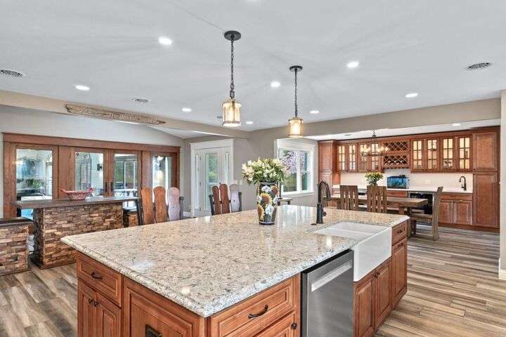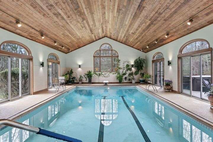 A Sanctuary of Sophisticated Living in Brunswick, Maine Where timeless elegance meets natural splendor. Hidden within 17 acres of rolling meadows and whispering woods, this extraordinary Brunswick estate invites you to experience life at its most refined. A grand 500-foot drive leads to a world of quiet luxury — where every detail is crafted for comfort, beauty, and grace. Inside, more than 5,500 square feet of exquisite living space unfolds across three artfully designed levels. The primary suite crowns the home with panoramic views, and spa-inspired bath. Each space flows effortlessly, from serene bedrooms to luminous gathering areas warmed by a classic brick-and-wood fireplace. Indulge in the ultimate retreat with a natatorium with 35' heated swimming pool, framed by a cedar ceiling and sliding glass walls that open to the rhythm of the seasons. Immerse yourself in the indoor and outdoor hot tubs, or dine al fresco on the expansive deck as the sound of your private stream and waterfall fills the air. The chef's kitchen is a culinary dream — refined granite surfaces, premium KitchenAid appliances, radiant heated tile floors, and illuminated cabinetry designed for entertaining in style. Beyond the residence, a three-level barn awaits — with six stalls, an office, a fitness studio, and an expansive unfinished loft ready to be transformed into a guest residence, gallery, or creative retreat. Over 300 curated plantings bring color and life year-round, while lush lawns and wooded trails invite peaceful exploration. Just minutes from Bowdoin College, Freeport's boutiques, and a short drive to Portland Jetport, this estate offers the perfect harmony of seclusion and sophistication. Showings by appointment only for prequalified buyers. Security system in place, please do not drive up driveway or walk property without an appointment.