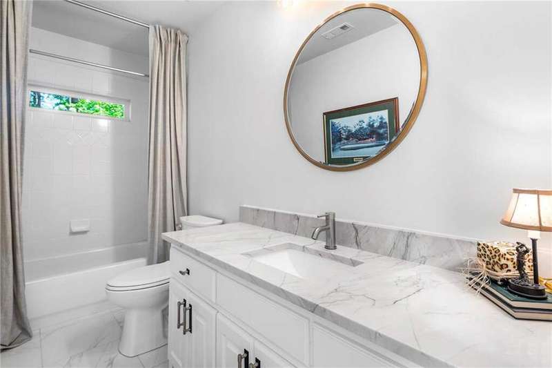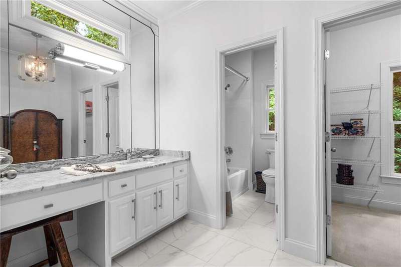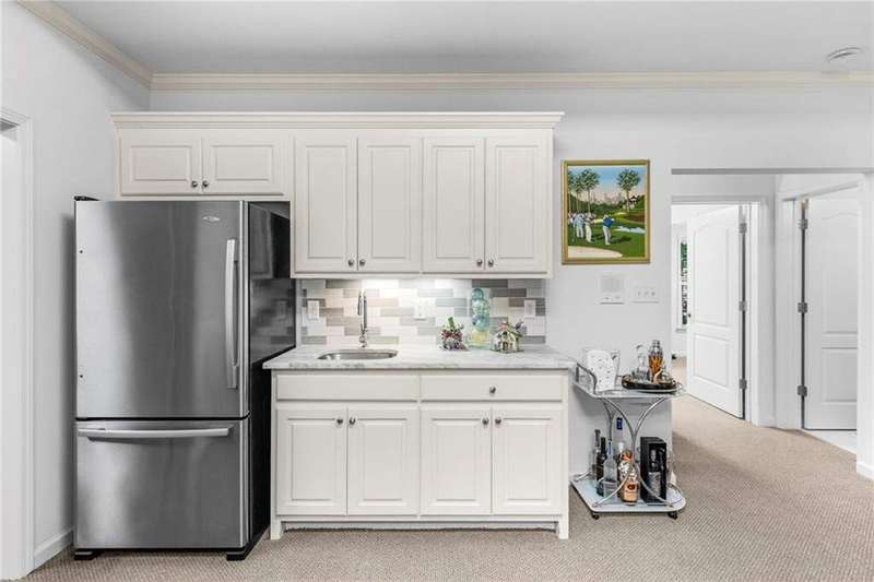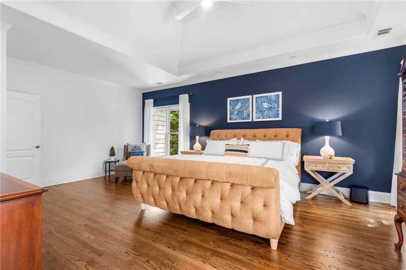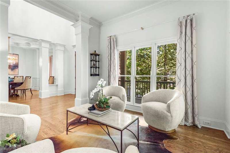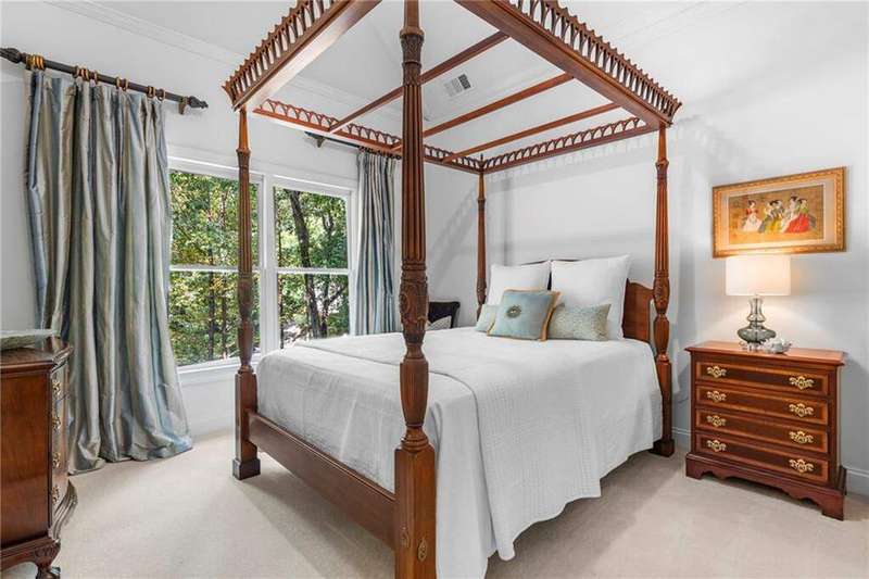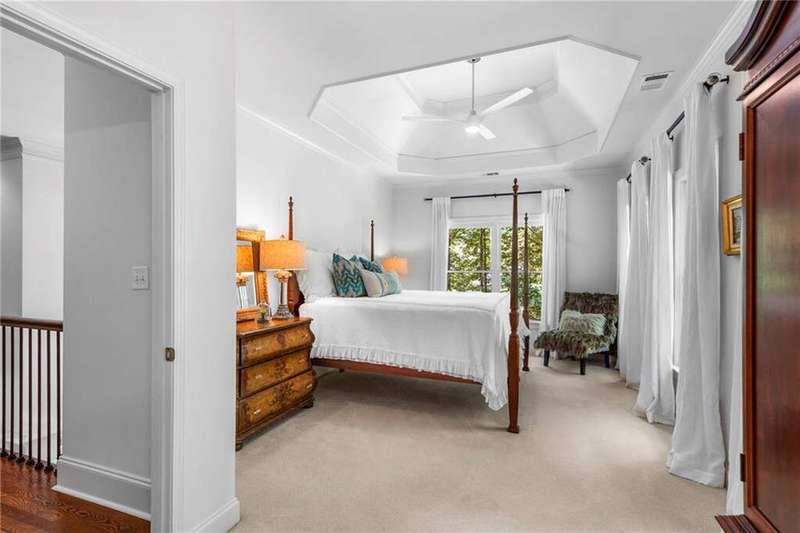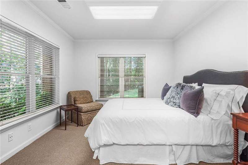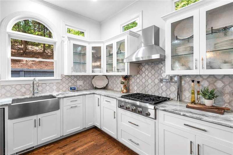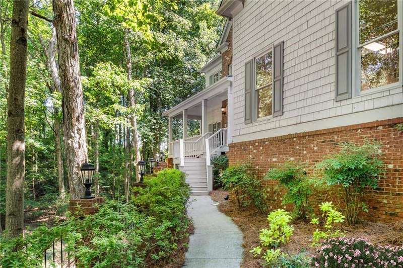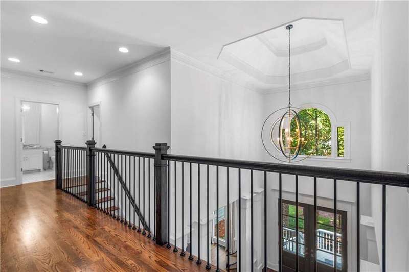 Welcome to Aerie Court, a beautifully remodeled four-sided brick & shingle home with three car garage nestled on a private, one-acre, wooded cul de sac lot in the coveted Ridgemark section of Huntcliff community. Perfectly blending elegance, craftsmanship, and modern amenities, this is luxury living at its finest-just steps from Cherokee Country Club & Golf. Where luxury meets everyday living, step inside to discover a Main Level designed to impress. The grand two-story foyer greets you with 8' double mahogany doors inset with German antique glass, while ornamental molding, decorative columns, 8' interior doors, and glowing hardwood floors throughout underscore the home's architectural elegance. Entertain in style in the formal dining room, complete with tray ceiling and wainscoting, or unwind in the serene living/sitting room that opens through French doors onto a side porch overlooking nature. The family room blends comfort with design coffered ceiling, custom built ins, fireplace, and a designer chandelier all framed by a wall of windows that bring in natural light and showcase the outdoor patio-an entertainers' delight. The kitchen is nothing short of gourmet, designed for both beauty and function: a four-seat island with microwave drawer, dual spice pull-outs, appliance cabinet, premium Thermador & Bosch appliances, smart LG fridge, walk-in pantry, plus a dedicated coffee bar and beverage cooler. It's upgraded in every way. For added versatility a main level bedroom or office with closet and direct access to a full bath; perfect for guests, work from home, or multigenerational ease. The Upper Level is where elegance, comfort, and luxury collide. Four spacious bedrooms are illuminated by soaring 10' tray ceilings, ornamental custom molding, and recessed lighting that enhances architectural detail. Three beautifully appointed bathrooms are designed with both style and serenity in mind. The primary bedroom is a true retreat. It includes a dedicated sitting area, recessed lighting, ceiling fan, and rich hardwood flooring. The adjoining ensuite bath is superbly appointed, with a 10' tray ceiling crowned by a chandelier, honed marble flooring, and a floor to ceiling subway tile shower. The shower is fitted with a wall mounted rainfall head, a hand shower with full and massage spray settings. A striking freestanding soaking tub, complete with a tub filler and spray wand, the vanity area is expansive and functional, a generous double sink with deep drawer storage is complemented by a separate vanity space with wall shelving and linen drawers. The walk-in closet is custom built, double-sided from floor to ceiling, and features cabinet-style drawers, two laundry pull outs, ample shelving and hanging space, and dedicated shoe storage. The Terrace Level presents a distinguished family/entertainment room complete with a kitchenette, affording ideal space for hosting or leisure. A full bathroom accompanies the level. Two additional bedrooms enhance functionality and comfort-one opening via French doors onto the yard, the other offering a private sitting area. Large storage room offers flexibility: convert the space into a theatre, gym, or other bespoke use. Minutes to GA 400, Sandy Springs City Center, Roswell & Avalon.