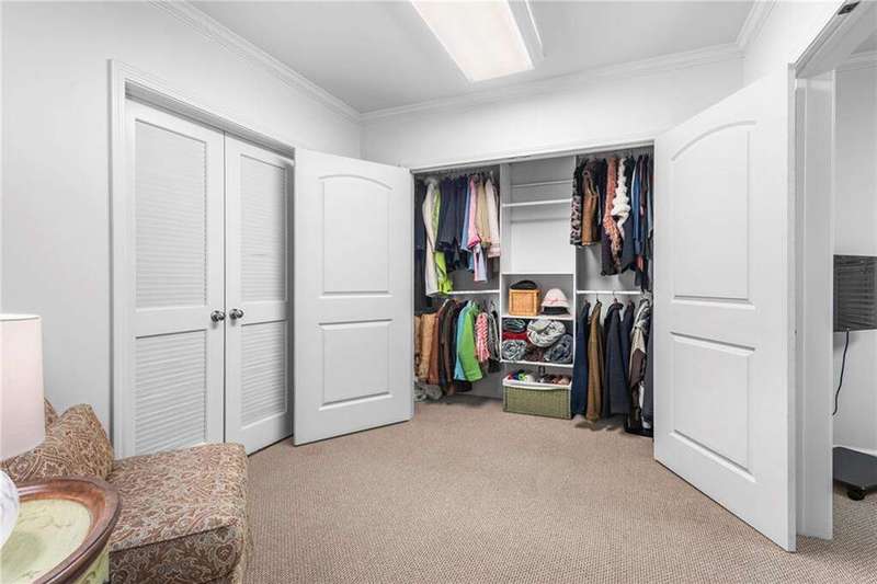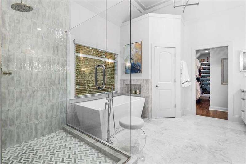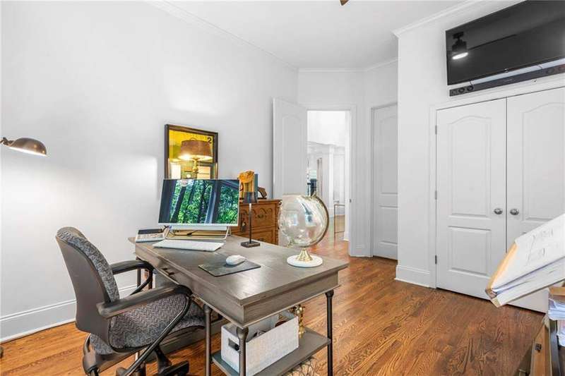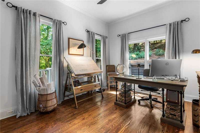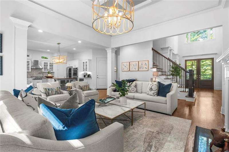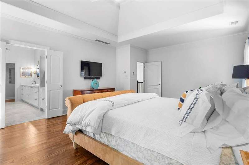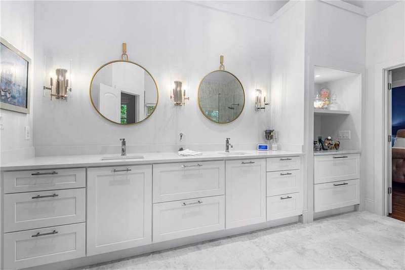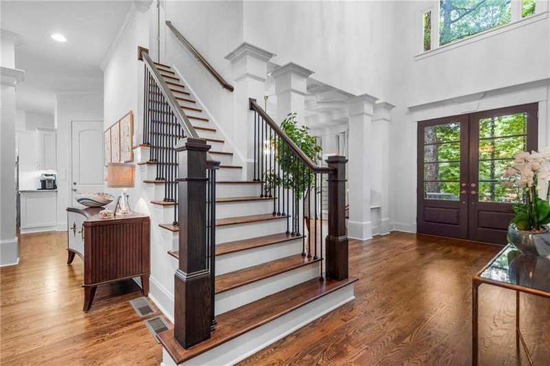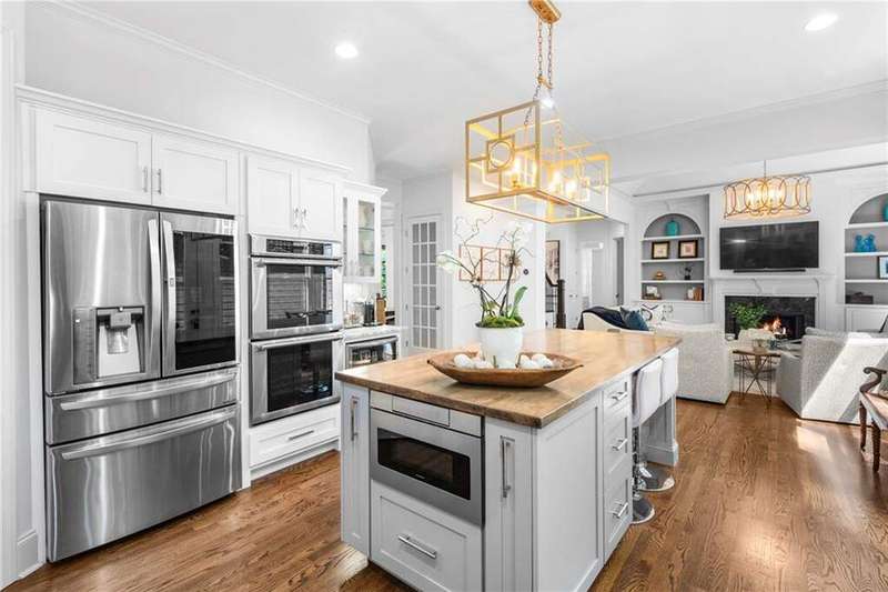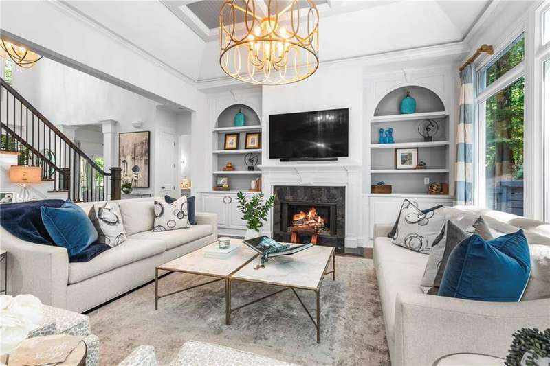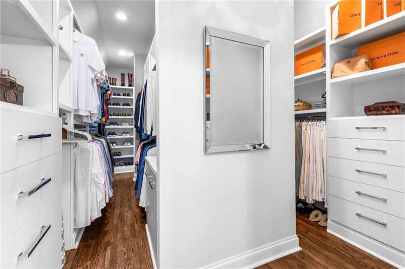 Welcome to Aerie Court, a beautifully remodeled four-sided brick & shingle home with three car garage nestled on a private, one-acre, wooded cul de sac lot in the coveted Ridgemark section of Huntcliff community. Perfectly blending elegance, craftsmanship, and modern amenities, this is luxury living at its finest-just steps from Cherokee Country Club & Golf. Where luxury meets everyday living, step inside to discover a Main Level designed to impress. The grand two-story foyer greets you with 8' double mahogany doors inset with German antique glass, while ornamental molding, decorative columns, 8' interior doors, and glowing hardwood floors throughout underscore the home's architectural elegance. Entertain in style in the formal dining room, complete with tray ceiling and wainscoting, or unwind in the serene living/sitting room that opens through French doors onto a side porch overlooking nature. The family room blends comfort with design coffered ceiling, custom built ins, fireplace, and a designer chandelier all framed by a wall of windows that bring in natural light and showcase the outdoor patio-an entertainers' delight. The kitchen is nothing short of gourmet, designed for both beauty and function: a four-seat island with microwave drawer, dual spice pull-outs, appliance cabinet, premium Thermador & Bosch appliances, smart LG fridge, walk-in pantry, plus a dedicated coffee bar and beverage cooler. It's upgraded in every way. For added versatility a main level bedroom or office with closet and direct access to a full bath; perfect for guests, work from home, or multigenerational ease. The Upper Level is where elegance, comfort, and luxury collide. Four spacious bedrooms are illuminated by soaring 10' tray ceilings, ornamental custom molding, and recessed lighting that enhances architectural detail. Three beautifully appointed bathrooms are designed with both style and serenity in mind. The primary bedroom is a true retreat. It includes a dedicated sitting area, recessed lighting, ceiling fan, and rich hardwood flooring. The adjoining ensuite bath is superbly appointed, with a 10' tray ceiling crowned by a chandelier, honed marble flooring, and a floor to ceiling subway tile shower. The shower is fitted with a wall mounted rainfall head, a hand shower with full and massage spray settings. A striking freestanding soaking tub, complete with a tub filler and spray wand, the vanity area is expansive and functional, a generous double sink with deep drawer storage is complemented by a separate vanity space with wall shelving and linen drawers. The walk-in closet is custom built, double-sided from floor to ceiling, and features cabinet-style drawers, two laundry pull outs, ample shelving and hanging space, and dedicated shoe storage. The Terrace Level presents a distinguished family/entertainment room complete with a kitchenette, affording ideal space for hosting or leisure. A full bathroom accompanies the level. Two additional bedrooms enhance functionality and comfort-one opening via French doors onto the yard, the other offering a private sitting area. Large storage room offers flexibility: convert the space into a theatre, gym, or other bespoke use. Minutes to GA 400, Sandy Springs City Center, Roswell & Avalon.