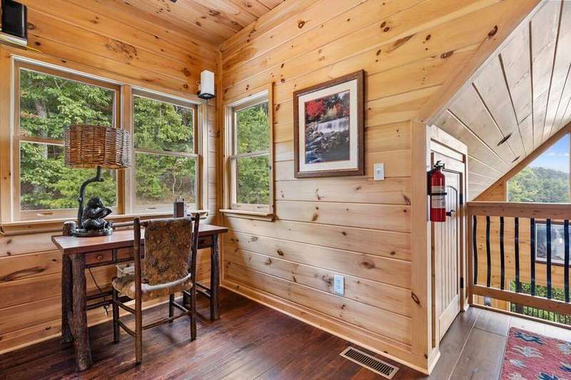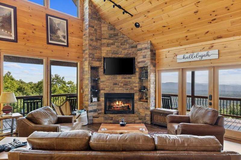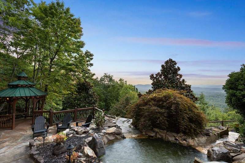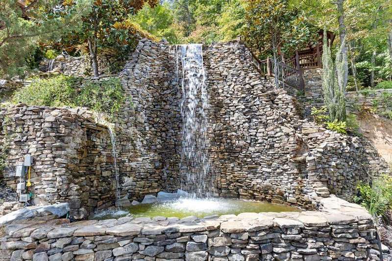 Luxurious mountaintop retreat offering complete PRIVACY and BREATH-TAKING VIEWS! Recently featured on American Dream Home, the Waterfall Lodge boasts panoramic long-range layered mountain views plus the sounds from your very own 25' waterfall for a truly one-of-a-kind mountain experience. Impeccably maintained with absolutely stunning views from every room, this private 4 bedroom mountaintop escape features the primary owner's suite on the main, high-end furnishings and decor, and recently updated finishes throughout. Massive stone fireplace and vaulted ceilings highlight the main living area with terrace level featuring oversized game room with additional family room and bunk room perfect for larger groups. Professionally landscaped and hardscaping with cozy outdoor fire pit area and outdoor spaces designed for entertaining while soaking in the views! Perfect for full-time living, luxury vacation rental, or private weekend getaway, this legacy property is offered turnkey with furnishing included. All paved access, plenty of parking, high-speed internet and backup generator. Waterfall Lodge offers complete serenity in the mountains yet is close enough to enjoy all things Blue Ridge has to offer including shopping, dining, trophy trout fishing, lake Blue Ridge and more!