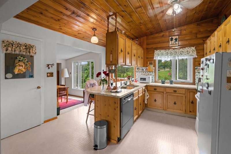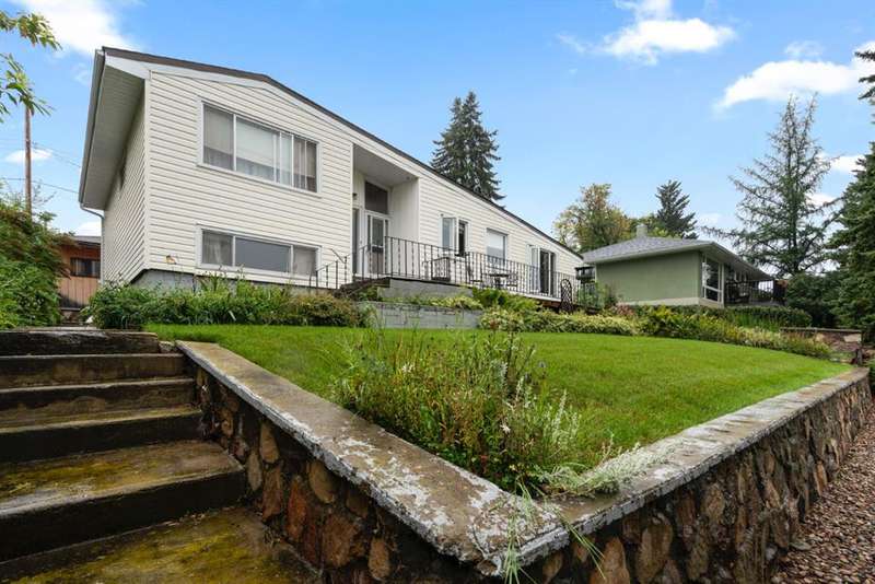 Nestled in an amazing location overlooking Camrose Jubilee Park, this unique 3-level split offers the perfect blend of character and convenience. Just steps from walking trails, the valley, the University of Alberta – Augustana Campus, and the hospital, this home is ideal for those who appreciate both nature and accessibility. Showcasing original wood vaulted ceilings that add warmth and charm, the layout features 2 bedrooms, 2 bathrooms, a cozy living room, a functional kitchen and dining area. Enjoy beautiful views of the park from your home, and take advantage of the double detached garage for ample storage and parking. A truly special find in a sought-after neighbourhood. Mature trees and a large front deck complete this home. Great Opportunity!