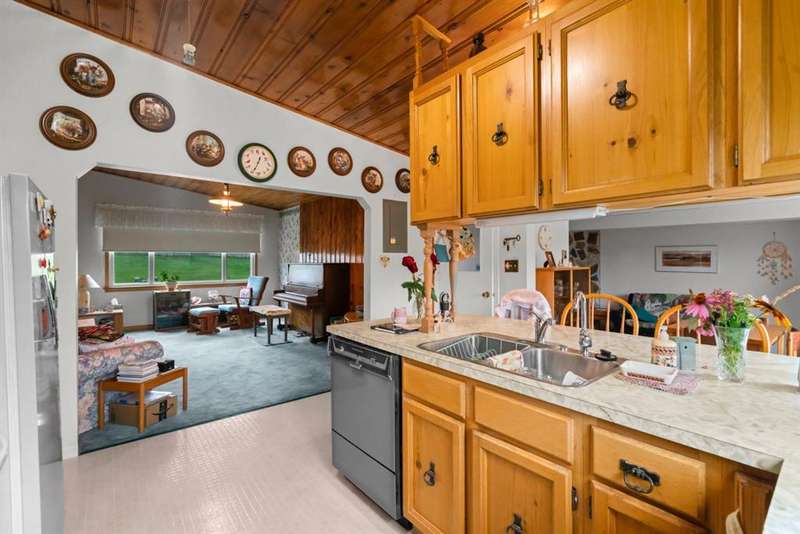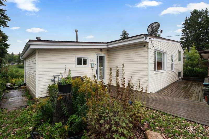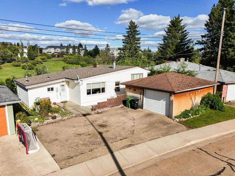 Nestled in an amazing location overlooking Camrose Jubilee Park, this unique 3-level split offers the perfect blend of character and convenience. Just steps from walking trails, the valley, the University of Alberta – Augustana Campus, and the hospital, this home is ideal for those who appreciate both nature and accessibility. Showcasing original wood vaulted ceilings that add warmth and charm, the layout features 2 bedrooms, 2 bathrooms, a cozy living room, a functional kitchen and dining area. Enjoy beautiful views of the park from your home, and take advantage of the double detached garage for ample storage and parking. A truly special find in a sought-after neighbourhood. Mature trees and a large front deck complete this home. Great Opportunity!