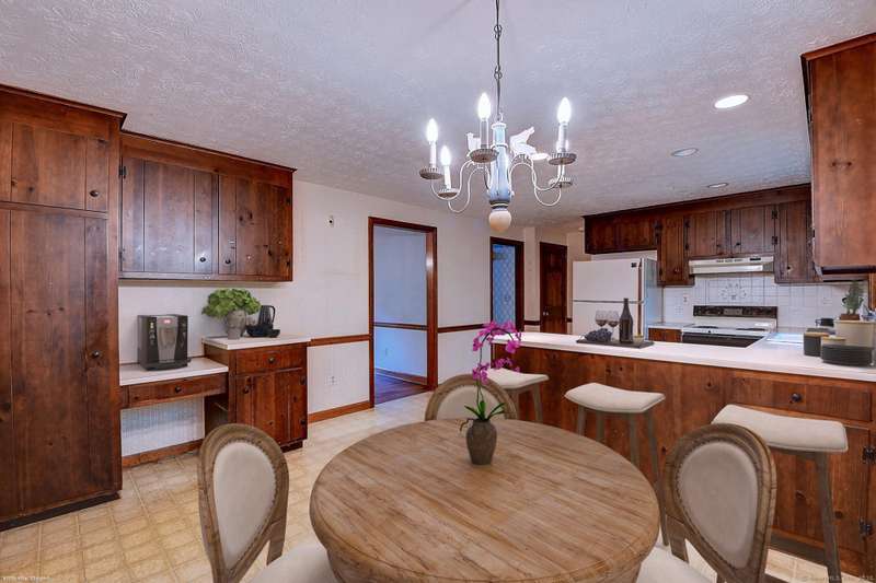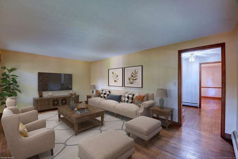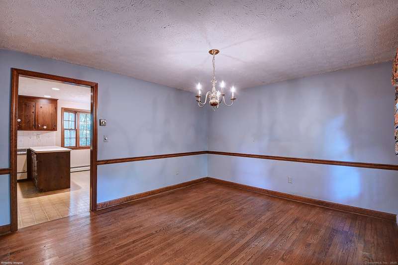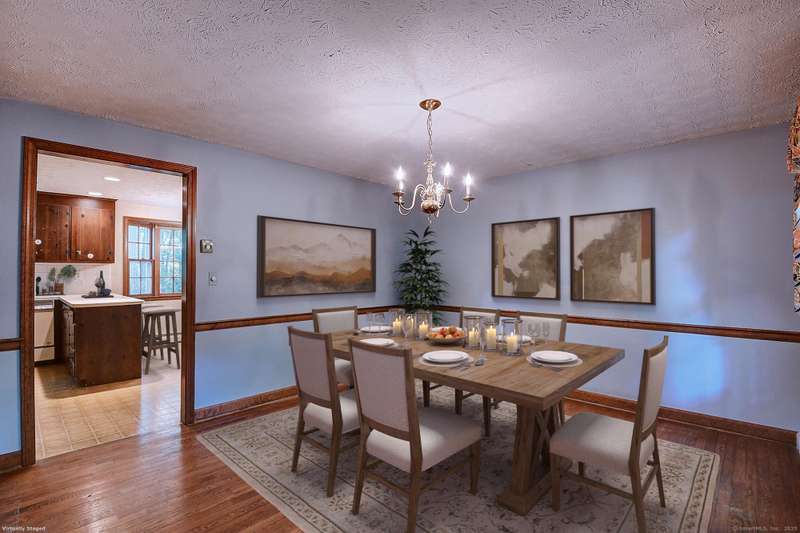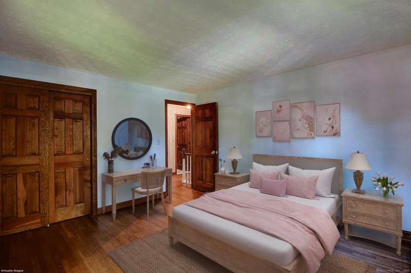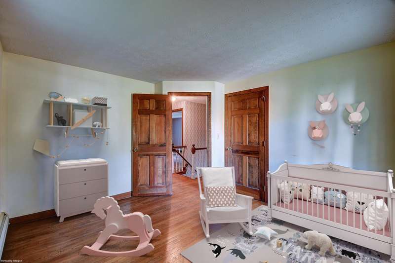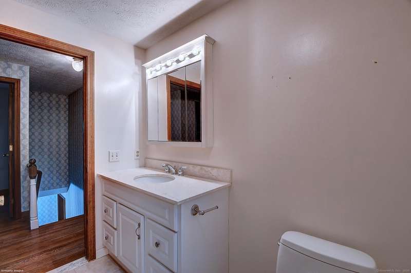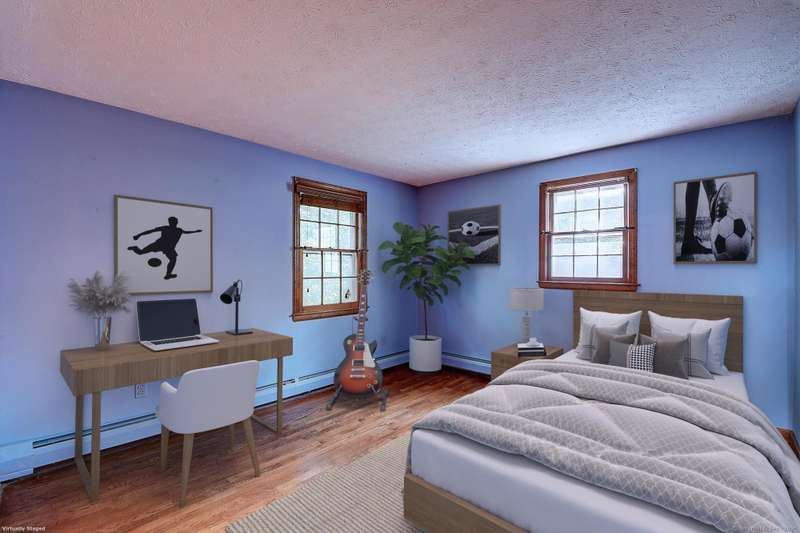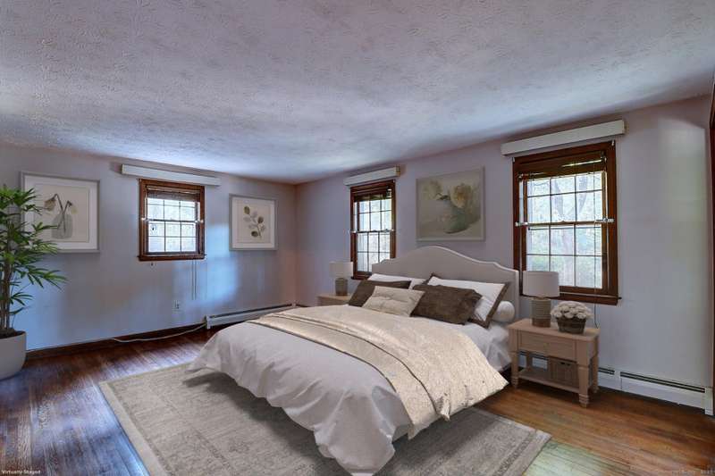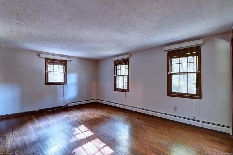 Large four-bedroom colonial awaits your finishing touches. Traditional layout with kitchen at the center of the home adjacent to the dining room and family living spaces. Great room features soaring ceiling, floor to ceiling brick fireplace, wood burning stove and access to back sunroom. Fabulous private backyard with plenty of room to enjoy. Hardwood floors throughout most of the home. All bedrooms located on the second floor with primary suite. Finished lower level for den, home office, gym or play space. Attached two car garage, convenient location for laundry on main level. Fabulous location just moments to the center of town with easy access to highway for a fast commute.