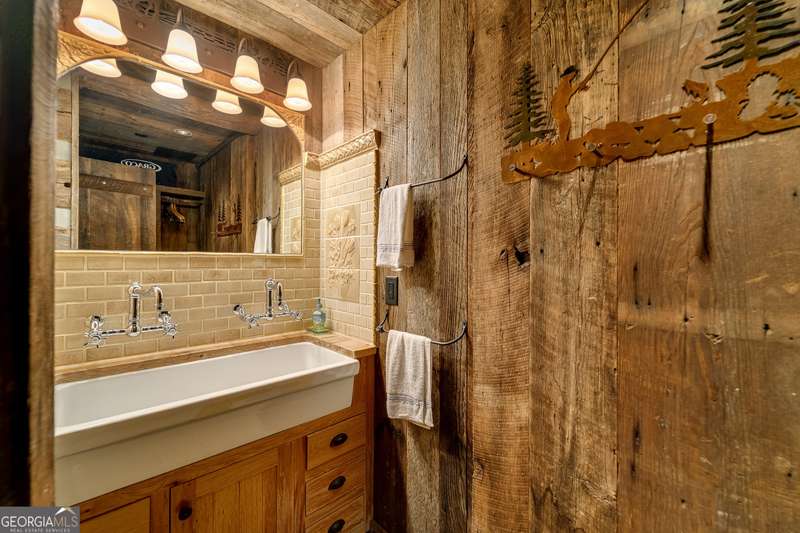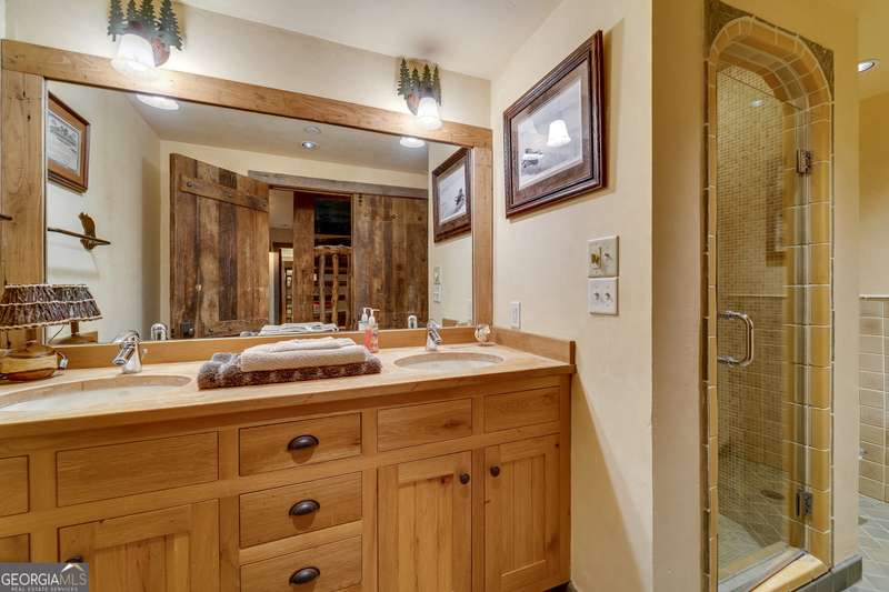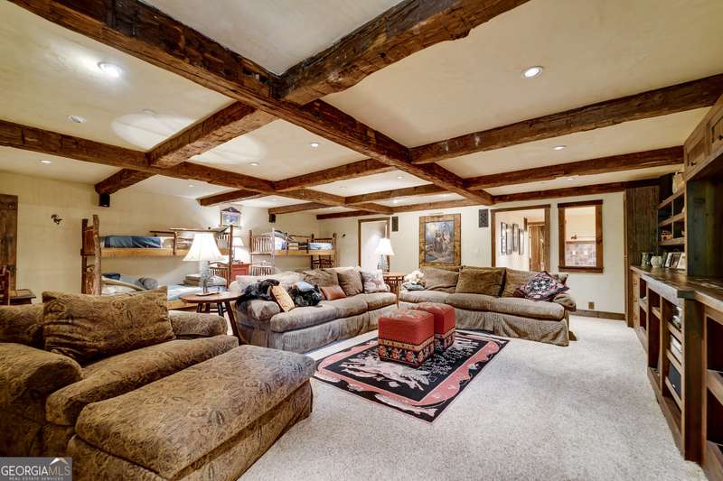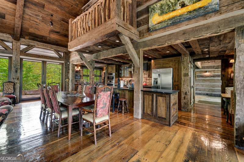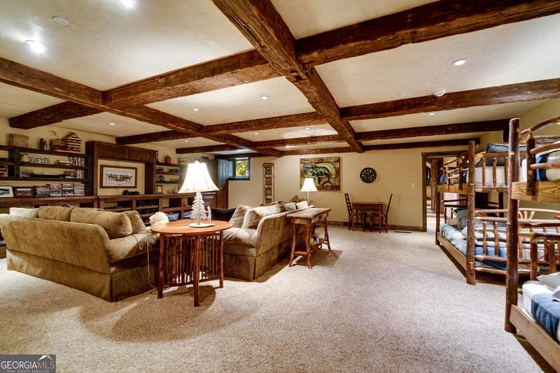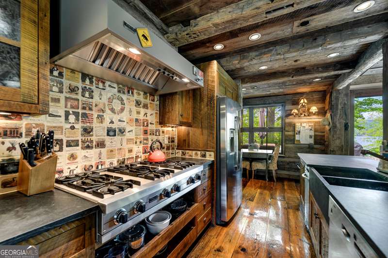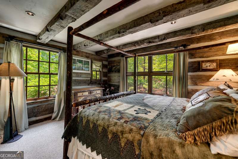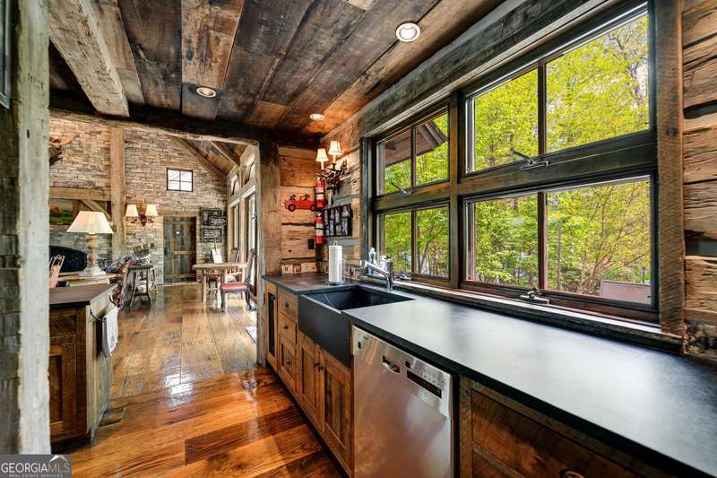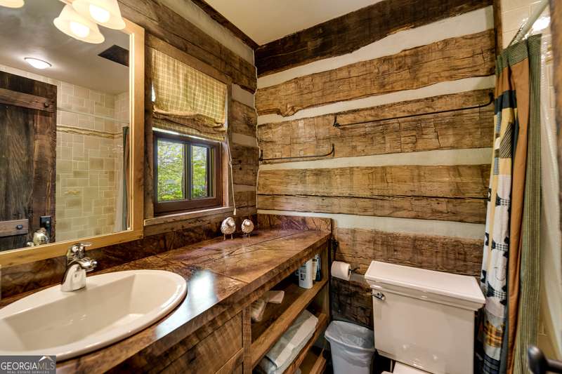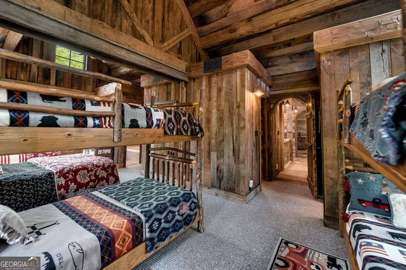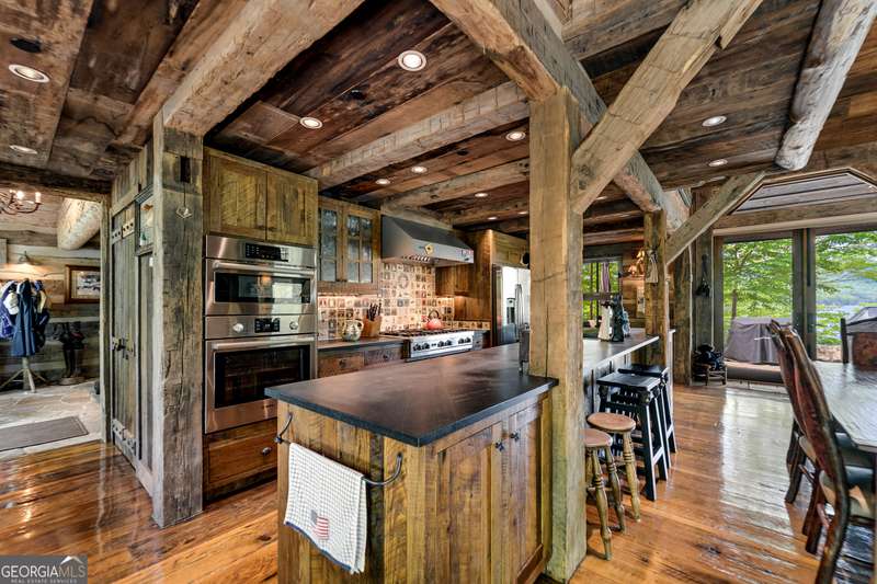 Once-in-a-Lifetime Private Island Estate on Lake Burton Discover the pinnacle of lakeside luxury with this extraordinary 6,186 sqft mountain lodge, perched on its own private island in the heart of Lake Burton's coveted big basin. Offering 360- degree lake and mountain views, total privacy, and Yellowstone-inspired rustic elegance, this one-of-a-kind estate redefines waterfront living. Crafted from reclaimed timbers sourced from Southern cotton mills, the residence exudes old-world craftsmanship and frontier charm. Hand-hewn oak siding with classic chinking, dry stack Tennessee fieldstone, rough-sawn wide plank oak floors, and steel structural supports anchor the home with strength and character. An elegant entry foyer welcomes you from two directions, showcasing east and west views through an open riser staircase with reclaimed treads and flagstone flooring. The soaring great room features lake views from 2 walls, a dramatic cupola, flanking fireplace posts reclaimed from Zachary Taylor Scott's historic home, and a moose antler chandelier complete with a buckshot hole. The chef's kitchen blends style and substance with black soapstone countertops, custom barn wood cabinetry, Viking 6-burner range, dual Bosch dishwashers, refrigerator drawers, custom soapstone sinks and two pantries. The private owner's suite features 3 walls of lake views, a barn wood clad vaulted ceiling and stone fireplace. Each guest bedroom offers unique views and details. The main floor provides 2 guest bedrooms, each with chinked log walls and a private bath. Upstairs, a clever bunk room offers access from 2 separate hallways with a full bath on each end. A large hidden pocket door opens to separate the space into 2 separate bunkrooms when desired. A library with a vaulted ceiling and lake views is currently styled as another guest bedroom upstairs. The terrace level offers a spacious yet cozy media room with a wall of bunk beds against the back wall, a kitchenette with a full fridge/freezer combo, range, sink and dishwasher and laundry room with sink. The gym was designed to mirror the upstairs bunk room, featuring full bathrooms on each end. This space could easily be converted into 2 separate guest bedrooms with the addition of a wall. Outdoors, expansive flagstone patios wrap the home offering views from all directions. Meandering trails of recycled tire wrap the Island, leading to the east wharf and swim dock, putting green, and west side 2-story, 2-stall covered boathouse overlooking one of the most epic sunset views on Lake Burton. Additional Details include: self-contained fire suppression system, copper-clad Kolbe windows, antique terracotta tile, LiteTouch lighting system, extensive security system, 1GB Fiber Optic Internet, slate roof, lightning rods, Generator, central vac. Proof of Funds required before showing. There are security surveillance cameras throughout the island. Do not attempt to access the property without listing agent being present.