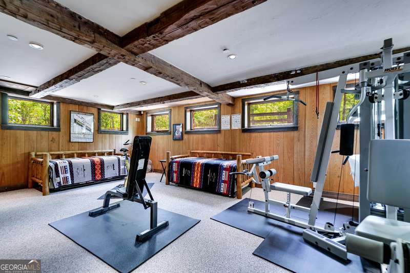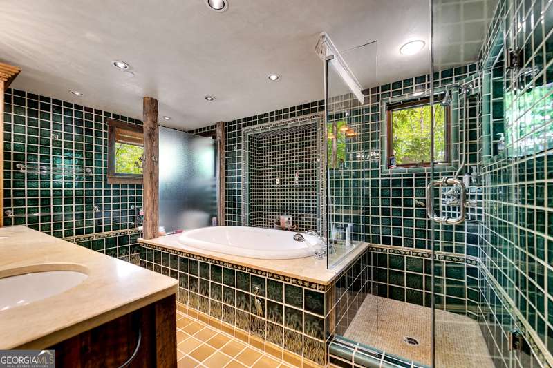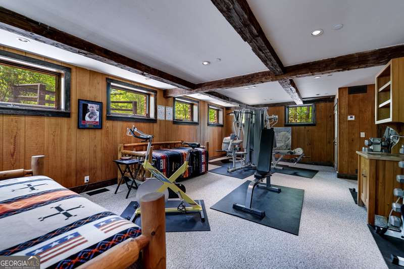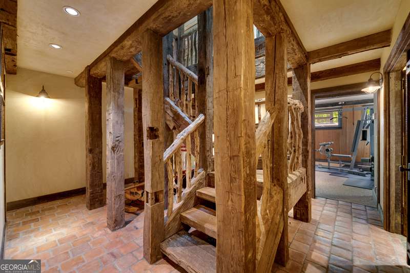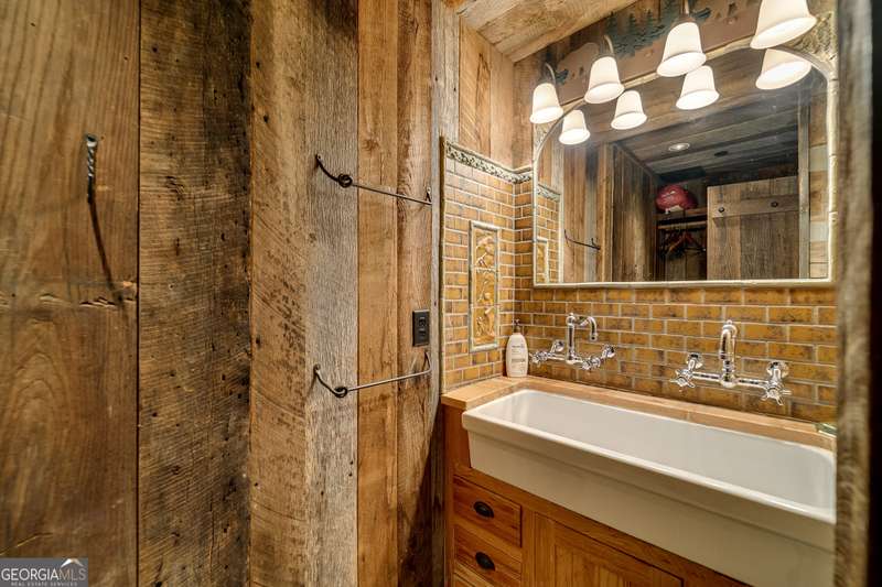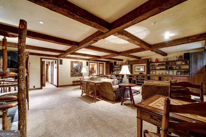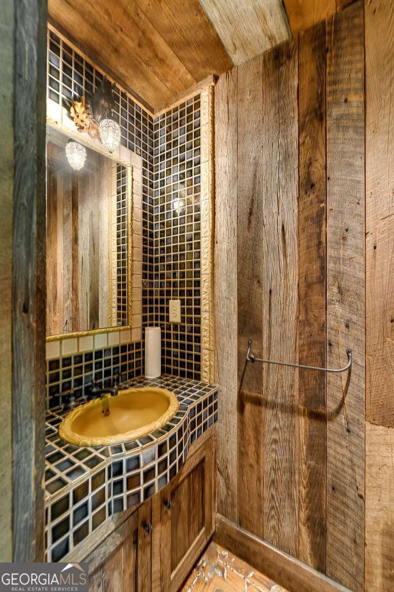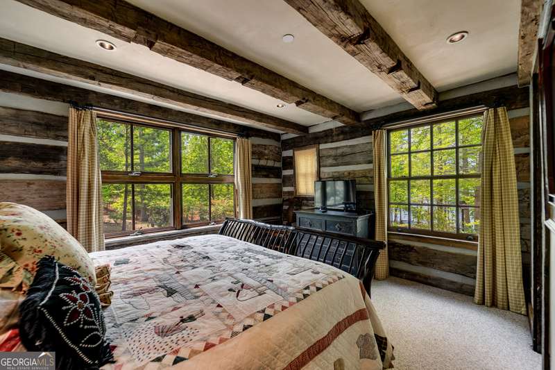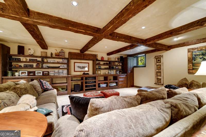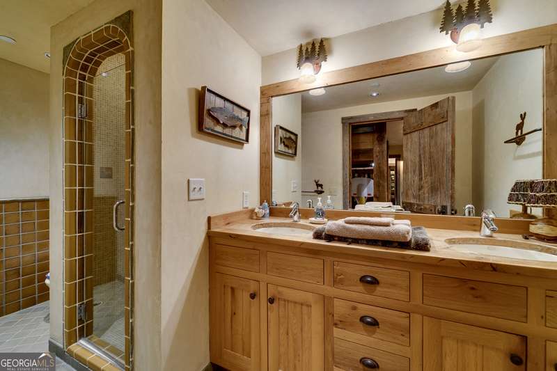 Once-in-a-Lifetime Private Island Estate on Lake Burton Discover the pinnacle of lakeside luxury with this extraordinary 6,186 sqft mountain lodge, perched on its own private island in the heart of Lake Burton's coveted big basin. Offering 360- degree lake and mountain views, total privacy, and Yellowstone-inspired rustic elegance, this one-of-a-kind estate redefines waterfront living. Crafted from reclaimed timbers sourced from Southern cotton mills, the residence exudes old-world craftsmanship and frontier charm. Hand-hewn oak siding with classic chinking, dry stack Tennessee fieldstone, rough-sawn wide plank oak floors, and steel structural supports anchor the home with strength and character. An elegant entry foyer welcomes you from two directions, showcasing east and west views through an open riser staircase with reclaimed treads and flagstone flooring. The soaring great room features lake views from 2 walls, a dramatic cupola, flanking fireplace posts reclaimed from Zachary Taylor Scott's historic home, and a moose antler chandelier complete with a buckshot hole. The chef's kitchen blends style and substance with black soapstone countertops, custom barn wood cabinetry, Viking 6-burner range, dual Bosch dishwashers, refrigerator drawers, custom soapstone sinks and two pantries. The private owner's suite features 3 walls of lake views, a barn wood clad vaulted ceiling and stone fireplace. Each guest bedroom offers unique views and details. The main floor provides 2 guest bedrooms, each with chinked log walls and a private bath. Upstairs, a clever bunk room offers access from 2 separate hallways with a full bath on each end. A large hidden pocket door opens to separate the space into 2 separate bunkrooms when desired. A library with a vaulted ceiling and lake views is currently styled as another guest bedroom upstairs. The terrace level offers a spacious yet cozy media room with a wall of bunk beds against the back wall, a kitchenette with a full fridge/freezer combo, range, sink and dishwasher and laundry room with sink. The gym was designed to mirror the upstairs bunk room, featuring full bathrooms on each end. This space could easily be converted into 2 separate guest bedrooms with the addition of a wall. Outdoors, expansive flagstone patios wrap the home offering views from all directions. Meandering trails of recycled tire wrap the Island, leading to the east wharf and swim dock, putting green, and west side 2-story, 2-stall covered boathouse overlooking one of the most epic sunset views on Lake Burton. Additional Details include: self-contained fire suppression system, copper-clad Kolbe windows, antique terracotta tile, LiteTouch lighting system, extensive security system, 1GB Fiber Optic Internet, slate roof, lightning rods, Generator, central vac. Proof of Funds required before showing. There are security surveillance cameras throughout the island. Do not attempt to access the property without listing agent being present.