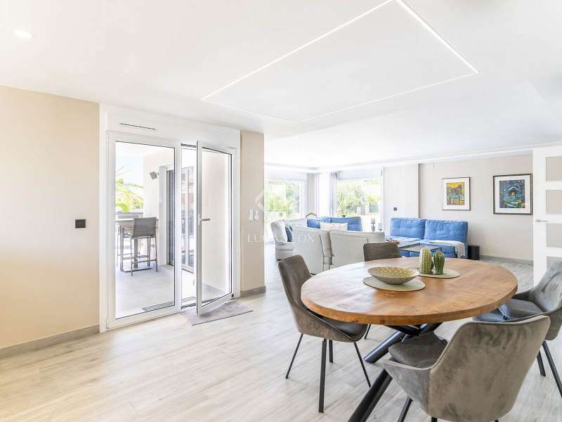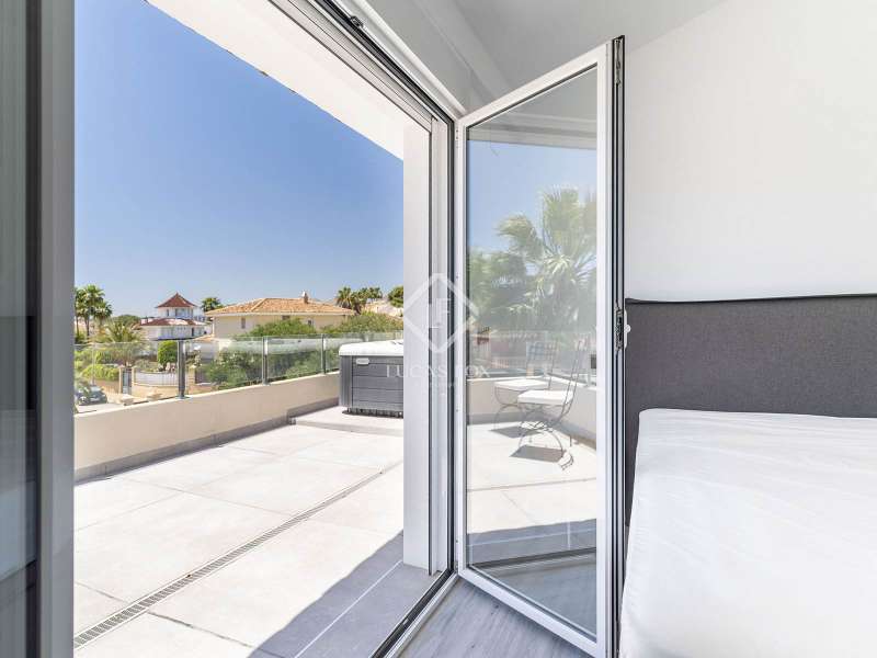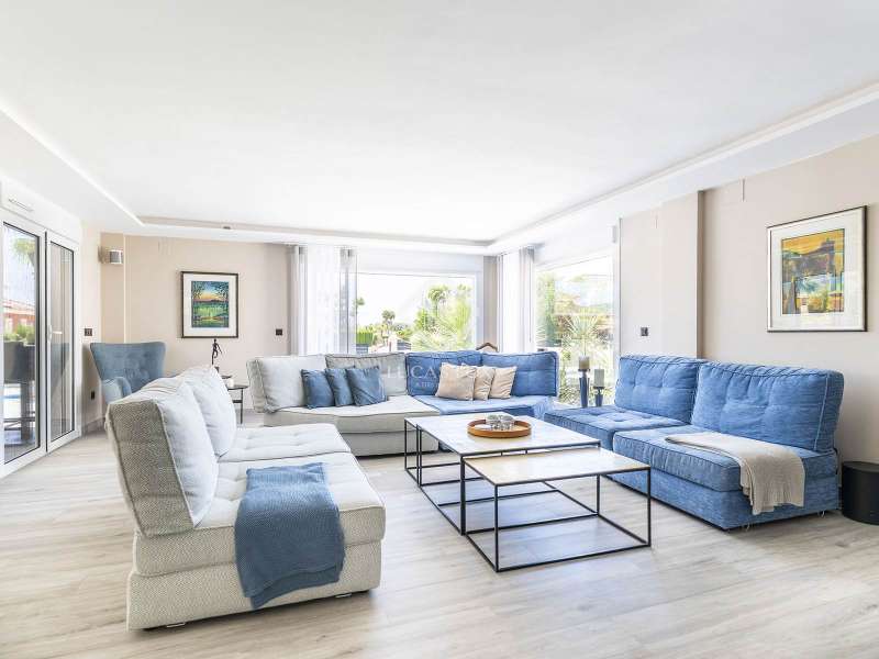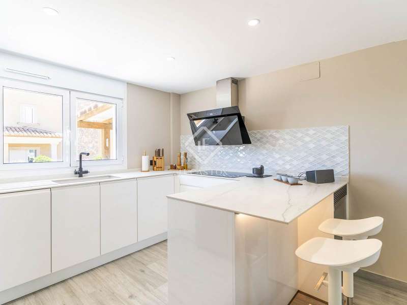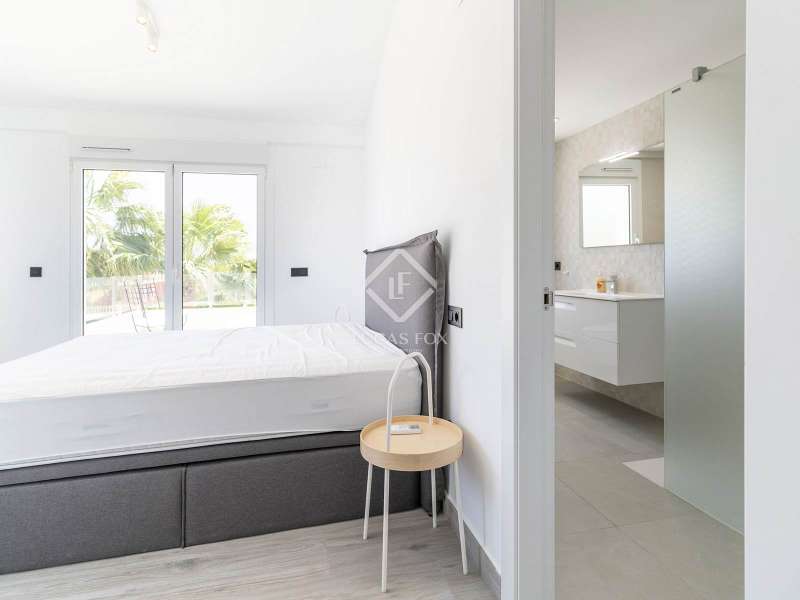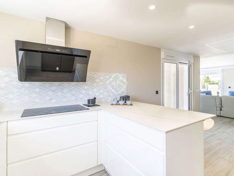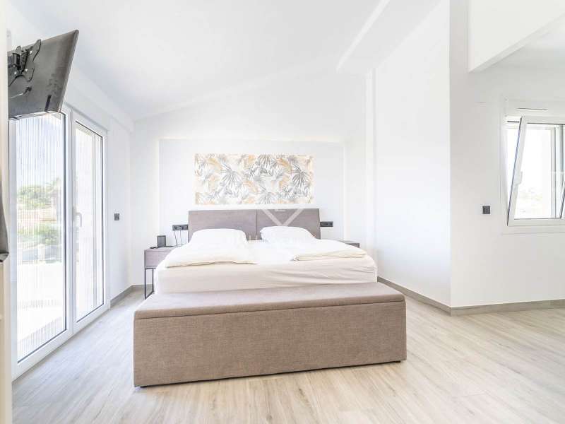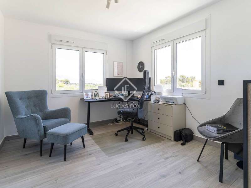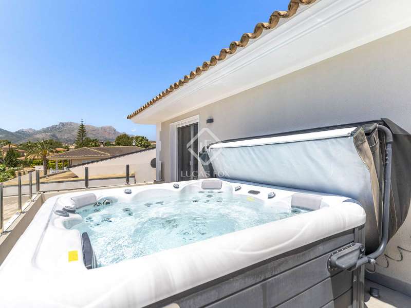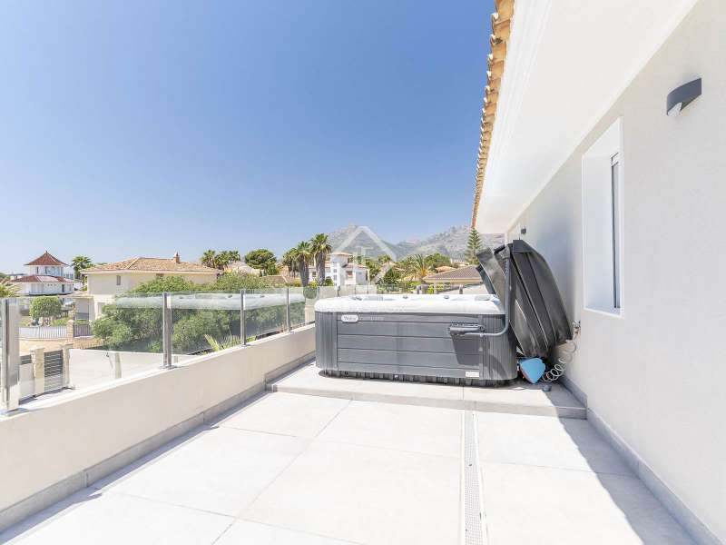 Located in one of the most serene and well-connected areas of L’Alfàs del Pi, this beautifully renovated villa is a perfect blend of modern comfort, elegant design, and Mediterranean charm. Originally built in 2000 and meticulously refurbished in 2023, the property offers both style and sustainability, including the installation of solar panels to support an eco-conscious lifestyle. Set on a generous plot, the home is bathed in natural sunlight throughout the day, offering a peaceful ambiance inside and out. The lush exterior features a stunning swimming pool bordered by graceful palm trees, a professional-grade mini golf course with artificial grass, and a designated space for Petanca, creating the perfect environment for both relaxation and entertainment. The villa is distributed across two floors plus a spacious basement. On the ground level, the entrance hall welcomes us into a thoughtfully designed layout. From here, you access a guest room, bathroom, staircase to the lower level, and a doorway to the bright and airy main living space. The living room features expansive windows that frame the garden and pool, flooding the interior with natural light. A seamless transition leads into the open-plan kitchen, fully fitted with high-end appliances and designed for everyday functionality and social living. From the living area, step out onto a stylish terrace complete with a summer barbecue area, dining space, and chill-out area, ideal for hosting gatherings or enjoying quiet evenings. The garden and pool are easily accessed from here, offering a seamless indoor-outdoor lifestyle. Upstairs, the villa offers three additional bedrooms, including a luxurious main suite with a private walk-in wardrobe and a well-appointed en-suite bathroom. One bedroom and a bedroom suite and a spacious balcony where a jacuzzi awaits, offering captivating views of the Benidorm skyline and surrounding landscapes. The basement level includes a large garage with room for three vehicles, a dedicated laundry space, a fully equipped utility room housing the pool systems, and a workshop area for added practicality. This villa is a true sanctuary, offering comfort, privacy, and elegant living in a location known for its year-round sun, natural beauty, and easy access to the coast, international schools, shopping, and transport links.