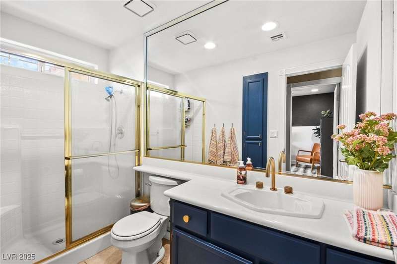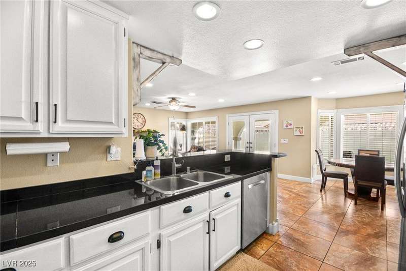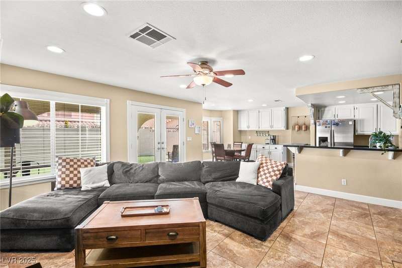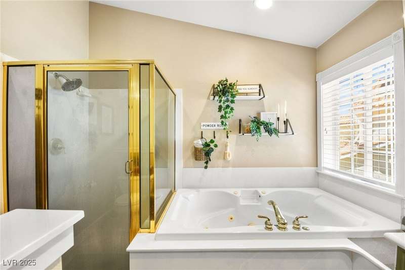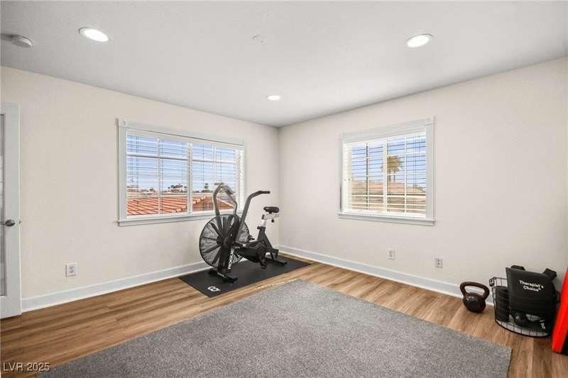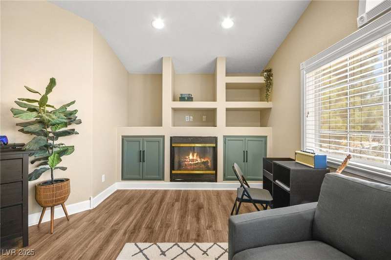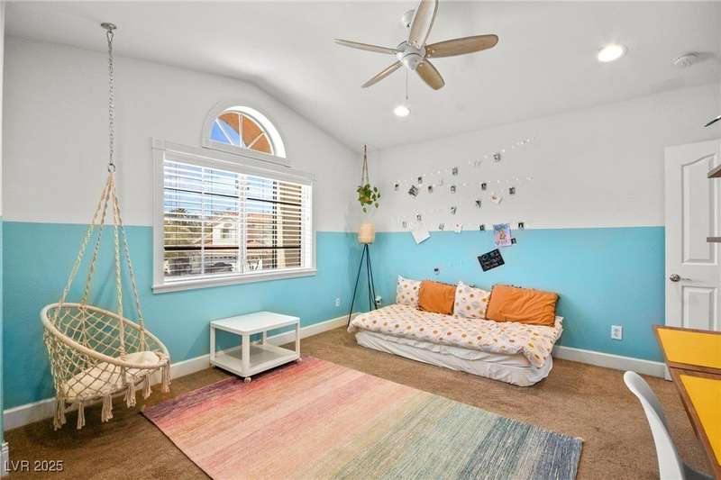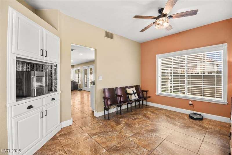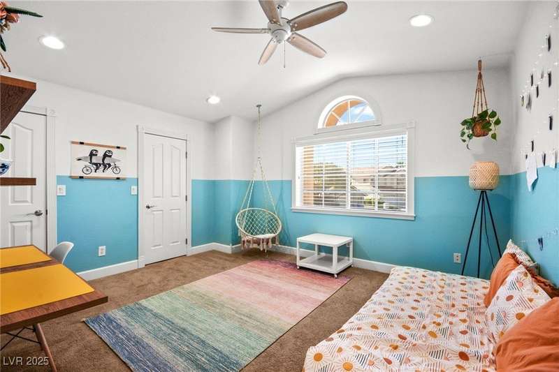 Welcome to an exquisitely turnkey corner lot home in Peccole Ranch. It boasts one of the largest floorplans in the subdivision at over 3000 sq ft of living space and the only home in the neighborhood with recessed exterior lights along with a fully wrapped around patio and massive side yard with firepit. The primary bedroom is immensely spacious including a sitting area with fireplace and large windows bringing in natural light in addition to the attached room for flex space for exercise room, office, nursery, or den. Downstairs entry door opens up to high ceilings leading into the living room and formal dining area. Kitchen connects the family room with breakfast nook for additional lounging area. There is a bedroom downstairs with a full bathroom excellent for guests. Please reach out for a tour of this rare phenomenal home today!