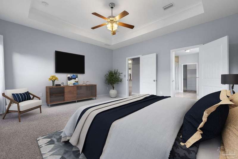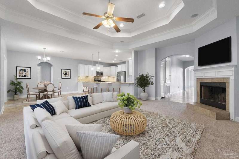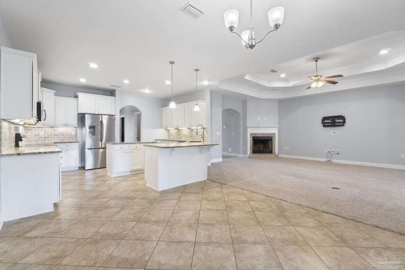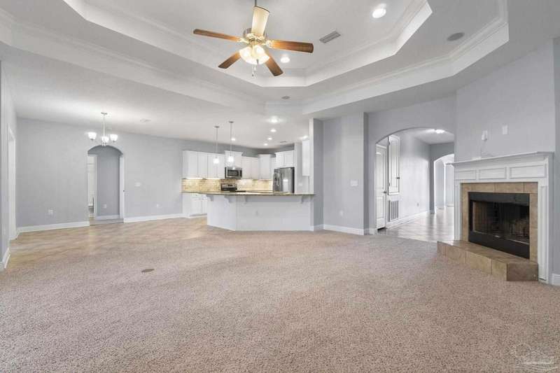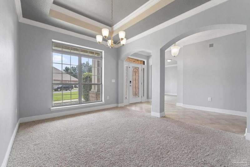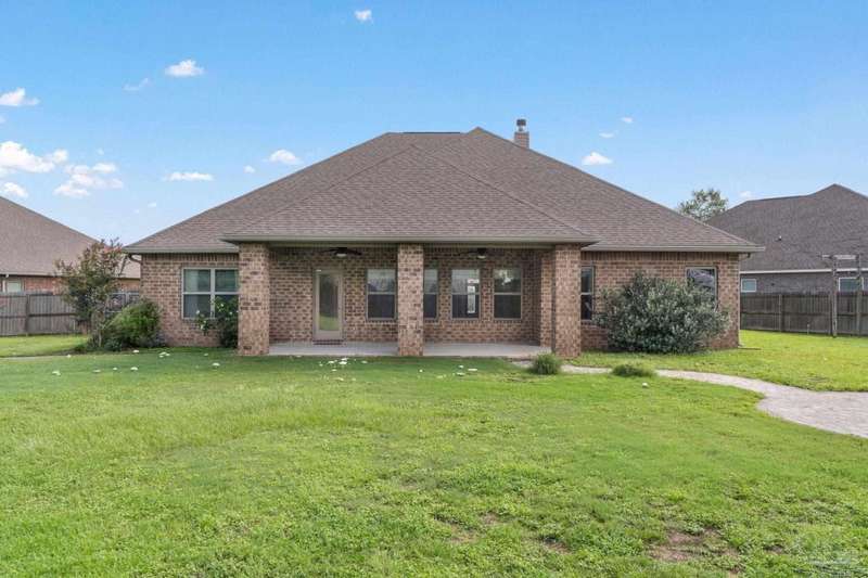 Location! Location! Location! Immaculate all-brick home in the heart of Pace at Spencer Ridge! This spacious 5BR/3BA split floor plan features a gourmet kitchen with granite countertops, stainless steel appliances, island, and walk-in pantry. The great room boasts tray ceilings, crown moulding, wood burning fireplace, and surround sound. Large primary suite includes dual vanities, soaking tub, and separate shower. Enjoy the extended great room, covered front and back porches, fenced yard, and a 24x14 powered workshop/shed. Located on a quiet �½-acre lot near top-rated schools, shopping, and NAS Whiting Field.