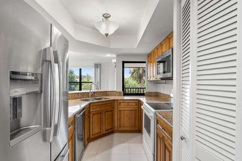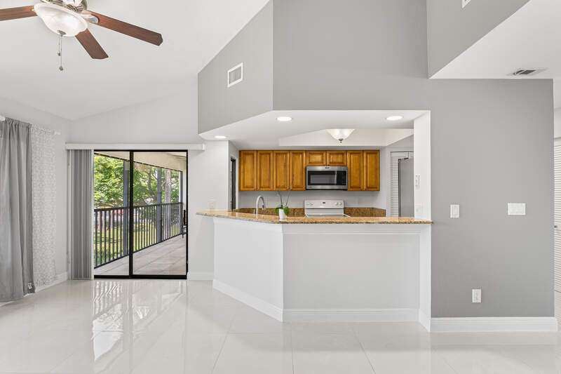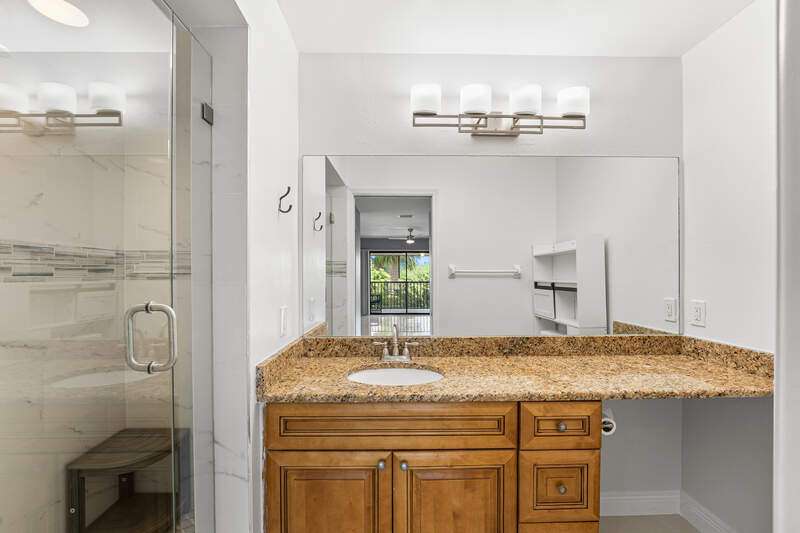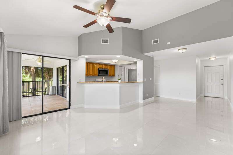 Seller wants it sold! Beautifully Updated 2BR/2BA Condo in the Heart of Fort Myers - End Unit with Serene Views Welcome to Greengate, a centrally located community offering quick access to downtown Fort Myers, dining, shopping, and the area's world-class beaches. This light-filled 2-bedroom, 2-bath, second-floor end unit has been tastefully updated and is truly move-in ready. Inside, stunning 24" x 24" porcelain tile runs throughout, creating a clean, modern aesthetic. The remodeled primary ensuite bath is a highlight, featuring a walk-in shower with floor-to-ceiling tile and listello detail, granite countertops, and a sleek frameless glass enclosure. The primary suite also offers lanai access for a private retreat. The spacious second bedroom is conveniently located next to the guest bath, which includes a shower/tub combination finished with beautiful porcelain tile and a stylish listello accent. The open kitchen is perfect for entertaining, complete with granite countertops and an under-cabinet wine cooler. It flows seamlessly into the dining and living areas, filled with natural light from the end-unit windows. Step out to the lanai to enjoy peaceful tree-lined views and wide-open green space-ideal for morning coffee or evening relaxation. Additional features include a deeded covered parking space, private storage room, and access to community amenities, including a sparkling pool and two tennis courts just steps away. Don't miss your chance to own this stylish and serene retreat in one of Fort Myers' most convenient locations.