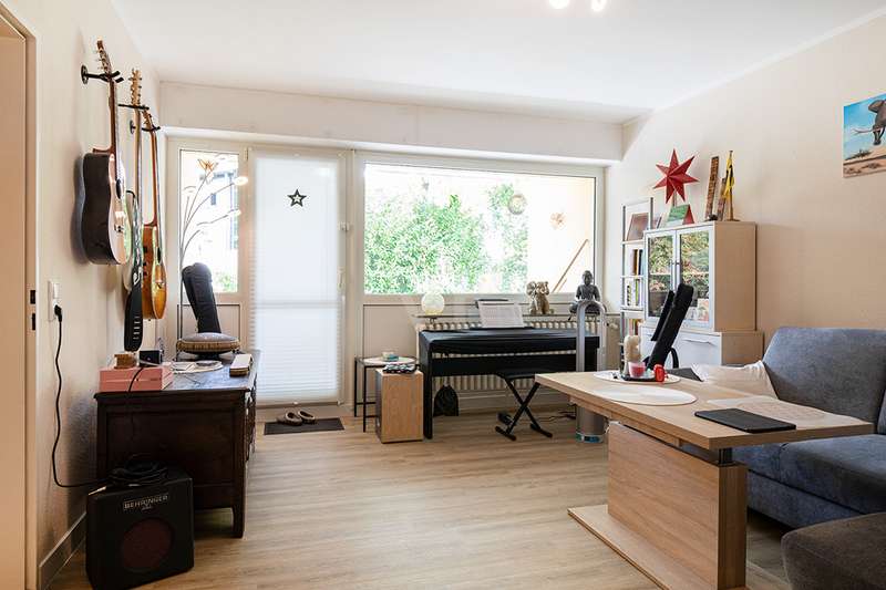 This residential complex with various houses in the Frankenforst district was built in 1970. The 3-room apartment offered here is located in a smaller building with only four units and is on the mezzanine floor. The apartment has a classic layout with two bedrooms, a separate kitchen and an attractive living area with direct access to the balcony. A shower room with natural light and a guest WC are naturally available. This apartment has a special right of use to a garden area, which can be reached via a staircase from the private balcony. Additional rooms, such as a cellar and a separate utility and drying room, can be found in the basement of the building. There is also a bicycle storage area. The owners have carried out a number of modernizations for the current tenant, who has lived in this apartment since 2018. Among other things, the screed, which was broken in some areas, was renewed and a parquet-look vinyl was laid, and a new shower was also installed. The tenancy should be continued if possible. The condition of the apartment can be described as very well maintained. The property offer is rounded off by an outdoor parking space.