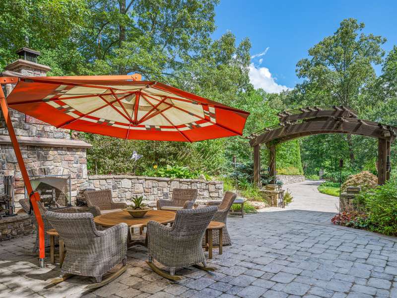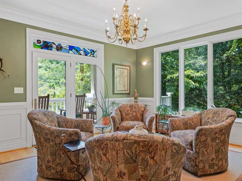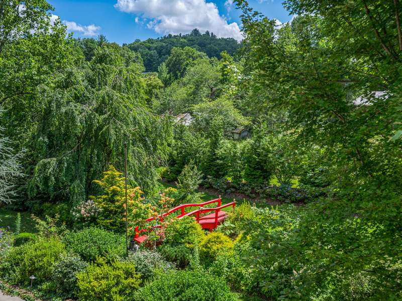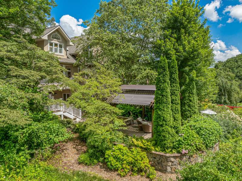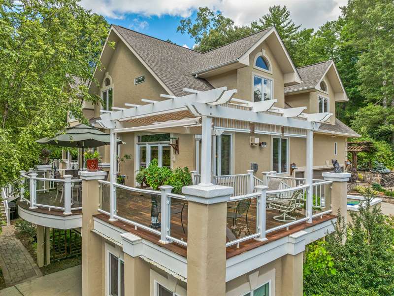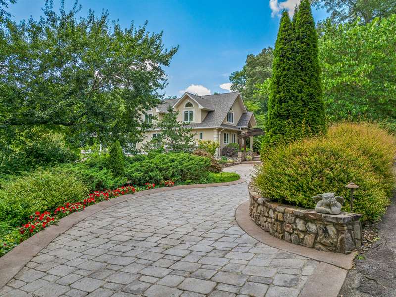 Nestled on .92 beautifully landscaped acres in the gated community of Keswick Hills, this stunning custom home offers luxurious living just minutes from Asheville's top shopping, dining, schools, and arts scene. Light-filled and elegantly designed, the home boasts 4 spacious bedrooms, 3.5 baths, and exquisite architectural details throughout. A chef's kitchen anchors the open living area, perfect for entertaining indoors and out. Handcrafted stained glass windows by local artisans add warmth and character. Enjoy multiple entertaining spaces, two attached garages, and abundant storage. Mature trees and lush landscaping offer privacy and serenity in this sought-after neighborhood. This is mountain living at its finest?refined, comfortable, and close to it all.