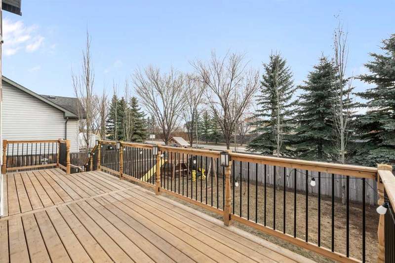 Step into the perfect family lifestyle with this beautifully updated 4 bedroom, 3.5 bathroom home—situated just steps from walking paths, a fantastic playground, and the highly regarded George Freeman School and indoor fieldhouse. This property offers space, comfort, and convenience in one of Strathmore’s most family-friendly locations. Enjoy summer days on the new oversized deck (2023), complete with stairs to a large concrete landing and dog run, plus a gated grassy backyard ideal for kids and pets. Inside, the 2023 kitchen renovation shines with Quartz counters, double oven, induction cooktop and walk through pantry. The home features air conditioning (2020), a roof replacement in 2025, and exceptional air quality upgrades including a Halo LED purifier, ElectroAir HEPA filtration, and Alvi clean air smart system. The insulated garage (21' 4" x 21' 9") offers an epoxied floor and 240V plug—perfect for future EV charging. Enjoy a generous primary bedroom including a large 5 piece ensuite, water closet and walk in closet. With 2 additional bedrooms and a bonus room upstairs, a main-floor office, laundry, and spacious mudroom, plus a fully developed basement with gym space, bedroom, and living room, this home delivers the room and lifestyle your family has been looking for.