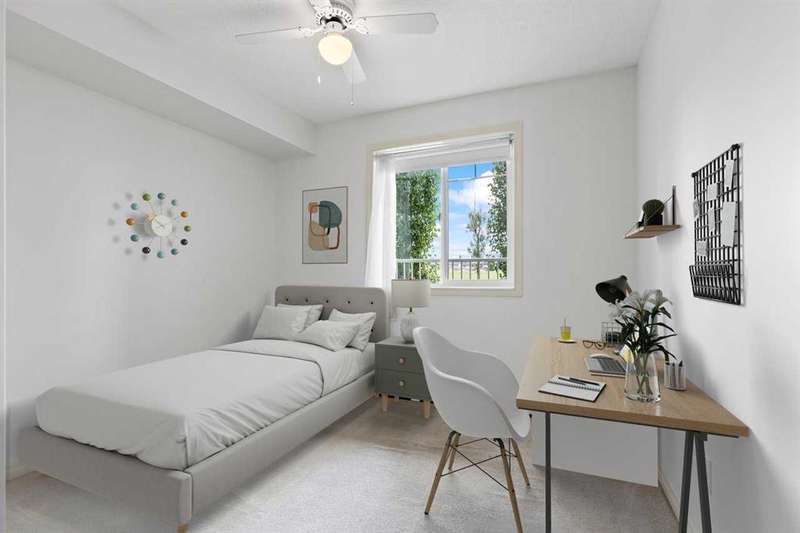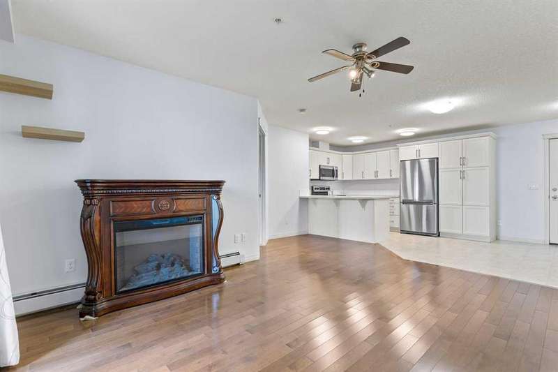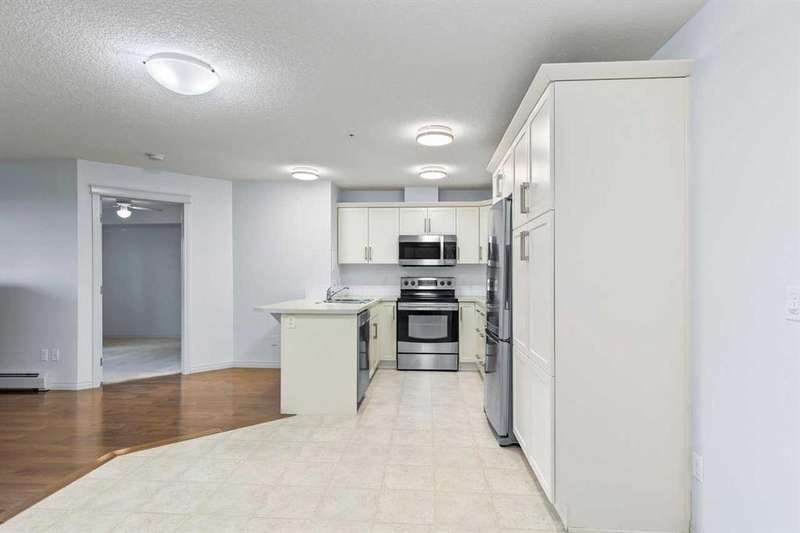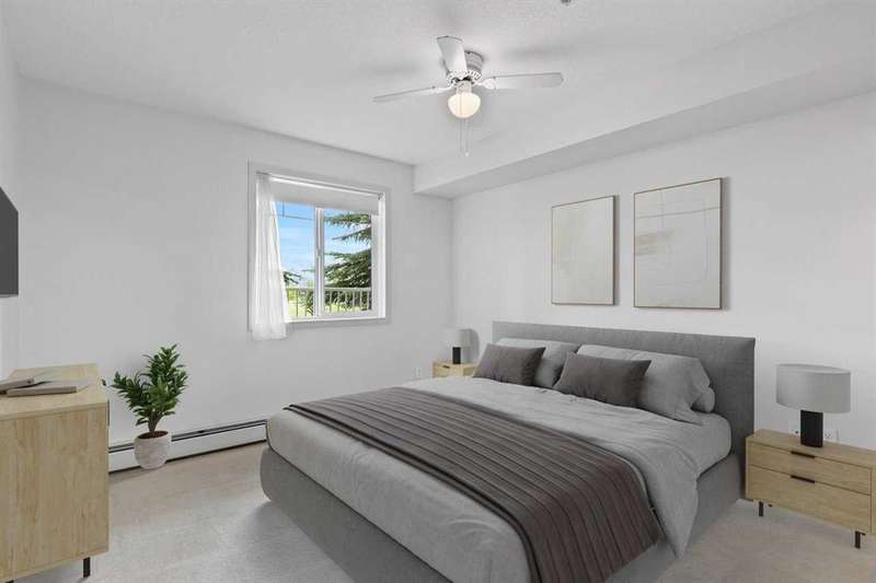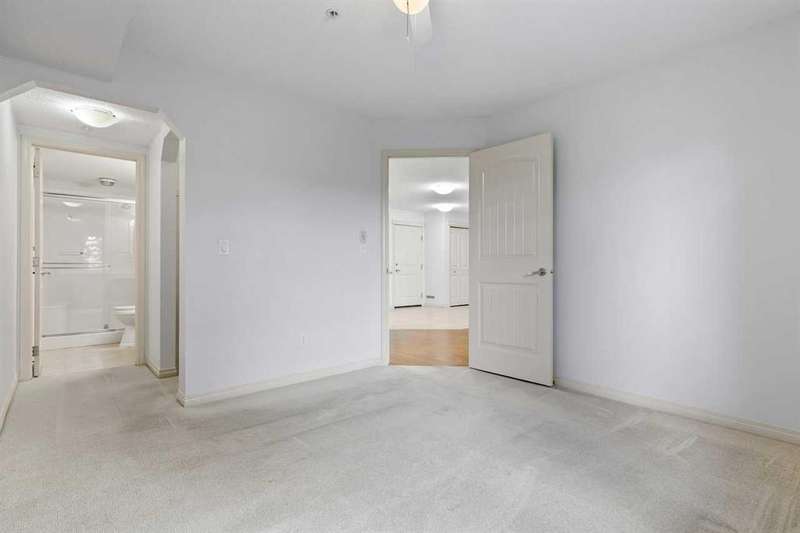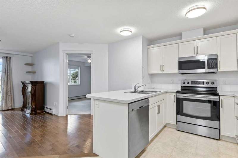 Welcome to this well maintained main-floor condo in the heart of McKenzie Towne! This spacious 2-bedroom, 2-bathroom unit offers the perfect combination of style, comfort, and convenience. Step inside to an open and airy layout with a wide entryway leading into a modern white kitchen, complete with stainless steel appliances, upgraded pantry, and a breakfast bar—ideal for both cooking and entertaining. Just off the kitchen, you'll find a large dining area and a dedicated work-from-home space for added versatility. The bright and inviting living room features well-maintained hardwood floors and opens onto a sunny west-facing deck that spans the width of the unit, offering beautiful views of green space and a gas BBQ hookup—perfect for summer evenings. The air-conditioned unit offers excellent privacy with bedrooms on opposite sides of the living space. The primary suite features a walk-in closet and a 3-piece ensuite, while the second bedroom is steps from a full 4-piece bathroom. A separate laundry room with washer and dryer adds to the practicality of the home. Additional features include titled underground parking, assigned storage locker, pet-friendly building (with board approval). Located just minutes from the shops and restaurants of 130th Avenue, schools, parks, and transit—this home truly has it all. Quick possession available. Don’t miss your chance to make this exceptional home yours!