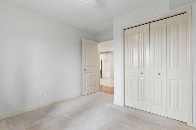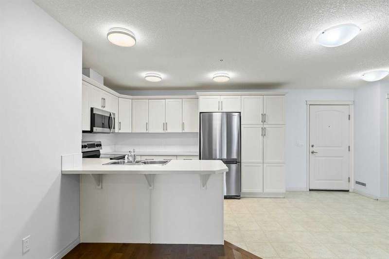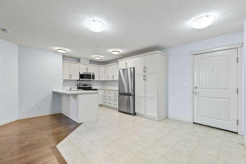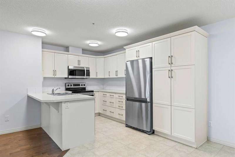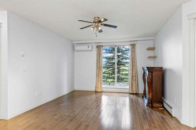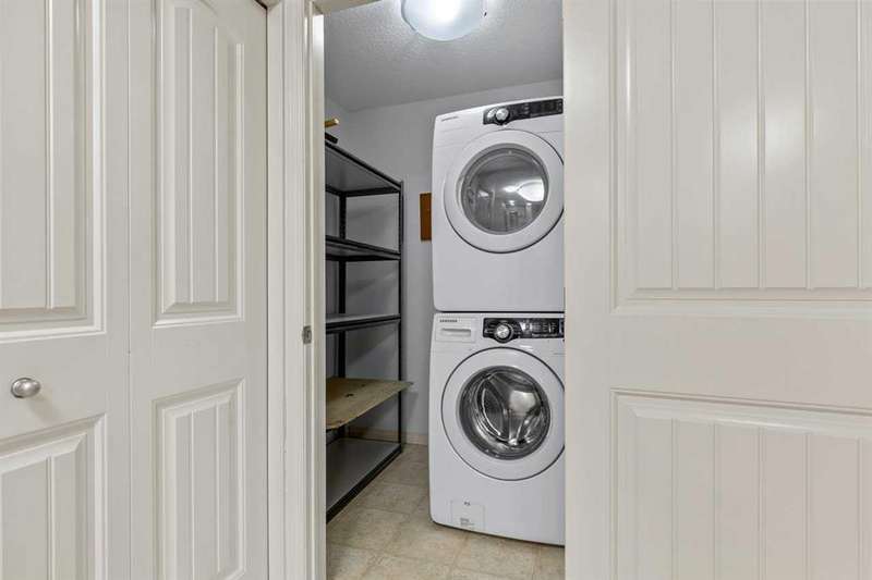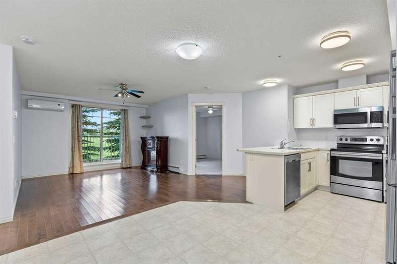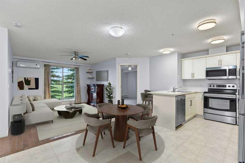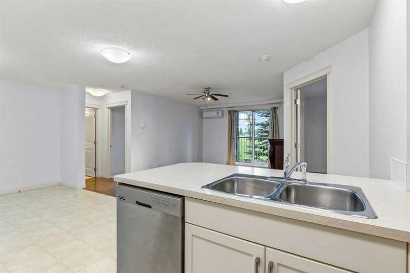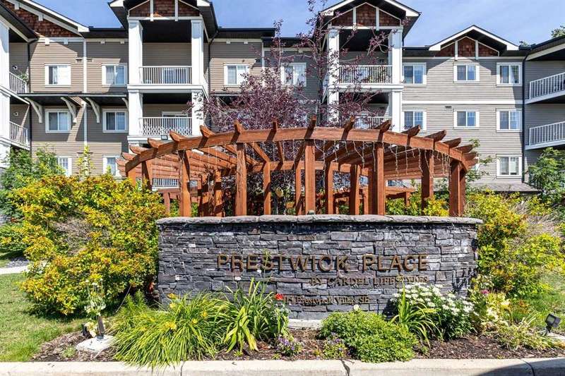 Welcome to this well maintained main-floor condo in the heart of McKenzie Towne! This spacious 2-bedroom, 2-bathroom unit offers the perfect combination of style, comfort, and convenience. Step inside to an open and airy layout with a wide entryway leading into a modern white kitchen, complete with stainless steel appliances, upgraded pantry, and a breakfast bar—ideal for both cooking and entertaining. Just off the kitchen, you'll find a large dining area and a dedicated work-from-home space for added versatility. The bright and inviting living room features well-maintained hardwood floors and opens onto a sunny west-facing deck that spans the width of the unit, offering beautiful views of green space and a gas BBQ hookup—perfect for summer evenings. The air-conditioned unit offers excellent privacy with bedrooms on opposite sides of the living space. The primary suite features a walk-in closet and a 3-piece ensuite, while the second bedroom is steps from a full 4-piece bathroom. A separate laundry room with washer and dryer adds to the practicality of the home. Additional features include titled underground parking, assigned storage locker, pet-friendly building (with board approval). Located just minutes from the shops and restaurants of 130th Avenue, schools, parks, and transit—this home truly has it all. Quick possession available. Don’t miss your chance to make this exceptional home yours!