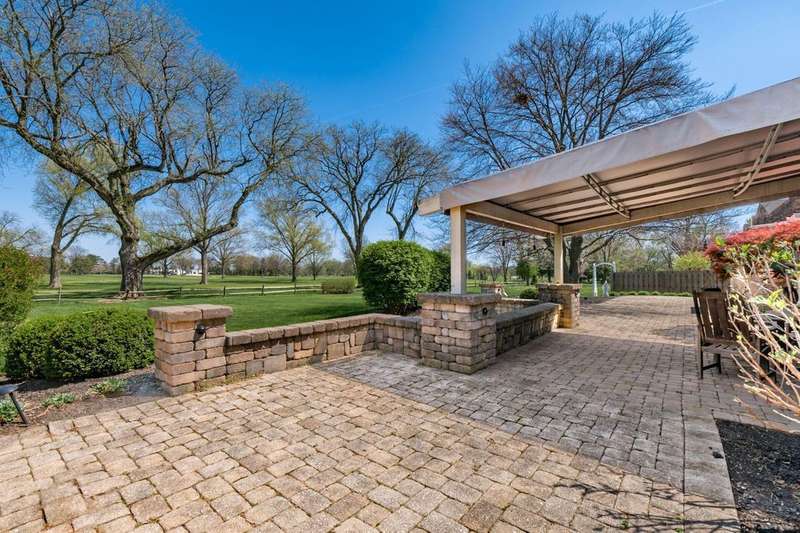 Custom built brick home on The OSU Golf Course. Super main floor plan with great looking hardwood floors throughout. Pet Free home! The Grand two-story foyer welcomes you and guides you to a great view of #12 hole. Large eat in kitchen with enormous Granite Island, SS Gas range, high end cabinetry, large double ovens, pantry, loads of cabinets space, and a great view of the back yard from the kitchen table. The convenience of a large mud room and half bath off the garage entry is perfect for unloading after school. Great space in the family room with built in cabinets and fireplace overlooking covered rear patio. An additional front sitting room has home office or den potential. Again, all hardwood throughout. The master suite is set up for privacy and opulence featuring a balcony overlooking back yard and the OSU Golf Course. Master suite has huge private bathroom with 2 separate sink areas, a giant walk-in closet, again all hardwood flooring. The 2nd floor laundry room with cabinets and Granite counters is a gem. The other 3 bedrooms are very large and have great closet space. Nicely designed Jack and Jill bathroom is super convenient. Again, all hardwood. Large lower level is finished and has high ceilings, wet bar area, fireplace with gas logs, a THIRD full bathroom, and finished sitting/napping room. Extra storage space in the lower level has home gym possibilities. The home has 2, 75 gallon water heaters and 2 full HVAC systems for peak efficiency. Garage is oversized and has all the room needed for bikes, boats, etc. The back yard is all about entertaining on the huge paver patio overlooking the golf course. The combination of a great house on a great lot. Walk to St Andrew and Hastings and Reed Road Water Park and Thompson Park and Library. Location!!!