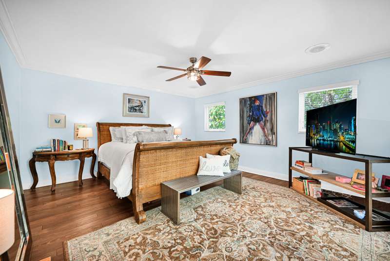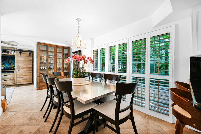 Located on a lush, tree-lined corner lot in Coral Gables, this beautifully updated mid-century modern home offers a perfect blend of timeless design and everyday comfort. A double-height entry and floating staircase set the tone for light filled interiors with warm wood floors, crown molding, and plantation shutters. The home features formal and casual living spaces ideal for entertaining. The upstairs suite includes a private balcony and a spa-inspired bath, while the additional bedrooms provide ample space for family, guests, or home offices. Portion of the garage has been converted into a fifth bedroom, perfect for use as maid or in-laws quarters. Just minutes from top-rated schools, parks, and the best of Downtown Coral Gables, this elegant residence offers style, space, and privacy.