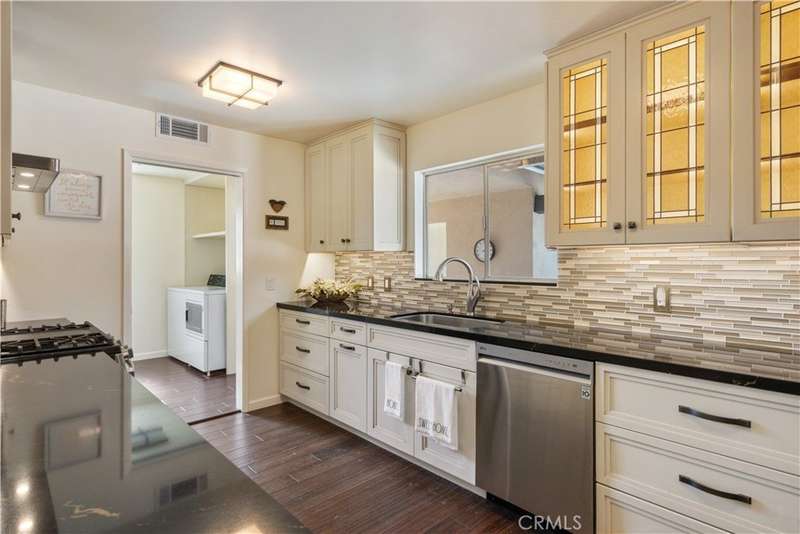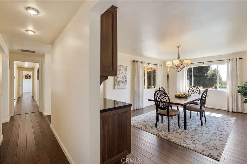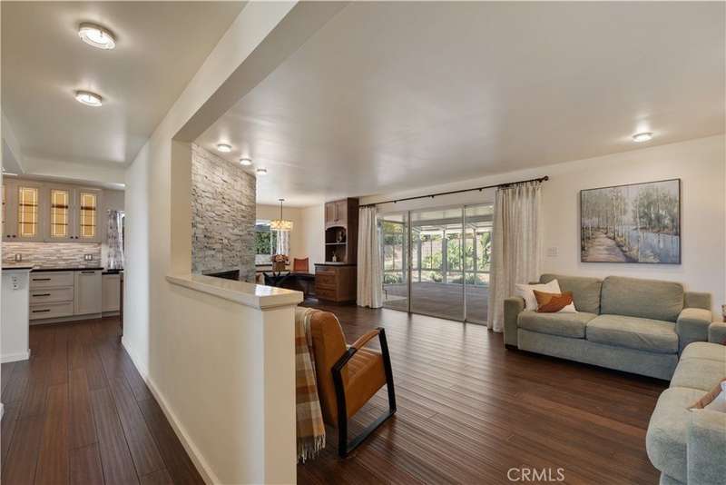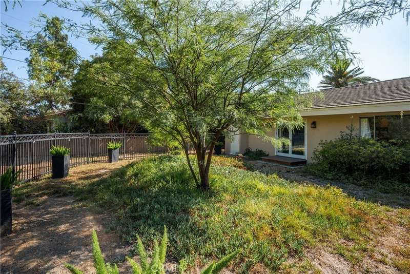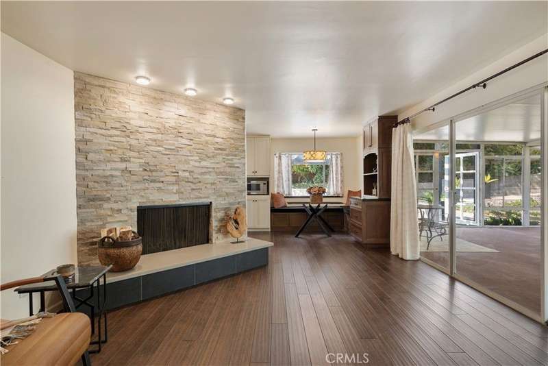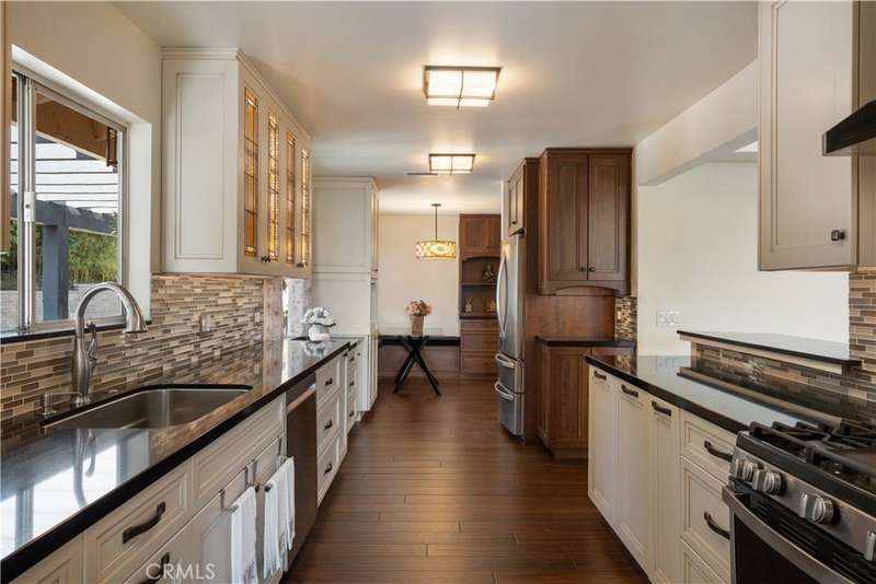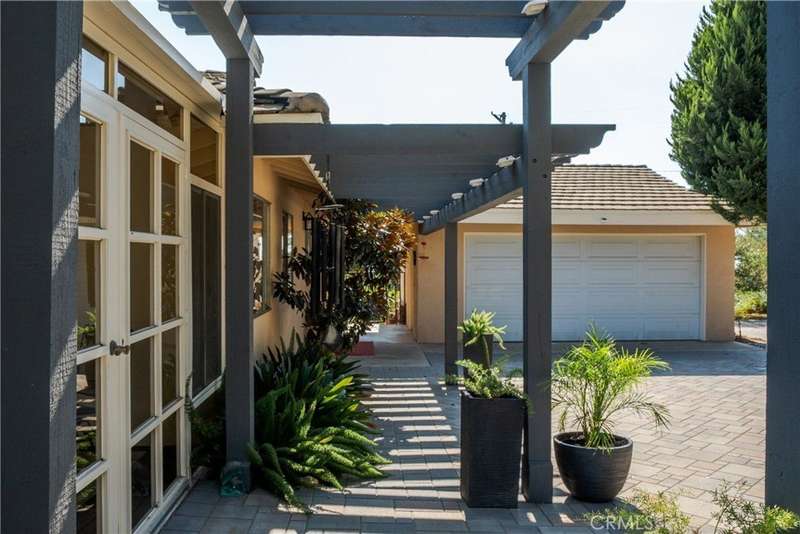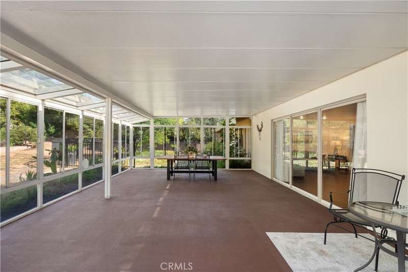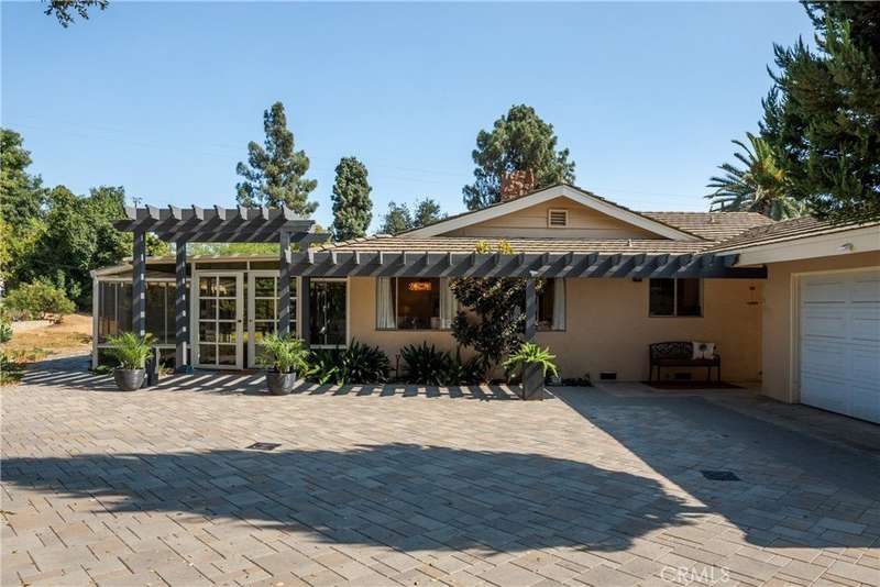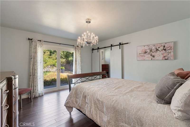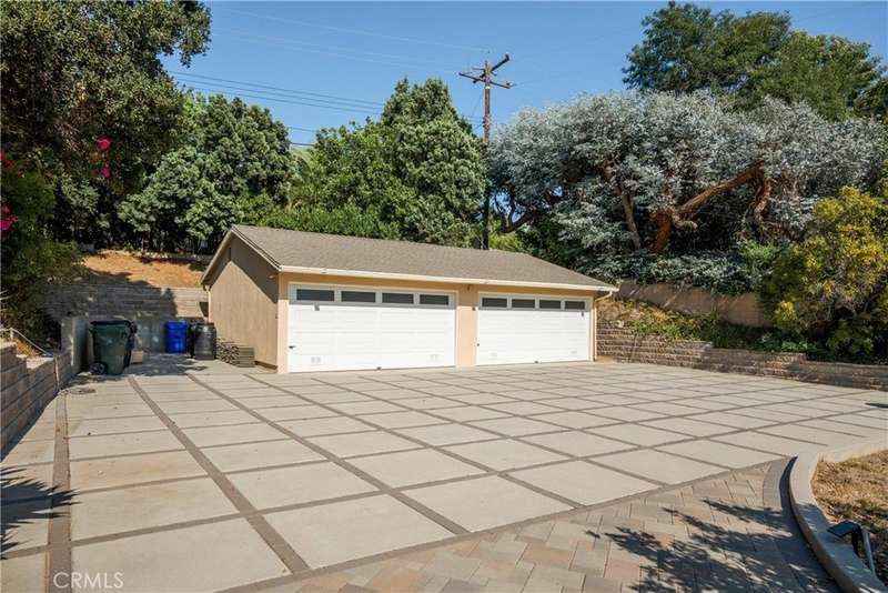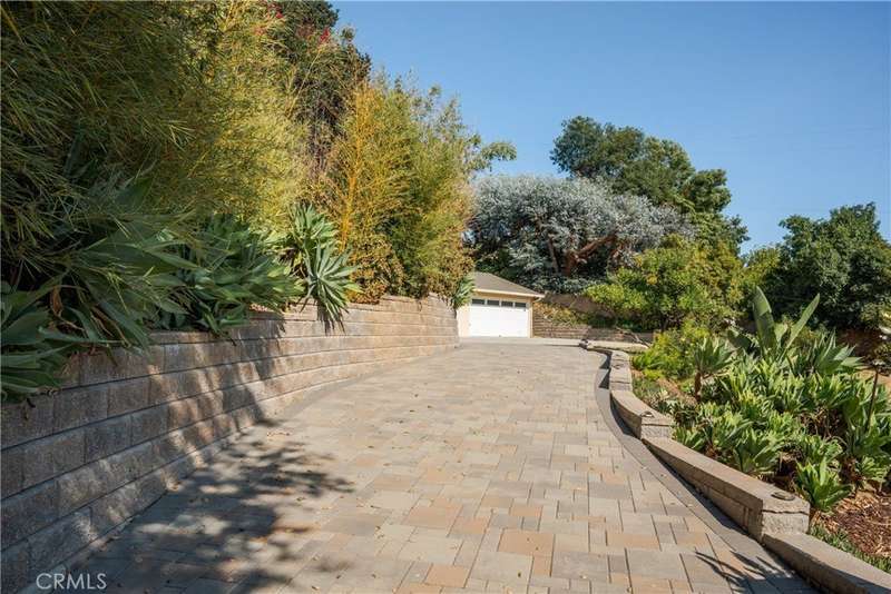 Available in the elite community of Bradbury, you will find this unique FOUR BEDROOM upgraded, remodeled home, built on a very large lot of 23,551 square feet. In addition to the attached TWO CAR GARAGE, there is a separate finished FOUR CAR GARAGE ideal for a Car Collector, an Artist seeking Studio Space or the possibility of an ADU. The spectacular home was renovated in 2021 with care and quality throughout every detail. The floorplan is open and inviting with gorgeous Cali Bamboo flooring throughout. The tile entryway opens to a spacious Living Room with a ledger stone Fireplace featuring a quartz hearth with built in seating. The large sliding glass door in the Living Room opens to the Fully Enclosed 18X27' SUN ROOM. The Sun Room gives you an ADDITIONAL 505 SQUARE FEET of usable year round living space. The Formal Dining Room can accommodate a gathering of ten to twelve guests with windows viewing the scenery below. The home is built on a slight rise above street level. A custom built in cabinet with leaded glass, lighting and a beverage frig add to the warmth of the dining room. There is a Breakfast Bar that opens to the remodeled Kitchen. The Kitchen features Quartz countertops, ample custom cabinetry, leaded glass door accents, a double oven, a large refrigerator and a view of the side yard where families of deer occasionally roam. Off of the Kitchen is the Laundry Room with your back door access. A utility sink accompanies the washer, dryer and freezer. Four Bedrooms with two remodeled Bathrooms provide a practical floor plan. The Primary Suite has double doors leading to the back yard. A great area (fenced) to add a pool or spa. A custom walkthrough closet with barn doors leads to the remodeled ensuite bath. Three other good sized bedrooms all with Cali Bamboo flooring finish the floorplan. Finally, the expansive lot features a custom Paver Driveway bringing you to the upper level and four car garage. With plenty of usable space, there is room for a pool/spa, gazebo, pickleball court, basketball court, a life sized chess board or a lush garden retreat. Use your imagination. Conveniently located off Mt. Olive, you are in close proximity to shopping, restaurants and freeways, yet surrounded by peace and tranquility. MEASURED AT: HOUSE 2,168 sq.ft. SUN ROOM 505 sq.ft. GARAGE #1 is 425 sq.ft. UPPER 4 CAR GARAGE IS 840 sq. ft. A MUST SEE TO FULLY APPRECIATE the SPACE, QUALITY and VALUE this HOME AND PROPERTY HAVE TO OFFER!