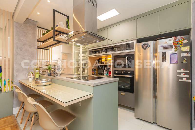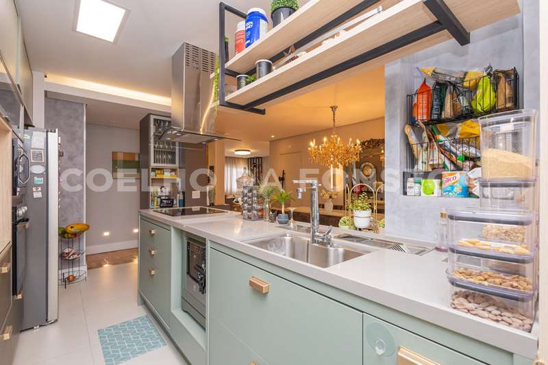 A cozinha integrada com a sala incorpora o charme e a praticidade ao imóvel.