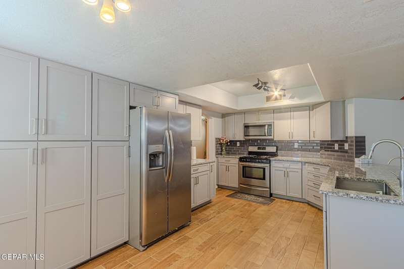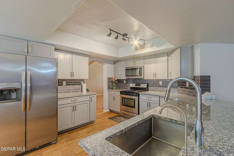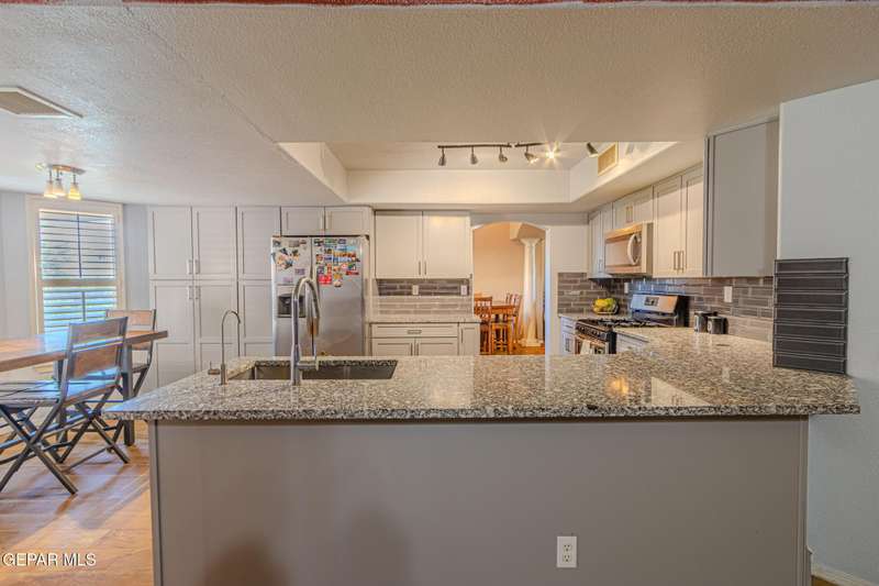 Welcome to this beautiful 4-bedroom 2-story home perfectly situated on the westside of El Paso, offering breathtaking mountain views right from your doorstep. Kitchen has been remodeled and updated as well as appliances and has a reverse osmosis water filtration system for clean drinking water! Backyard is excellent for entertaining family and friends and also has a garden with various vegetables. The roof, refrigerated ac, kithchen, water heater are all less than a year old!