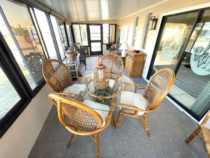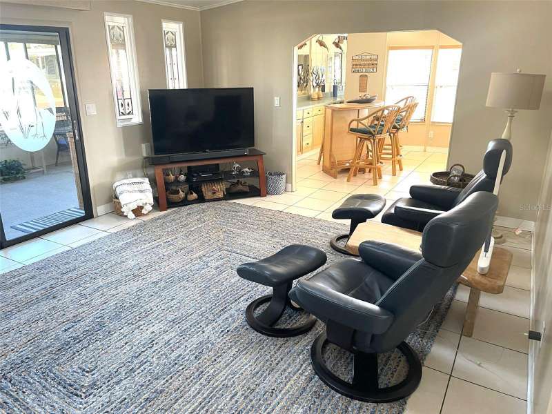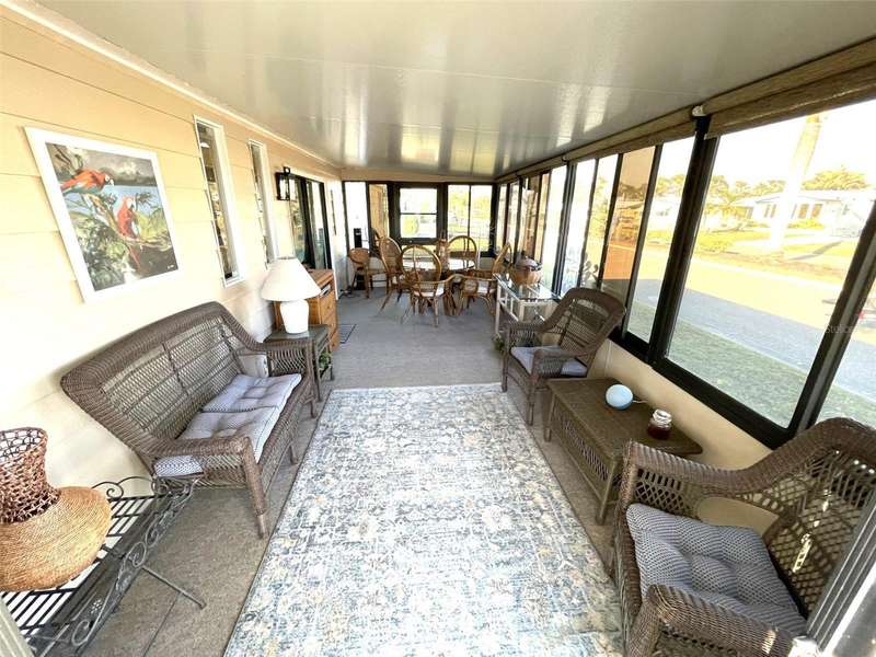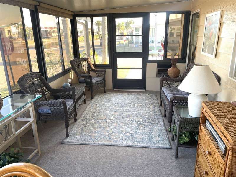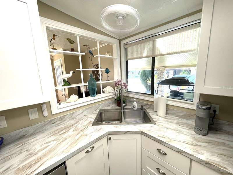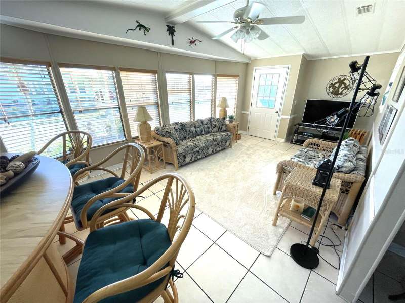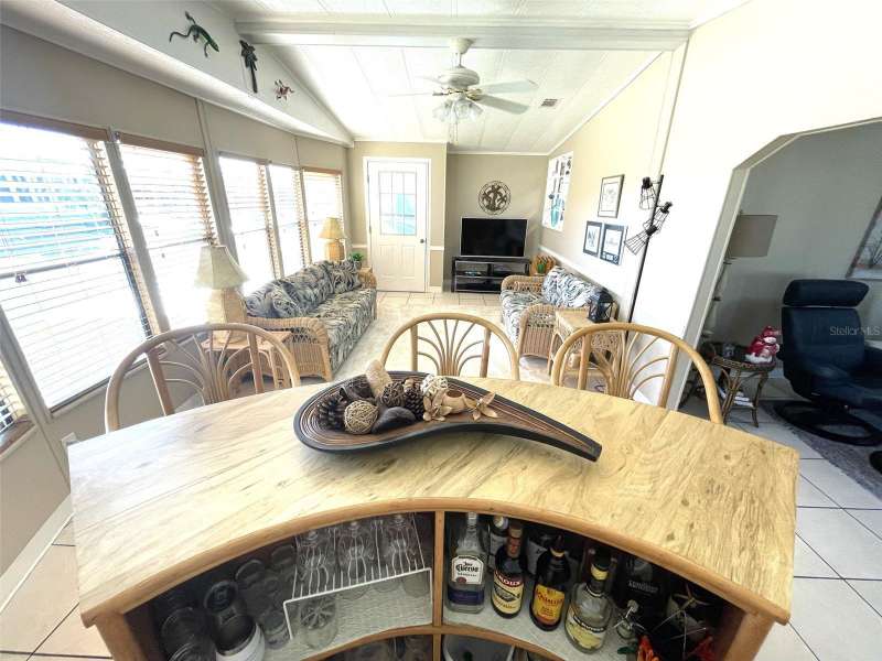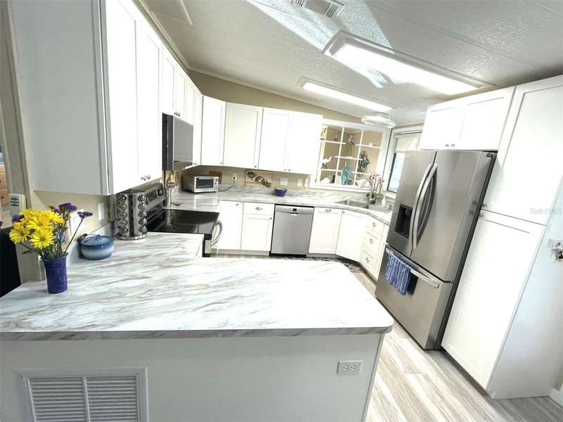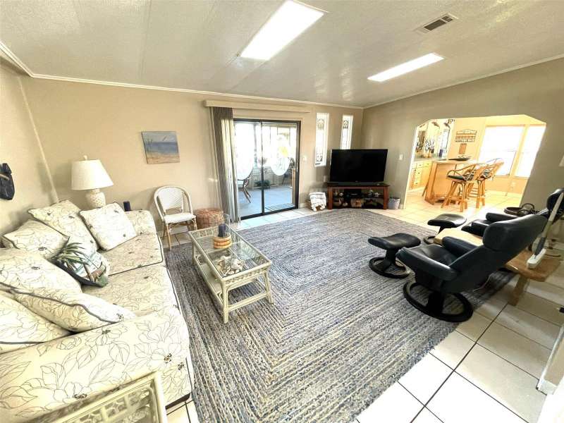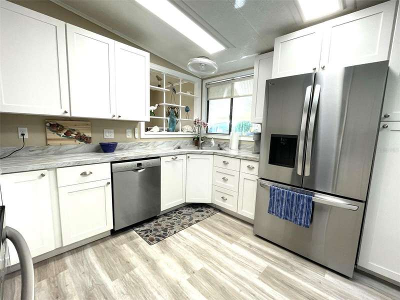 Nestled on a desirable corner lot in the sought-after, resort-style community of Harbor Isles, this unique and spacious 2-bedroom, 2-bathroom manufactured home offers an abundance of living and entertaining space. The thoughtfully designed layout features a bright and inviting family room with an amazing built-in bar—perfect for entertaining guests—as well as a spacious living room that seamlessly connects to an extra-long Florida room with acrylic windows, allowing for year-round enjoyment. The newly remodeled kitchen is a standout, boasting solid wood cabinets, stunning countertops, and brand-new stainless-steel appliances. Tile floors installed over ¾-inch plywood subfloors ensure both durability and style throughout the home. Vaulted ceilings and skylights enhance the open, airy feel while bringing in an abundance of natural light. The primary suite is a private retreat, offering two closets—including a large walk-in—and a spacious ensuite bath. A second bedroom and full bath provide ample space for family or guests. Step outside to the expansive screened-in lanai, ideal for enjoying Florida’s gorgeous winter days. Just off the lanai, a large storage shed houses the laundry area, complete with a built-in utility sink. Additional upgrades include a brand-new roof, a brand-new AC system, and fresh exterior paint (2022), making this home truly move-in ready. Harbor Isles is an exceptional, waterfront, 55+ gated community offering resort-style amenities and an active lifestyle. Residents enjoy a heated pool and spa, fitness center, tennis and pickleball courts, shuffleboard, bocce ball, and a spacious clubhouse with a vibrant social calendar. The community also features a private marina with boat slips, a kayak launch, and fishing areas, perfect for enjoying Florida’s coastal lifestyle. Beautifully maintained walking and biking paths wind through the lushly landscaped grounds, providing a picturesque setting for morning strolls or evening relaxation. Conveniently located near shopping, dining, world-class beaches, and cultural attractions, Harbor Isles offers the best of Florida living in a welcoming, friendly environment.