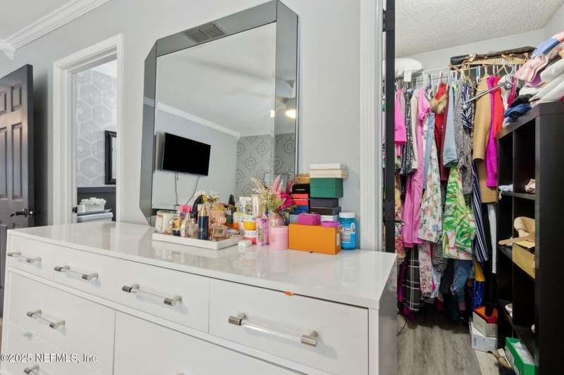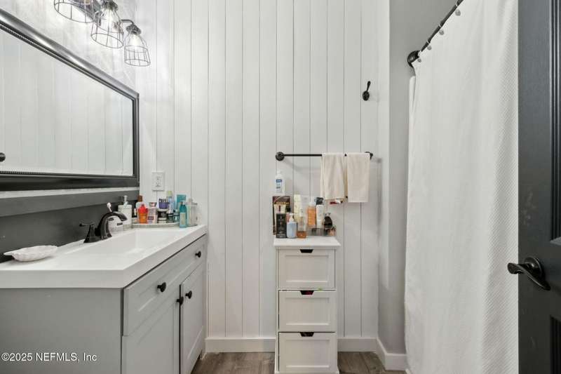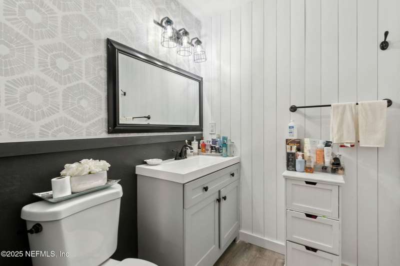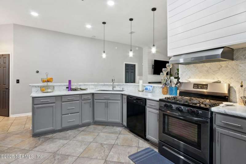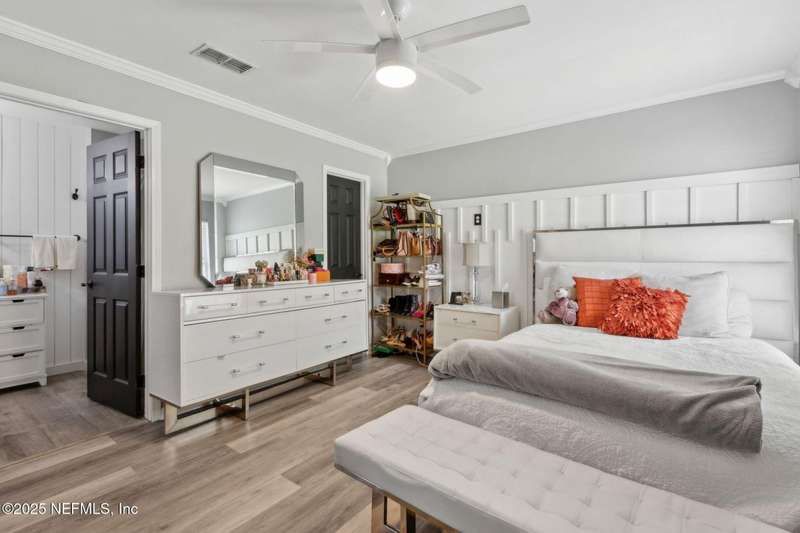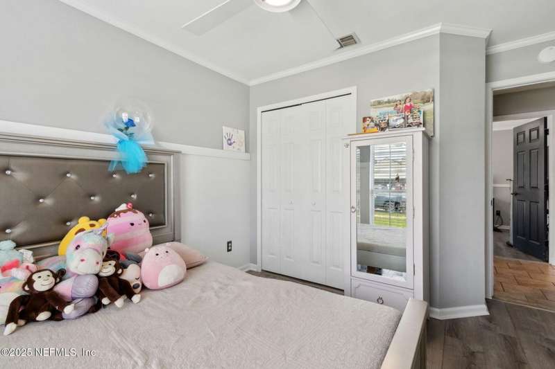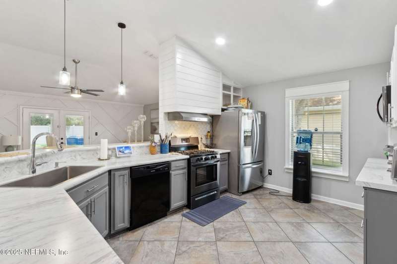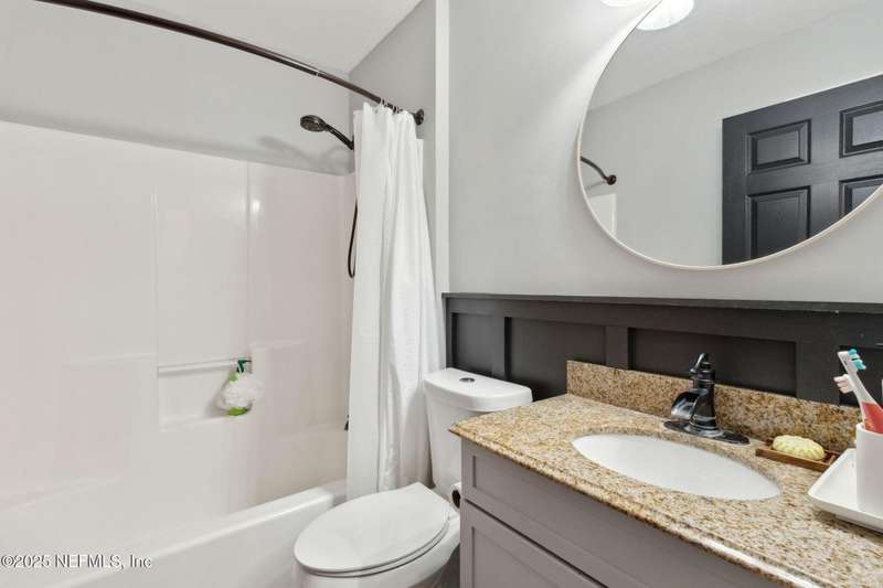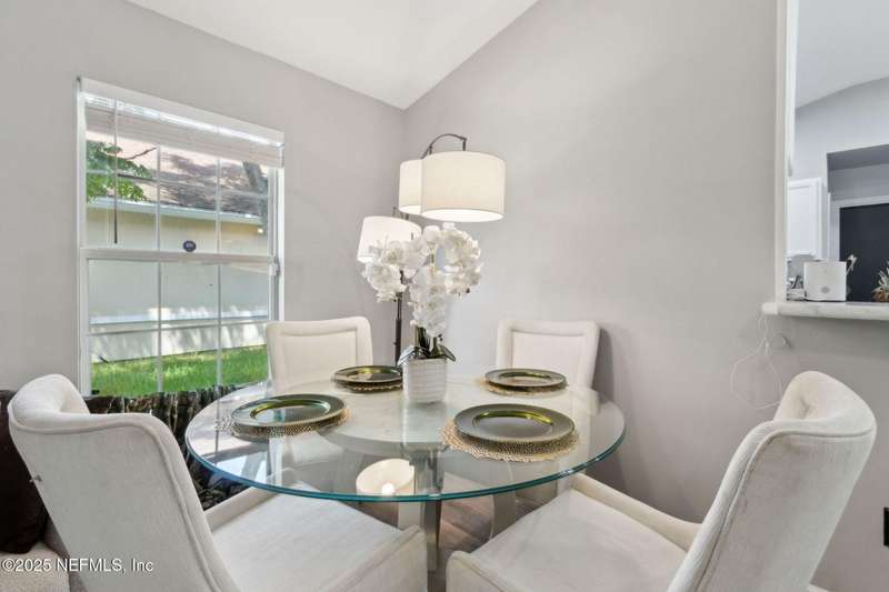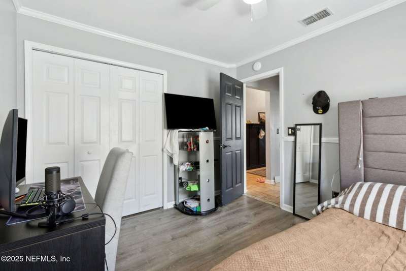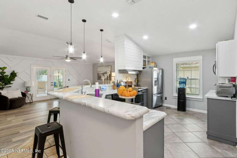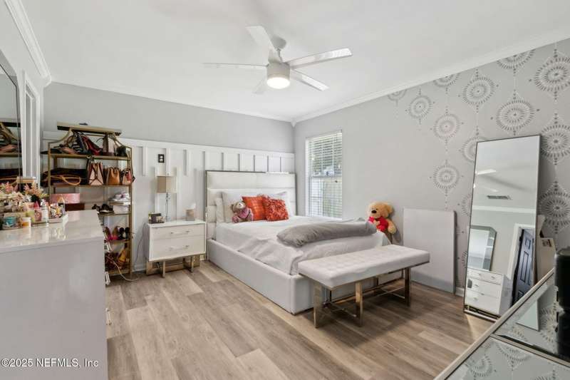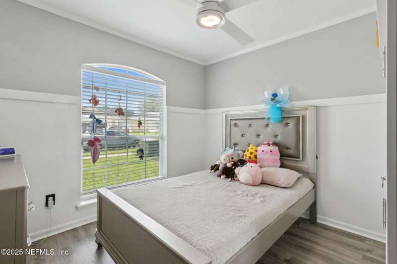 Move-in ready 3-bedroom, 2-bathroom home with a 2-car garage in the desirable Sutton Lakes community. This home features a bright, open layout with abundant natural light, high ceilings, a modern kitchen with stainless steel appliances, and sleek, carpet-free flooring throughout. The fenced backyard includes a screened-in lanai for relaxing outdoor living. Centrally located just minutes to I-295, close to Town Center, downtown, restaurants, shopping, and approximately 15 minutes from the beach.