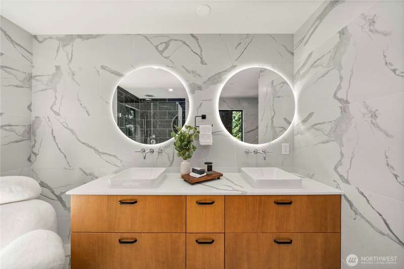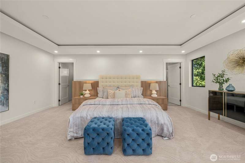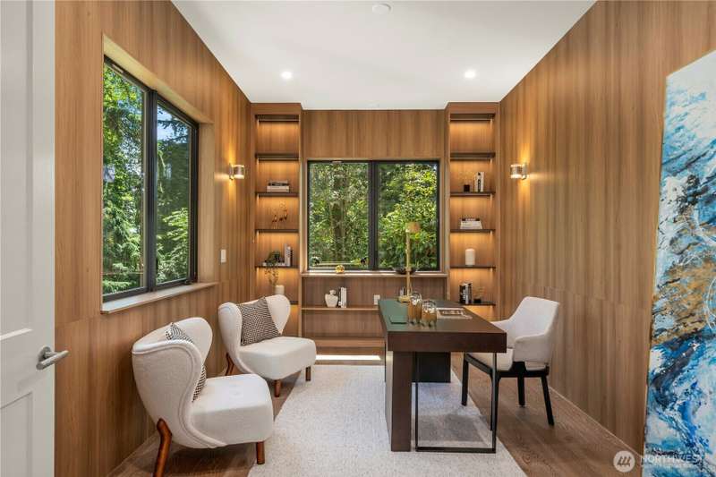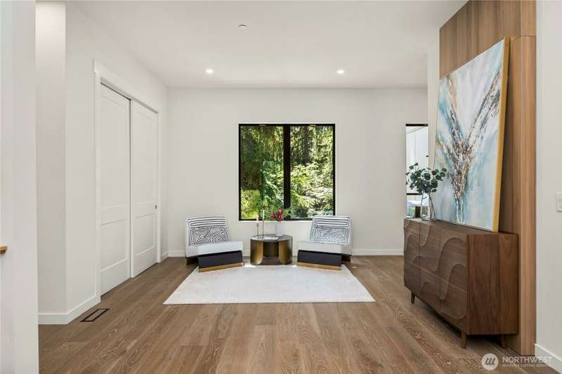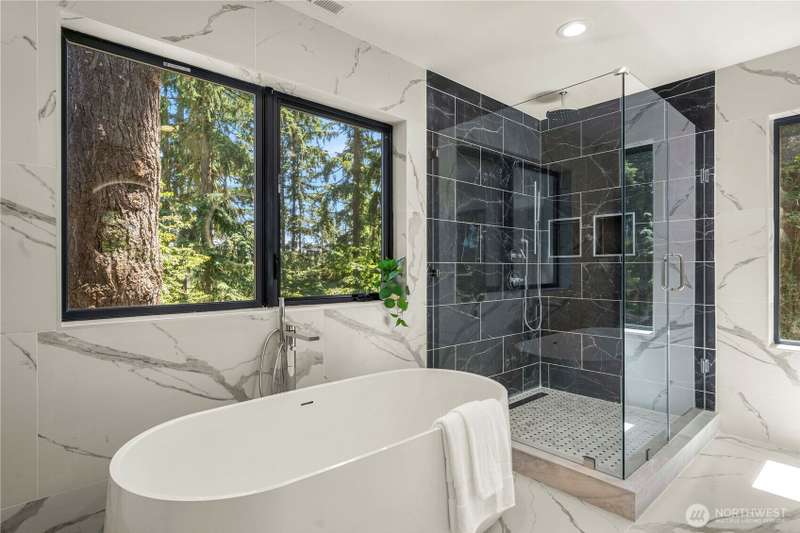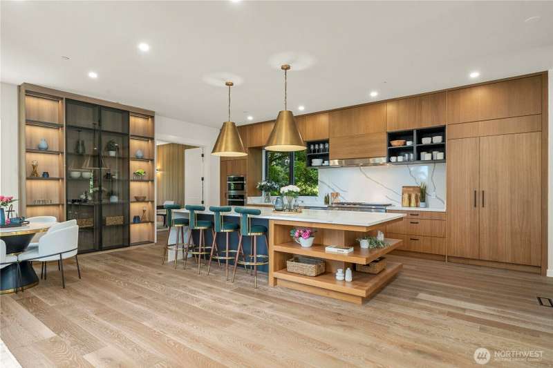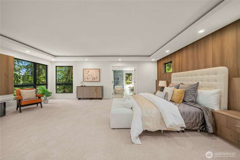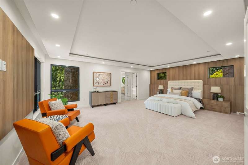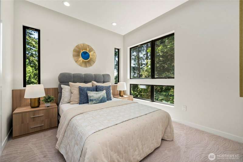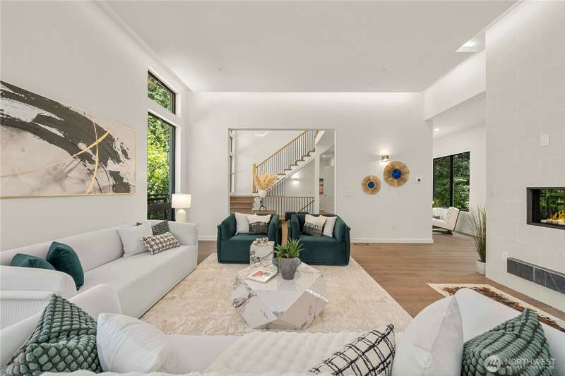 Experience elevated living in this exceptional contemporary custom estate, tucked in a private enclave just minutes from vibrant DT Bellevue. Thoughtfully crafted for both elegance & comfort, this modern masterpiece features a dramatic entry, 5 expansive bedroom suites with custom-built closets, luxurious bath with LED touch mirrors, dedicated home office with rich cabinetry & integrated inside lighting. The chef’s kitchen offers top-tier appliances, an oversized island & sleek finishes. A striking see-through fireplace anchors the open living area. The bonus room downstairs has a full bar, perfect for entertaining. 2 tankless & 2 laundries. With refined finishes, smart design & & great schools, this home is the true modern luxury living.