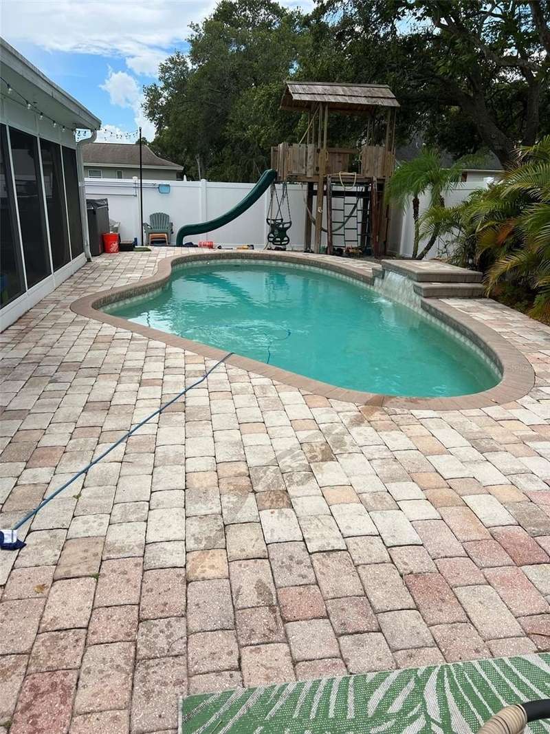 This beautiful home has so much to offer. The location alone makes it an ideal home for families or anyone who likes to be close to it all. Only a 10–15-minute bike ride to all the best of Safety Harbor including downtown. You can walk down the block to North City Park or a mile to Phillippe Park on the water. A 20-minute drive to Tampa, Honeymoon Beach and St. Pete make is a very central commute. The home itself has so much to offer as well as a 3/2 split floor plan. The Master bedroom has a nice walk-in closet, its own en suite bathroom and additional space perfect for an office, sitting room or attached nursery. The other two bedrooms are spacious as well. The back bedroom offering its own exit into the lanai and two full size closets. Most of the house has been remodeled with fresh paint, new flooring throughout the house, added details with a built-in bookshelf and custom pantry sliding door, new bathrooms, kitchen remodeled with more cabinetry and new butcher block countertops perfect for your bar height stools. In the backyard the pool welcomes you to enjoy the Florida life, a fun play area, new vinyl fence, pavers for your outdoor living space and even a raised garden bed. This home is ready for you! Basic POOL and LAWN care INCLUDED! SOLAR PANELS help keep the Electric Bills low.