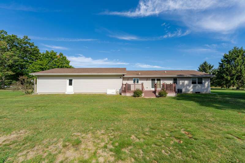 OPEN HOUSE Sunday 10/12, 12:30-2:30. This country home is a dream for those seeking a serene lifestyle with convenient access to urban amenities and highly desirable Otsego Schools. Nestled in the countryside, this immaculate home was built for the avid outdoor enthusiast with plenty of main floor storage, a dedicated work space in the basement, oversized 27' x 28' attached garage with built-in cabinets, and 32' x 56' barn with finished workshop. The main home features three spacious bedrooms and two full baths, offering ample living space for a growing family or individuals alike. The kitchen is a focal point with a center island, stainless steel appliances, and an abundance of cabinets for storage. A dining area flows seamlessly into a maintenance-free composite deck, perfect for enjoying the scenic 1.7-acre lot. Convenience is key with main floor laundry and an oversized mudroom designed to accommodate all of your outdoor hobbies. The full basement adds extra storage space and includes custom cabinets and workbench. Home is equipped with a whole home generator. The oversized two-car garage provides shelter for vehicles, while a massive 32'x56' pole barn offers even more versatility. With 8'x9' doors, heating, AC, 150-amp electrical service, and strong WiFi signal, the pole barn is ideal for a workshop and additional storage needs. For those commuting to Kalamazoo or Grand Rapids, the location strikes a perfect balance between country tranquility and urban accessibility. This meticulously maintained home was built with quality in mind and is ready for move-in.