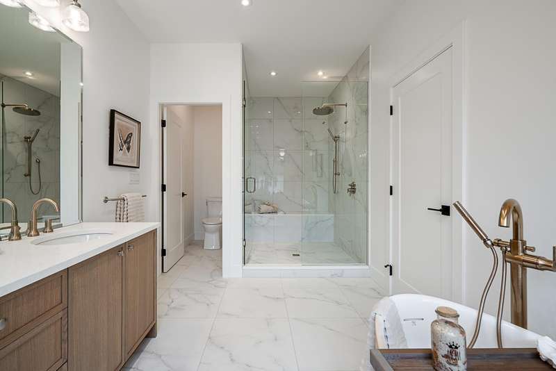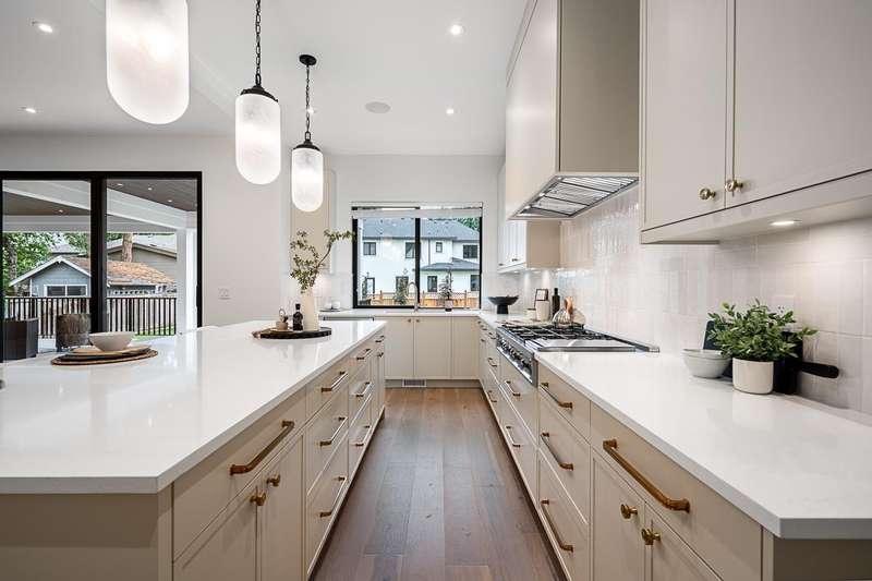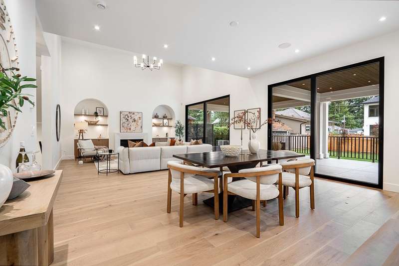 Welcome to this custom-built Brookswood estate by Meseca Developments, where timeless architecture meets modern sophistication. Set on a private, tree-lined street, the 4,670 sq. ft. home offers 6 bedrooms and 7 bathrooms across 3 levels. Oversized sliding doors extend living space to a covered patio for seamless indoor-outdoor flow. 10' ceilings, expansive windows, and wide-plank hardwood create an open, light-filled atmosphere. The chef's kitchen features Bertazzoni appliances, quartz counters, custom cabinetry, an oversized island, and a prep kitchen with premium fixtures. Upstairs offers 4 bedrooms w/ensuites, including a spa-inspired primary retreat. The lower level features a rec room and 2-bed legal suite, while smart wiring and EV rough-in complete this rare Brookswood opportunity. (id:58403)