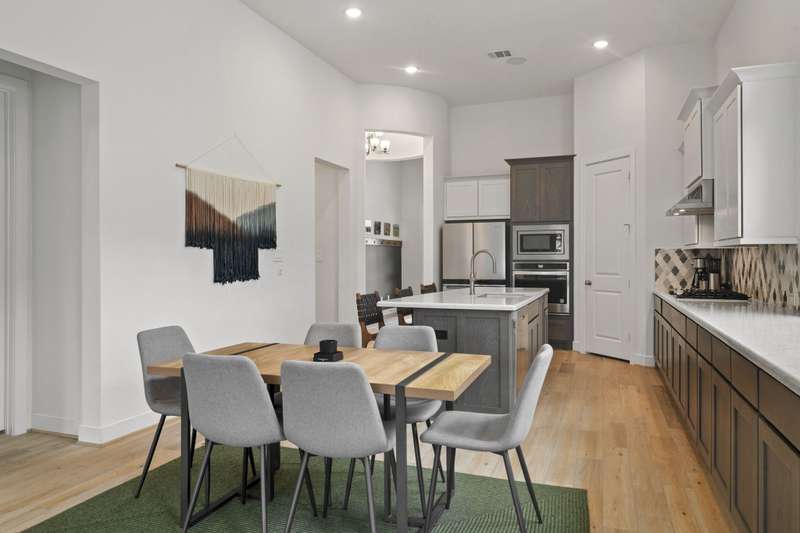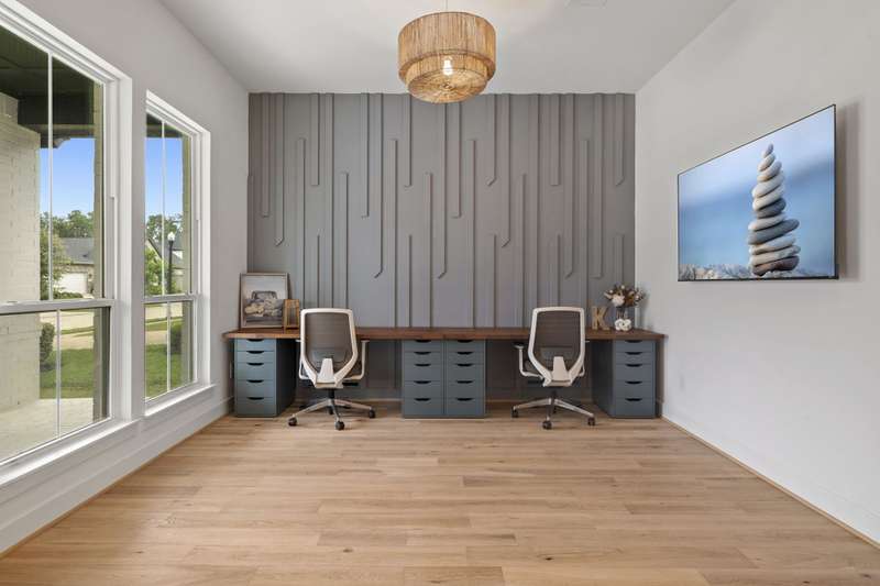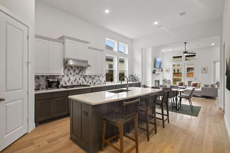 Nestled in the highly sought-after first phase of Woodson’s Reserve, with a lower tax rate than sections under construction, this stunning one-story Toll Brothers home blends timeless elegance with modern functionality. Featuring a popular white painted brick exterior and charming front porch, this residence welcomes you with light white oak floors and custom millwork throughout—no carpet in sight! The expansive layout includes a dedicated home office and a formal dining room currently serving as a second office, offering exceptional flexibility for today’s lifestyle. The gourmet kitchen boasts an extended butler’s pantry, perfect for entertaining, while designer light fixtures and built-in speakers enhance every space with comfort and style. Thoughtfully upgraded and meticulously maintained, this home is a rare opportunity to own in one of North Houston’s premier master-planned communities.