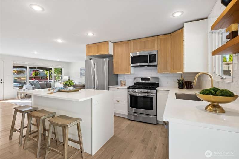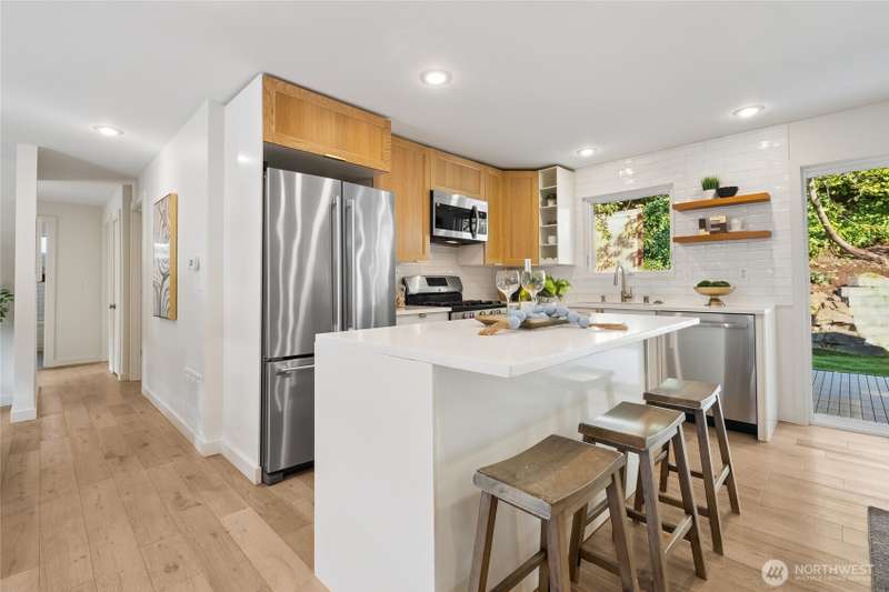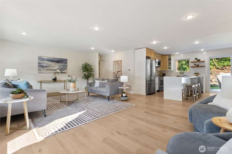 Smart start in Hillman City! Remodeled mid-century home with a separate MIL unit perfect for buyers seeking income to offset their mortgage. Enjoy new kitchens and baths, solid white oak hardwood, fresh paint inside and out, updated systems, tankless water heater, and a newer roof—move-in ready with peace of mind. Incredible use of space, materials chosen with attention to a timeless organic modern vibe. Sweet yard with easy maintenance, entertainment area, and sunshine. The MIL offers rental options, guest quarters, home office, or room to grow. Blocks from coffee, bakeries, dining, transit. This is a vibrant, walkable neighborhood focused on community and culture. Urban convenience and a quiet block with easy commute in all directions.
