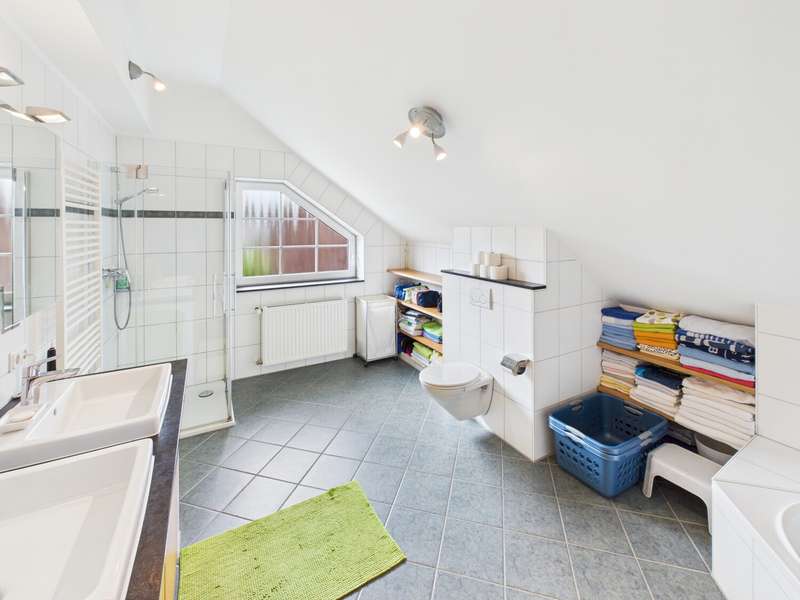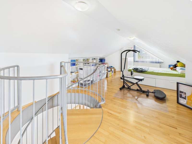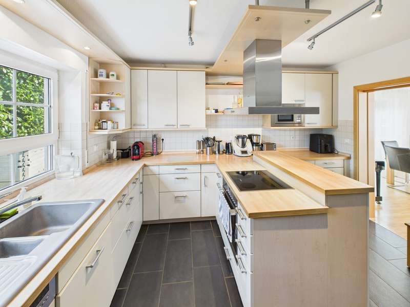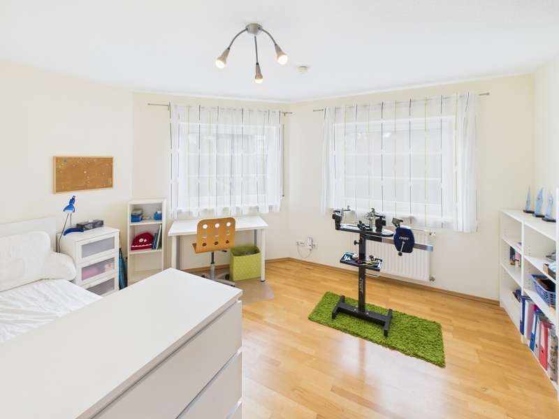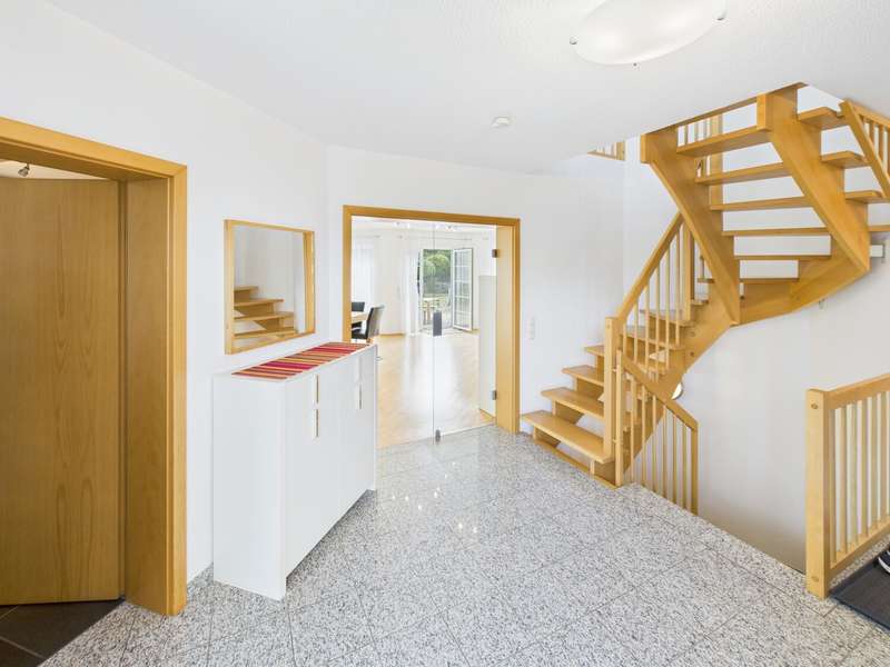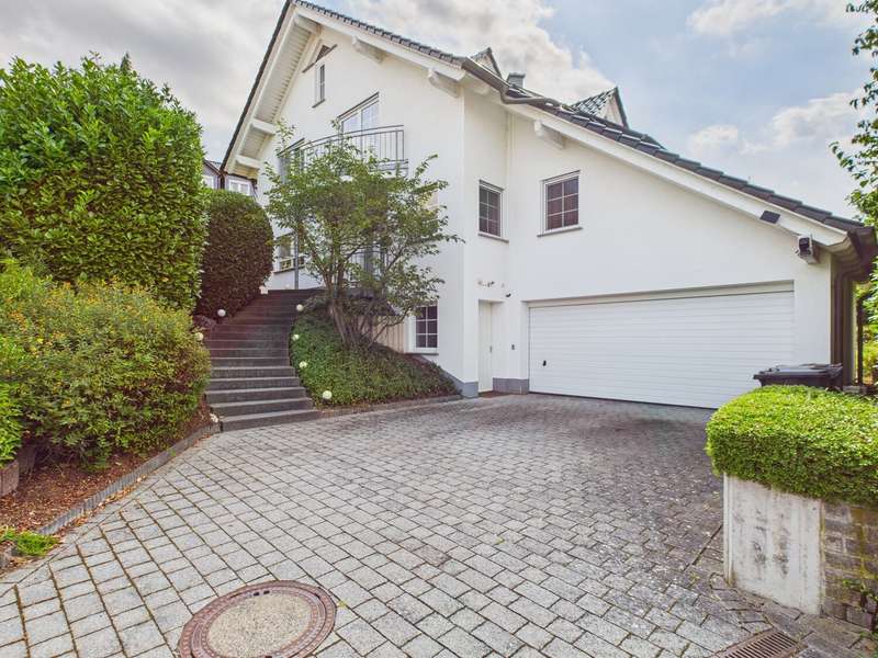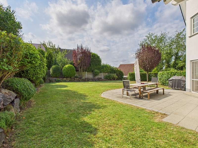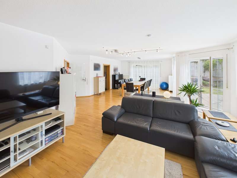 In one of the most popular locations in Nieder-Olm, this spacious detached house presents itself as a true refuge for sophisticated living. Set on a lovingly landscaped plot of approx. 741 m², the property, built in 2003, combines timeless architecture with modern amenities. With a living space of around 210 m², spread over a total of seven rooms, the house offers ideal conditions for families who value space, comfort and flexibility. The bright, inviting entrance area already conveys a feeling of spaciousness and leads directly into the heart of the house: the spacious living and dining area. Large windows flood the room with light throughout the day and create a warm, cozy atmosphere. From here, you can access the large sun terrace, which offers a view of the lovingly landscaped garden - a green oasis that invites you to relax, play or garden. The open kitchen with adjoining dining area forms the communicative center of family life and is also a place for social gatherings with friends. The first floor also boasts a flexibly usable area, which is currently designed as a dressing room with adjoining bedroom and en-suite shower room. Whether as a guest room, study or hobby room - this retreat can be individually adapted to the needs of its occupants and provides additional comfort. A modern staircase leads to the upper floor, which has four spacious bedrooms and a stylish bathroom with a bathtub, walk-in shower and double washbasin. All family members will find their own personal retreat here. Another highlight is the top floor: a charming, light-flooded room with its own daylight bathroom, which is perfect as a studio, youth area or guest floor. Sustainability and energy efficiency also take center stage: the house is heated using environmentally friendly district heating. The energy concept is complemented by a photovoltaic system from ENPAL installed in 2023, which not only reduces operating costs but also makes a valuable contribution to climate protection. Practical details such as the utility room with connections for washing machine and dryer, the spacious garage with direct access to the house, which has an intelligent wallbox to match the PV system, and several outdoor parking spaces round off the well thought-out overall concept. The location of the house combines tranquillity with optimal connections: shopping facilities, schools and kindergartens are in the immediate vicinity. Leisure activities for young and old as well as easy access to public transport and freeways make Nieder-Olm a particularly attractive place to live. This detached house combines a stylish ambience, modern furnishings and a location that leaves nothing to be desired. A home that offers security, quality of life and sustainability in equal measure.