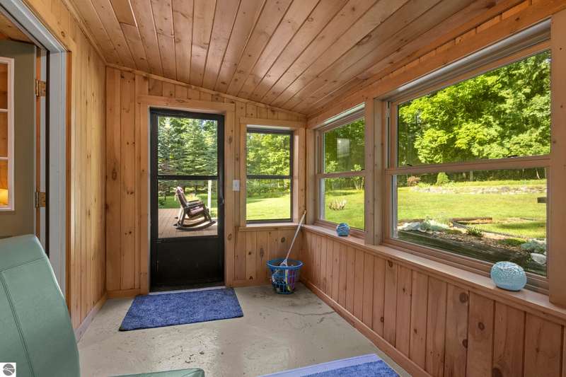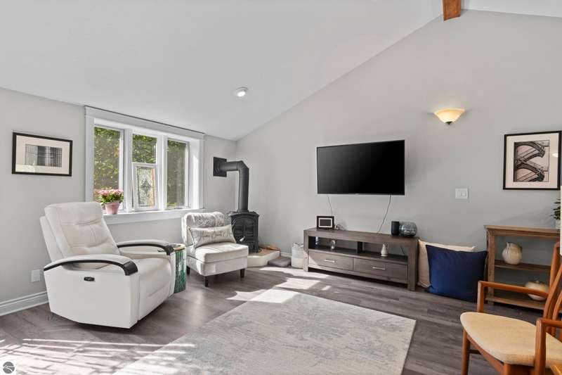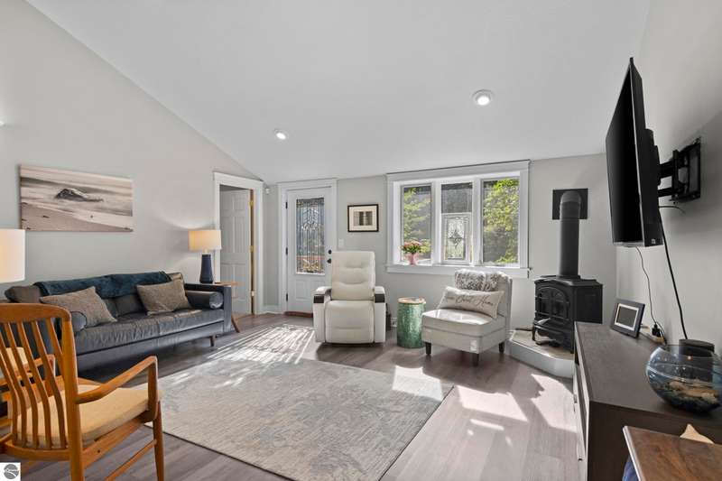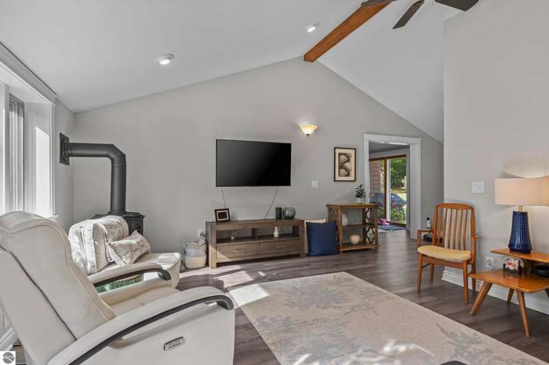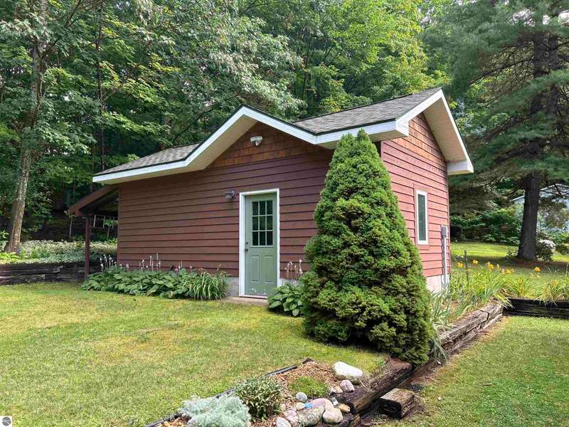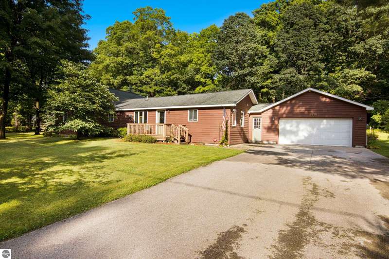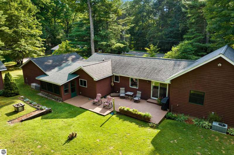 One-Level Ranch with Torch Lake Access! Over an acre of wooded privacy and just a short walk to public Torch Lake access! This updated 4BR/2BA ranch features a New Roof, new flooring & paint, new kitchen appliances, a vaulted ceilings with gas fireplace in living room, a 3-seasons porch, adorable & functional mudroom, generous kitchen pantry and a spacious primary suite with jetted tub, gas fireplace & walk-in closet--plus a heated workshop and a garden shed. Move in ready!