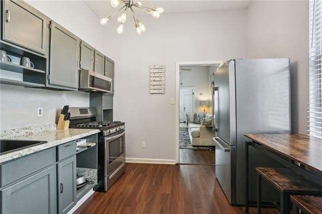FULLY FURNISHED, renovated shotgun double just five blocks from the Carrollton streetcar line and a half mile to bustling Oak Street. Enjoy two spacious living areas, two cozy bedrooms, large kitchen with included laundry, and large shared patio. Featuring high ceilings, central AC and heat, laminate wood floor throughout, stone kitchen countertops and fully stocked kitchen and bathroom. Grill and gas fire pit available for use in the shared back patio. Easy street parking. Small pet under 25lbs allowed with $250 non-refundable pet fee. No Section 8.