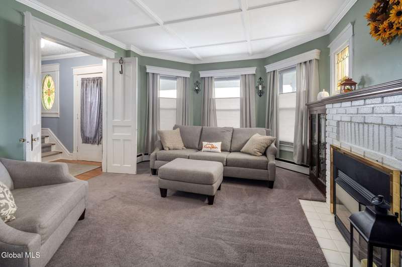 Stunning Hudson River property! Nestled on just under an acre of land, this beautifully maintained home offers breathtaking river views and modern updates throughout. Enjoy outdoor living on the 2 year young three-tier Trex decking, perfect for entertaining or relaxing. Inside, you'll find 3 spacious bedrooms and 2.5 baths, including a primary suite with a private en-suite bath. The home offers two inviting living rooms featuring beautiful built-ins with a cozy fireplace that add warmth and character. The updated kitchen includes stainless steel appliances, a double oven, and new countertops, while the formal dining room impresses with stained glass windows, a beautiful beamed ceiling, built in cabinet and French doors. A 3-car garage and oversized driveway provide plenty of parking and storage. This exceptional home blends comfort, charm, and riverfront living in one perfect setting along the Hudson River.