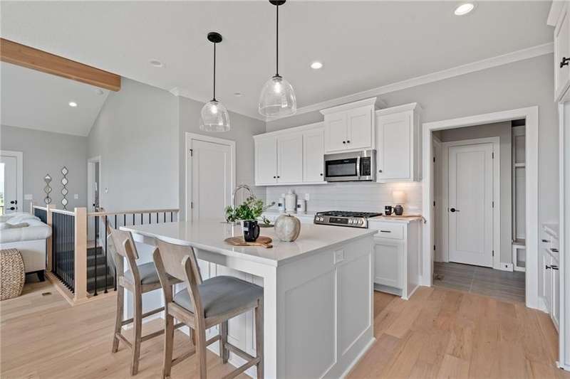 Twin Villa by Lambie Homes! Located on lot 63L in the cul-de-sac that offers a generous backyard. Quick hwy. access, close to Shawnee Mission park, Lenexa City center, Black Hoof Park, & more. RIGHT SIZE into this smart sleek twin villa, one floor easy living, covered deck, functional/effective home office tucks away behind a pocket door. Kitchen boasts an abundance of cabinetry, coffee Bar/appliance garage, walk-in pantry, 5-burner gas cooktop. The home is filled with natural light. Primary bedroom flows to the primary bath with oversized walk-in shower, private toilet area, double quartz vanity, flows into generous-size master closet, then out to the laundry area for sensible living flow. The lower level offers additional bedrooms and a recreation room that provides space for guests, or returning college-age kids, a craft room, exercise room, scrapbooking room, or multitude of other functions. Pictures are of former model.
