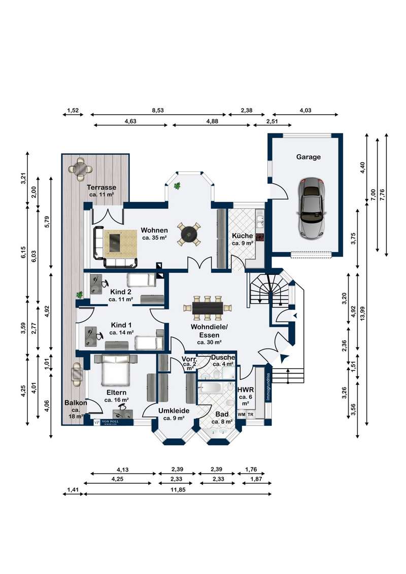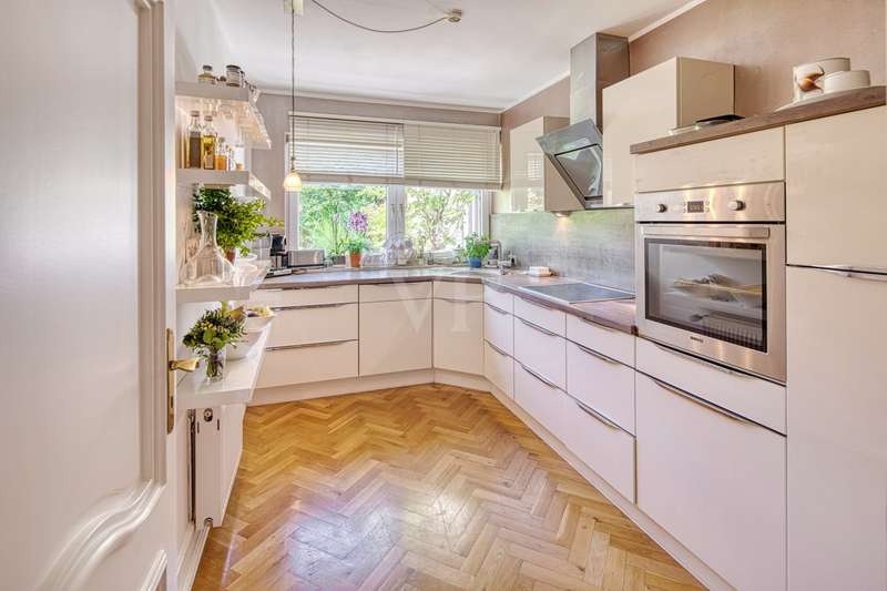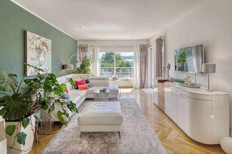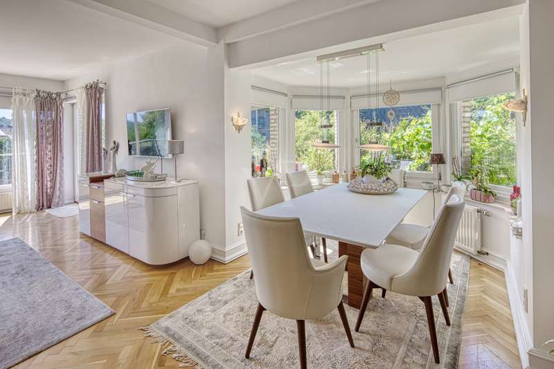 VON POLL Immobilien Euskirchen presents this exclusive first floor apartment with approx. 150 square meters of living space, upscale furnishings, balcony & direct garden access. This spacious condominium on the first floor in a well-kept 3-family house impresses with a well thought-out, almost house-like floor plan, elegant furnishings and a living space of approx. 157 square meters. With its light-flooded rooms, high-quality materials and direct access to the garden, it is a real gem. As soon as you enter the apartment, you are greeted by a large, prestigious hallway, which forms the central focal point of the apartment. From here you can access - into the modern kitchen with plenty of worktop and storage space - into the spacious living area, which offers you plenty of room for relaxing and dining in style. Large windows provide plenty of natural light and direct access to the balcony extends the living space into the open air and the small garden oasis. - into the children's room, which can also be used as a guest room or study thanks to its partition. - into a compact anteroom, through which you enter the modernized guest or children's bathroom with floor-level shower and the practical dressing room. From the dressing room, which you can furnish with bespoke wardrobe solutions, you can now reach the elegant main bathroom with high-quality fittings and bathtub. The dressing room also leads to the bright master bedroom with access to the balcony. - You also enter the utility room with space for a washing machine and tumble dryer. The entire apartment is fitted with elegant parquet flooring, which creates a warm and cozy atmosphere. The balcony, which runs along the living room and bedrooms, has large windows and guarantees a pleasant daylight ambience in all rooms. The furnishings meet a high standard of living, which is also reflected in details such as the elegant doors, modern sanitary elements and high-quality surfaces. You also have direct access to the garden via the garage - it could hardly be more convenient. Conclusion: This apartment combines the best of both house and apartment: spacious living on one level, direct access to the countryside and high-quality fittings in a quiet residential environment. A rare opportunity with a feel-good factor - ideal for discerning couples or small families with a sense of style. If this property appeals to you, please contact us via a digital inquiry, we will then send you the exposé link so that you can find out the exact location, after which you are welcome to call us to arrange a viewing appointment.