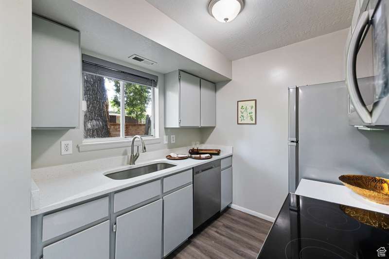 Wow! Get ready to fall head over heels for this irresistible 4-bedroom, 2-bath beauty that drips with style, sparkle, and comfort! This chic 2-story townhome with a private 1-car garage (complete with a sleek garage door opener) is tucked inside a boutique community of just 27 homes-intimate, inviting, and perfectly placed. Step inside and feel the fresh vibe: brand-new interior blinds, upgraded designer lighting that sets the mood throughout, and a mix of trendy new laminate floors with plush carpet that add warmth and sophistication. The kitchen and baths are showstoppers, flaunting gorgeous, sparkly quartz countertops that glisten under the lights, paired with gleaming stainless steel appliances for a touch of culinary glam. Gather in the sun-kissed dining area or enjoy the open, versatile layout that flows effortlessly for family time, entertaining, or quiet evenings in. Outside, your private patio shaded by a mature tree is the perfect escape for morning lattes or dreamy twilight chats. Nestled in a lovely, walkable area just steps from Cottonwood Park and the scenic Jordan River Trail, this gem offers both natural serenity and unmatched convenience with easy freeway access, TRAX, the airport, and vibrant Uptown Salt Lake all close at hand. This home is more than just a place-it's a lifestyle that sparkles with charm, convenience, and undeniable allure!