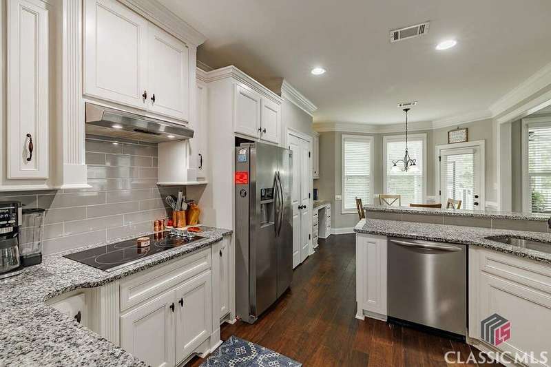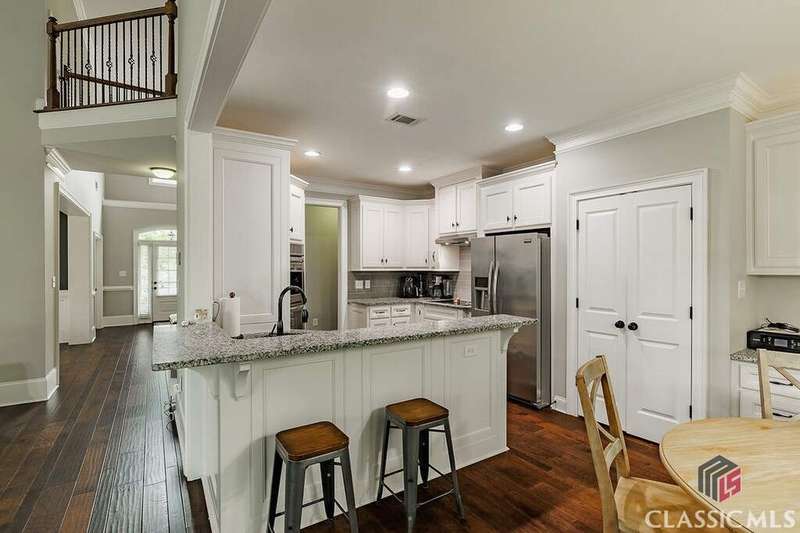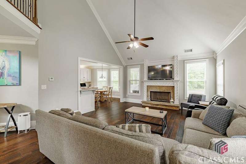 This charming home is nestled in the heart of Oconee County. Featuring 4 bedrooms, each with its own bath and 1 half bath with over 3000 sq ft. Built in 2016, this one-owner home seamlessly blends modern finishes and thoughtful craftsmanship on a .25-acre cul-de-sac lot. The main floor features a bright and open two-story foyer with a dedicated office located to the right of the foyer. The half bath is tucked away to the left. Heading down the hall, you will find the dining room with custom coffered ceilings, a spacious living room with fireplace, and kitchen with breakfast area. The kitchen features granite countertops, stainless steel appliances, and ample cabinetry. The main floor also features the Owner's suite with a beautiful bath and a large closet with custom shelving. The laundry room completes the main floor just off the owner's suite. Upstairs, you will find 3 bedrooms and 3 full baths. The outside features a custom screened porch and a beautifully landscaped yard. Community amenities include a neighborhood pool, tennis and pickleball courts, and green space. This home is conveniently located near award-winning Oconee County schools, shopping, dining, and parks. Schedule your showing today!